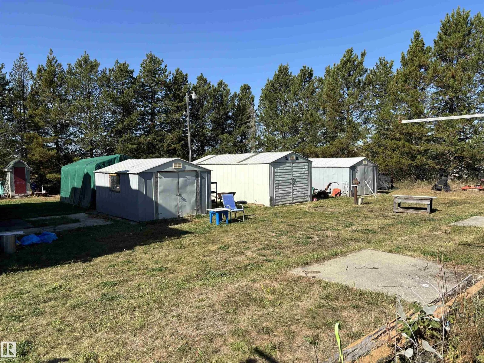 Discover your own private getaway at Vincent Lake in the picturesque summer village of Horseshoe Bay, 15 minutes north of St. Paul. This charming 1,006 sq ft two-storey home offers 2 bedrooms, 1.5 bathrooms, nestled on a massive 3.29-acre lot. The property is fully-serviced with natural gas, electricity, a drilled well (2015), and septic field (2019), creating an ideal setting for a peaceful summer retreat or comfortable year-round living. The property includes 4 large sheds to store all your toys and tools and a 30' x 40' concrete pad provides a solid foundation for a future garage or workshop. Enjoy tons of space for gardening, recreation, or simply soaking in the natural surroundings. (id:27476)