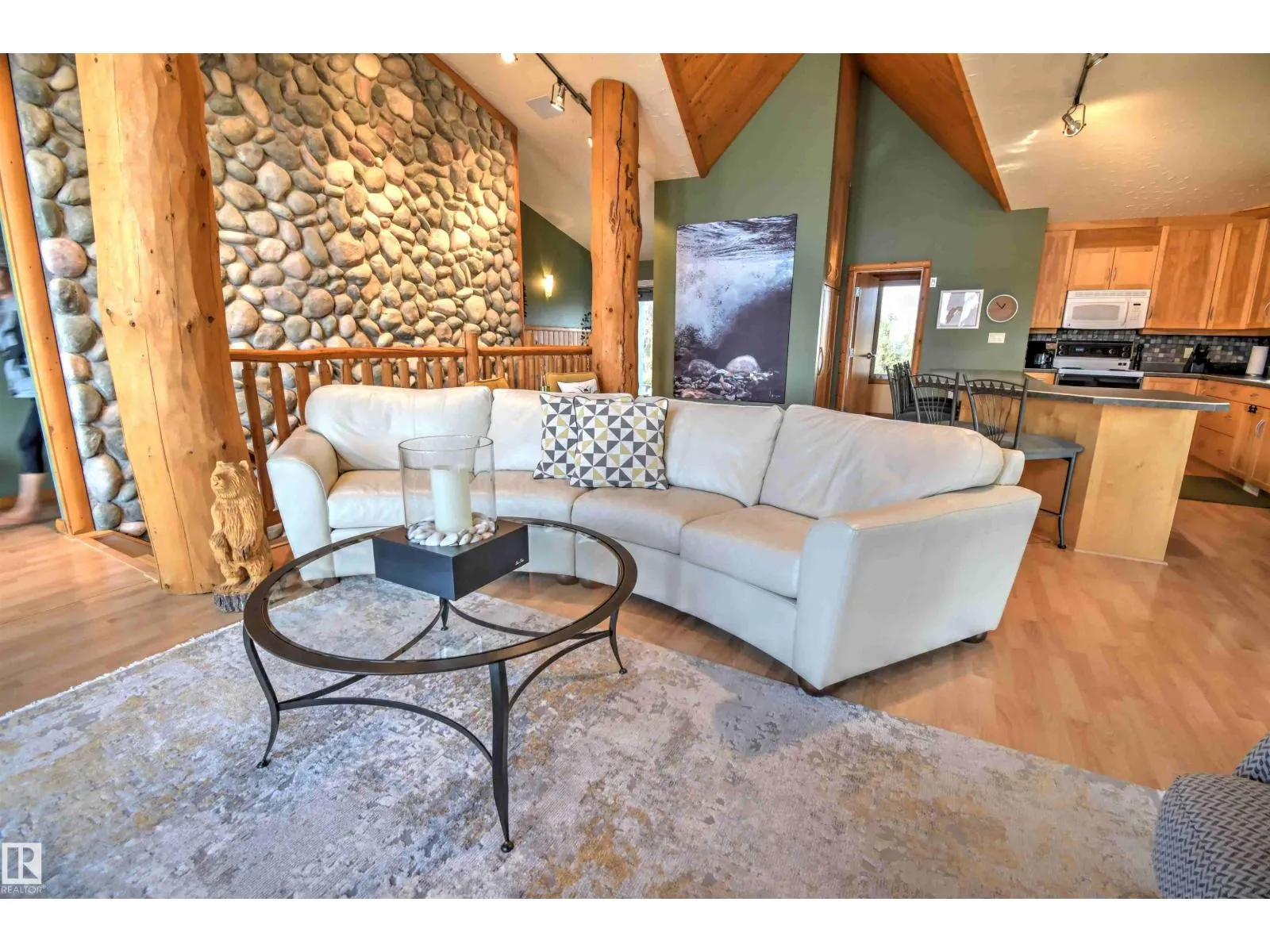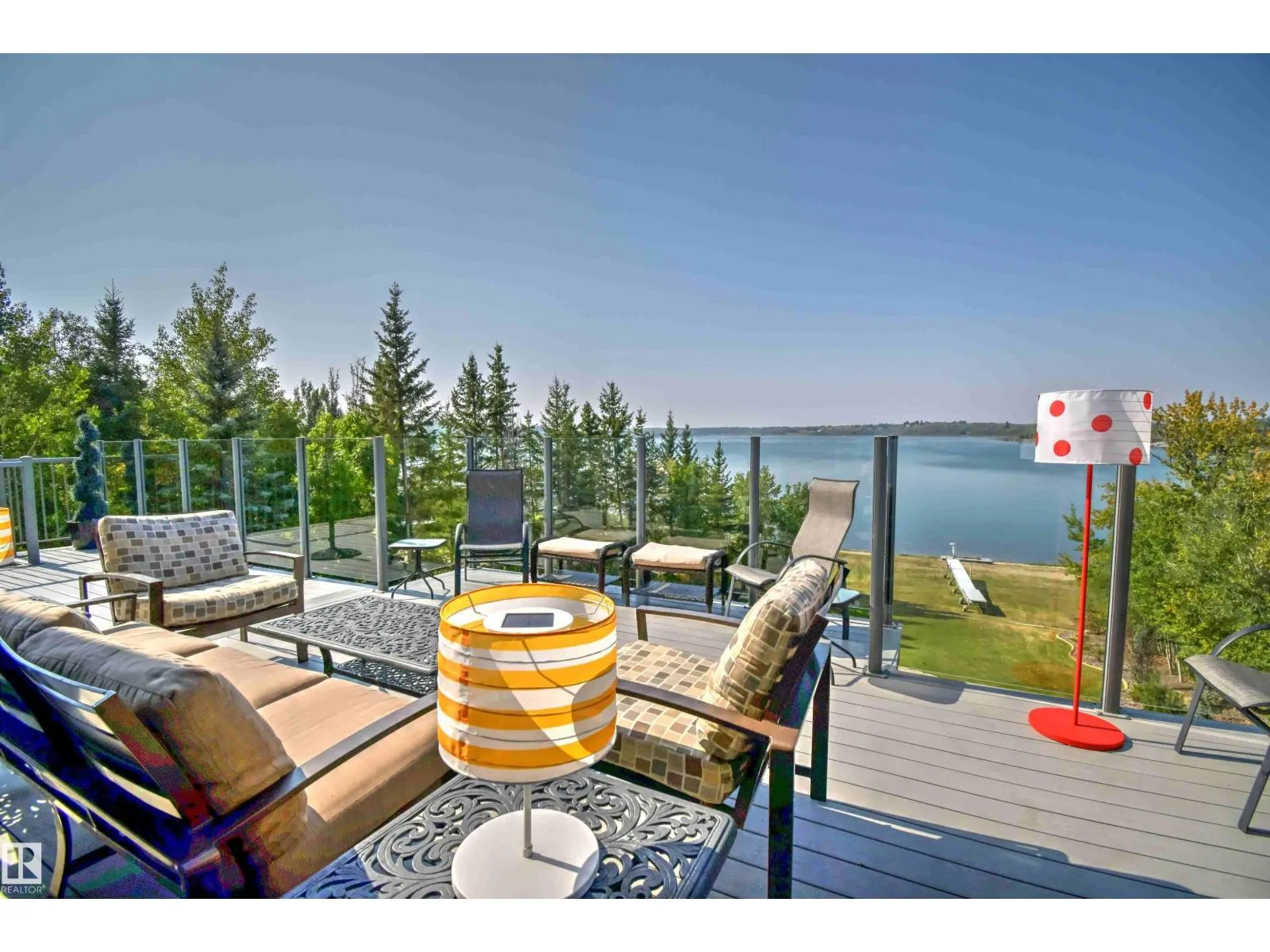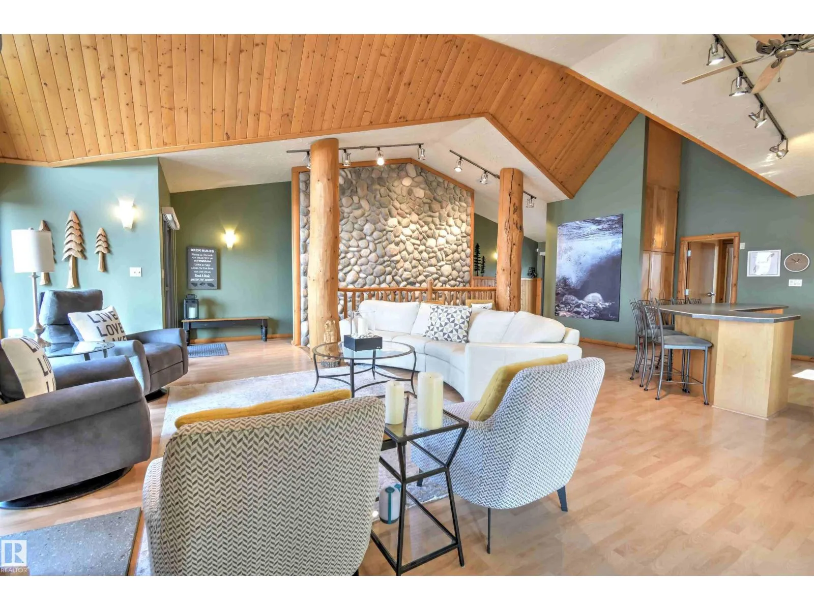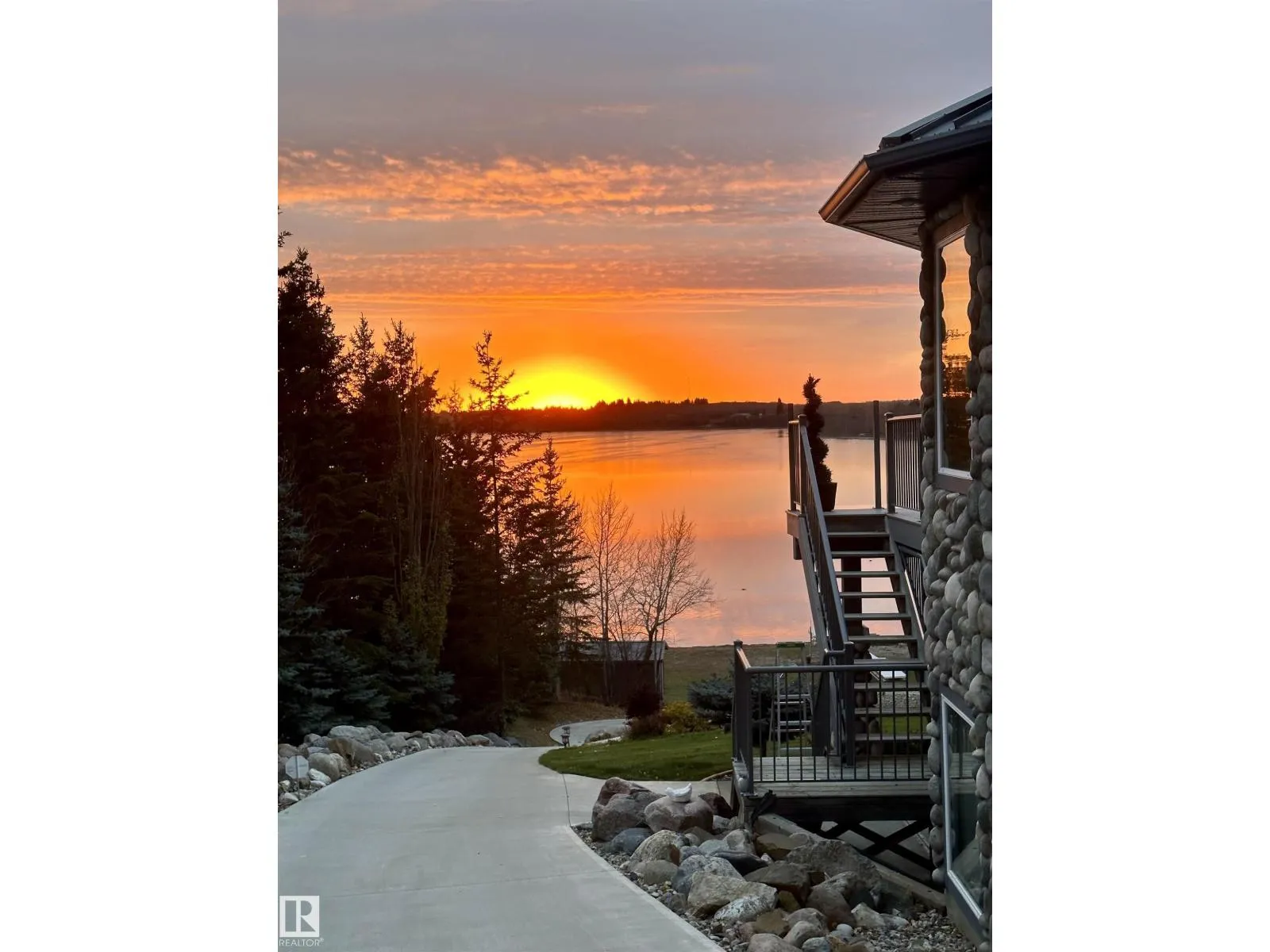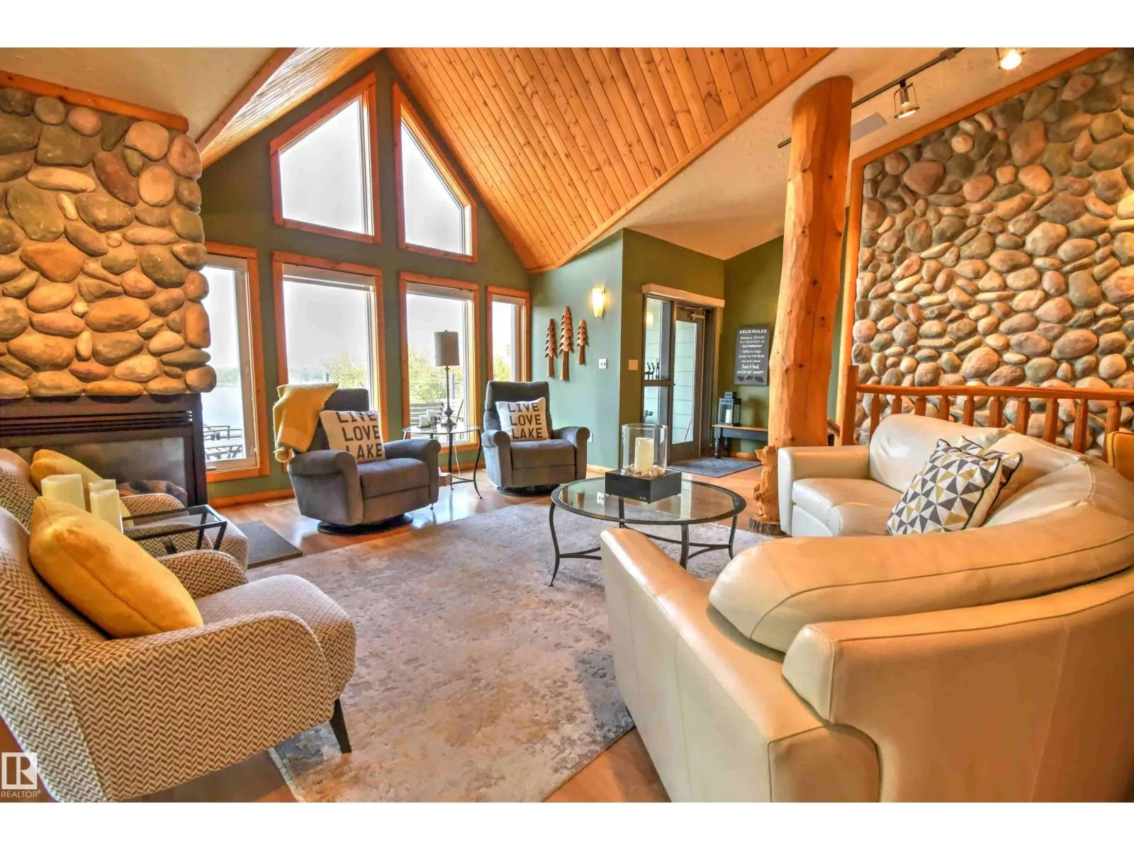 Your dream lakefront home is here at Lac Sante! This quality-built, property offers a blend of both comfort & rustic cabin charm. The open-concept main floor boasts vaulted ceilings, a large kitchen with bar seating, a dining area & a stunning living room with floor-to-ceiling windows, a cozy gas fireplace & gorgeous waterfront views. Two spacious bedrooms, each with their own ensuite, plus a convenient 2 pc bath complete the main level. The walkout basement features a huge family room with fireplace, 3 additional bedrooms & a unique 5-pc shower room - perfect after a long day at the beach. Step outside to enjoy the concrete patio below or relax on the expansive composite deck with glass railing above. Feel like youâre at a resort with the fire pit area, beach access & picturesque landscaping. A triple heated garage provides plenty of space for vehicles & toys. Just 2 hrs from Edmonton, this is the ultimate lake getaway with upgrades & features that must be seen to be truly appreciated. (id:27476)