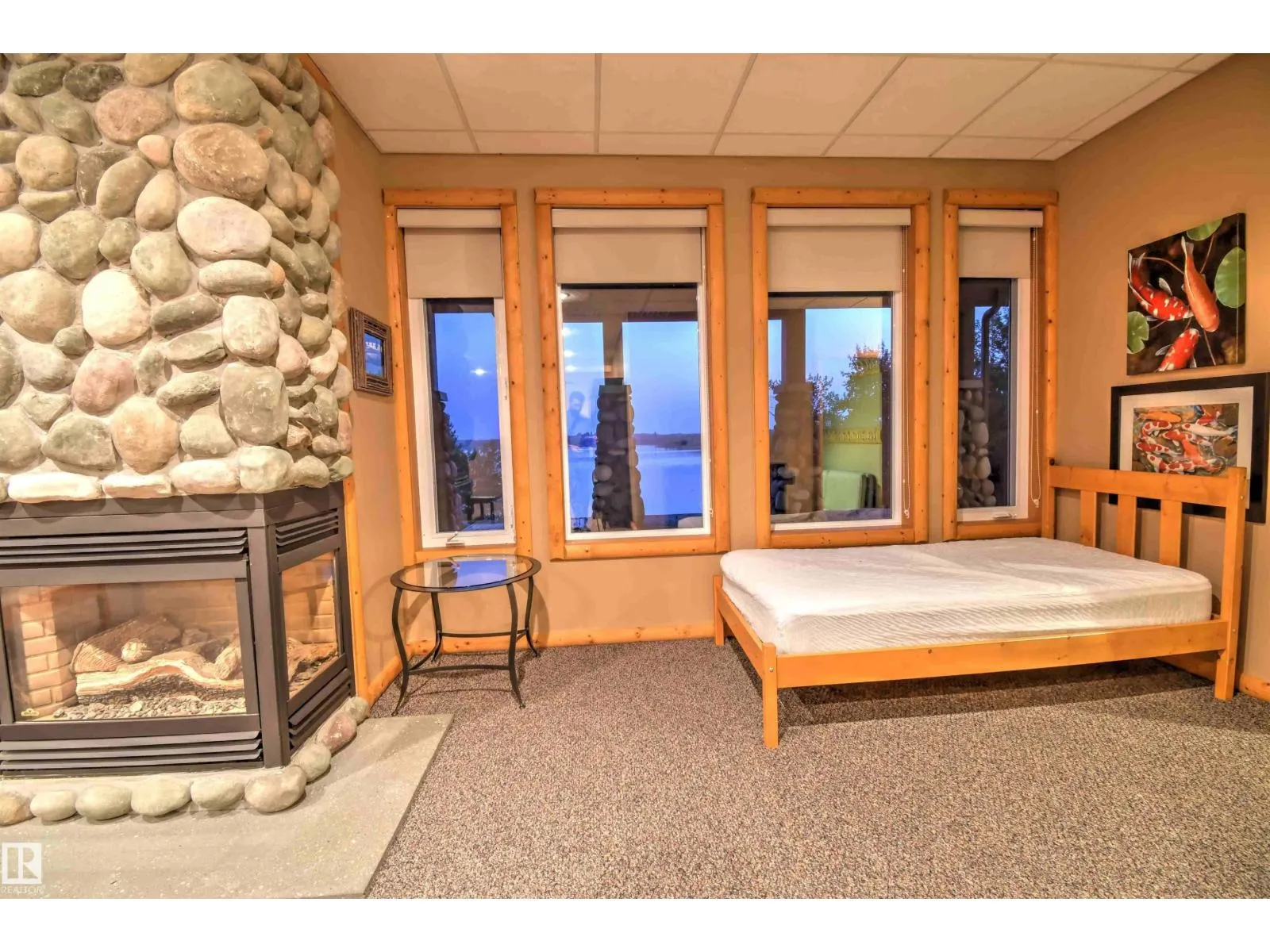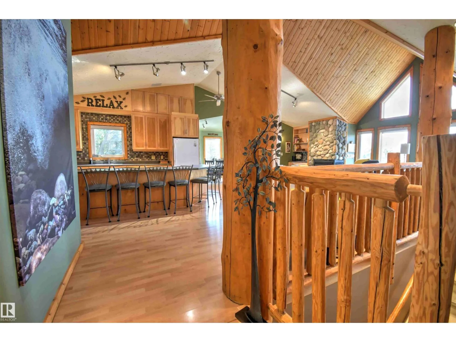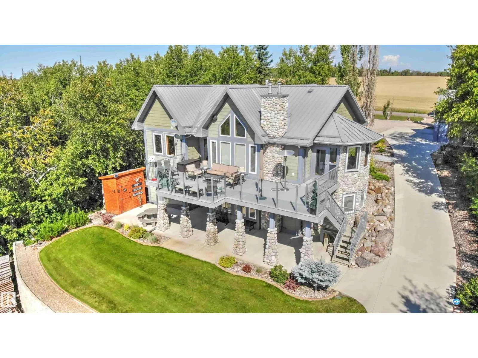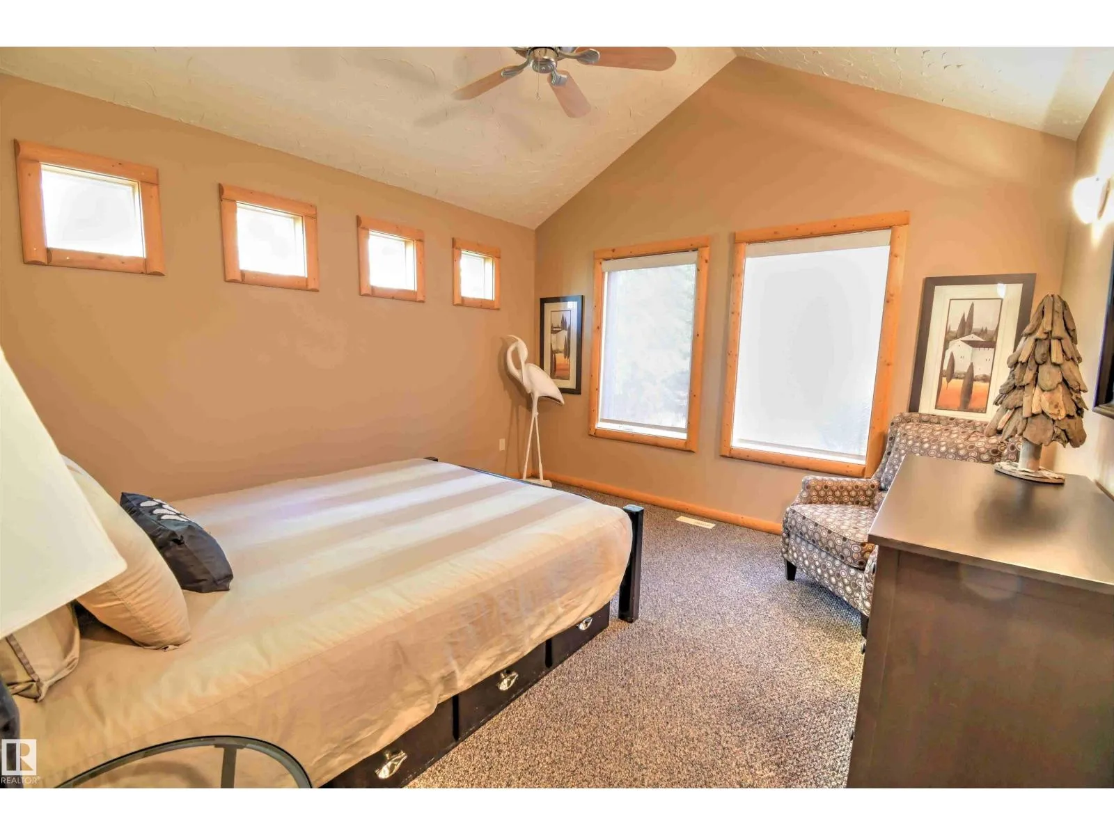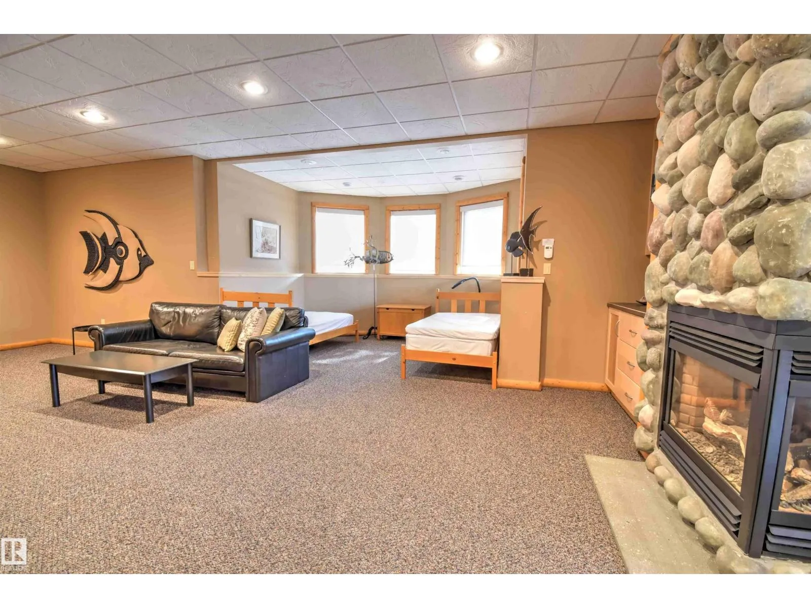 Your dream lakefront home is here at Lac Sante! This quality-built, property offers a blend of both comfort & rustic cabin charm. The open-concept main floor boasts vaulted ceilings, a large kitchen with bar seating, a dining area & a stunning living room with floor-to-ceiling windows, a cozy gas fireplace & gorgeous waterfront views. Two spacious bedrooms, each with their own ensuite, plus a convenient 2 pc bath complete the main level. The walkout basement features a huge family room with fireplace, 3 additional bedrooms & a unique 5-pc shower room - perfect after a long day at the beach. Step outside to enjoy the concrete patio below or relax on the expansive composite deck with glass railing above. Feel like youâre at a resort with the fire pit area, beach access & picturesque landscaping. A triple heated garage provides plenty of space for vehicles & toys. Just 2 hrs from Edmonton, this is the ultimate lake getaway with upgrades & features that must be seen to be truly appreciated. (id:27476)