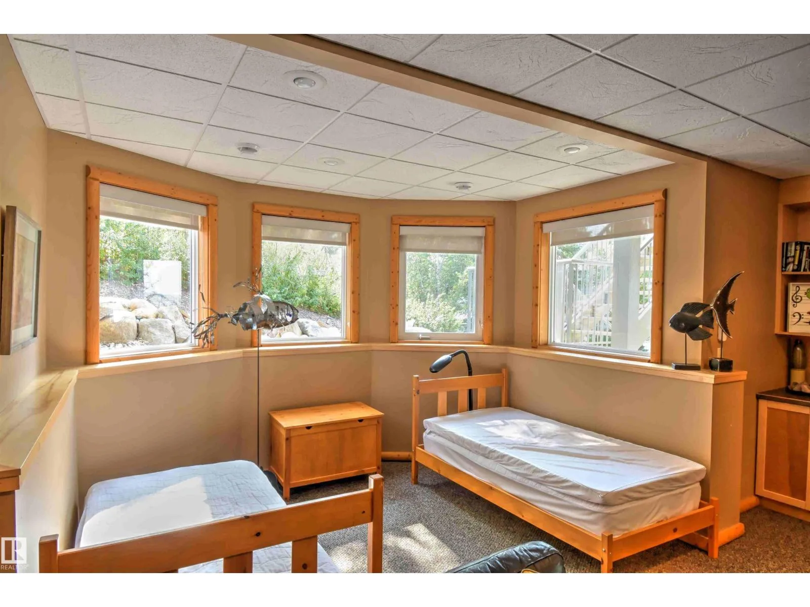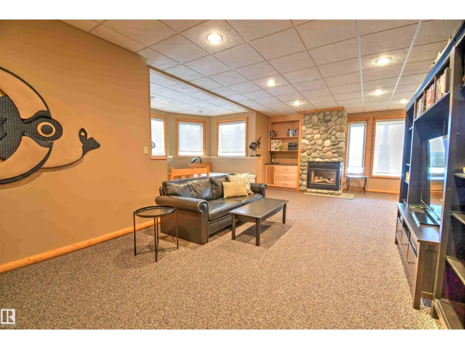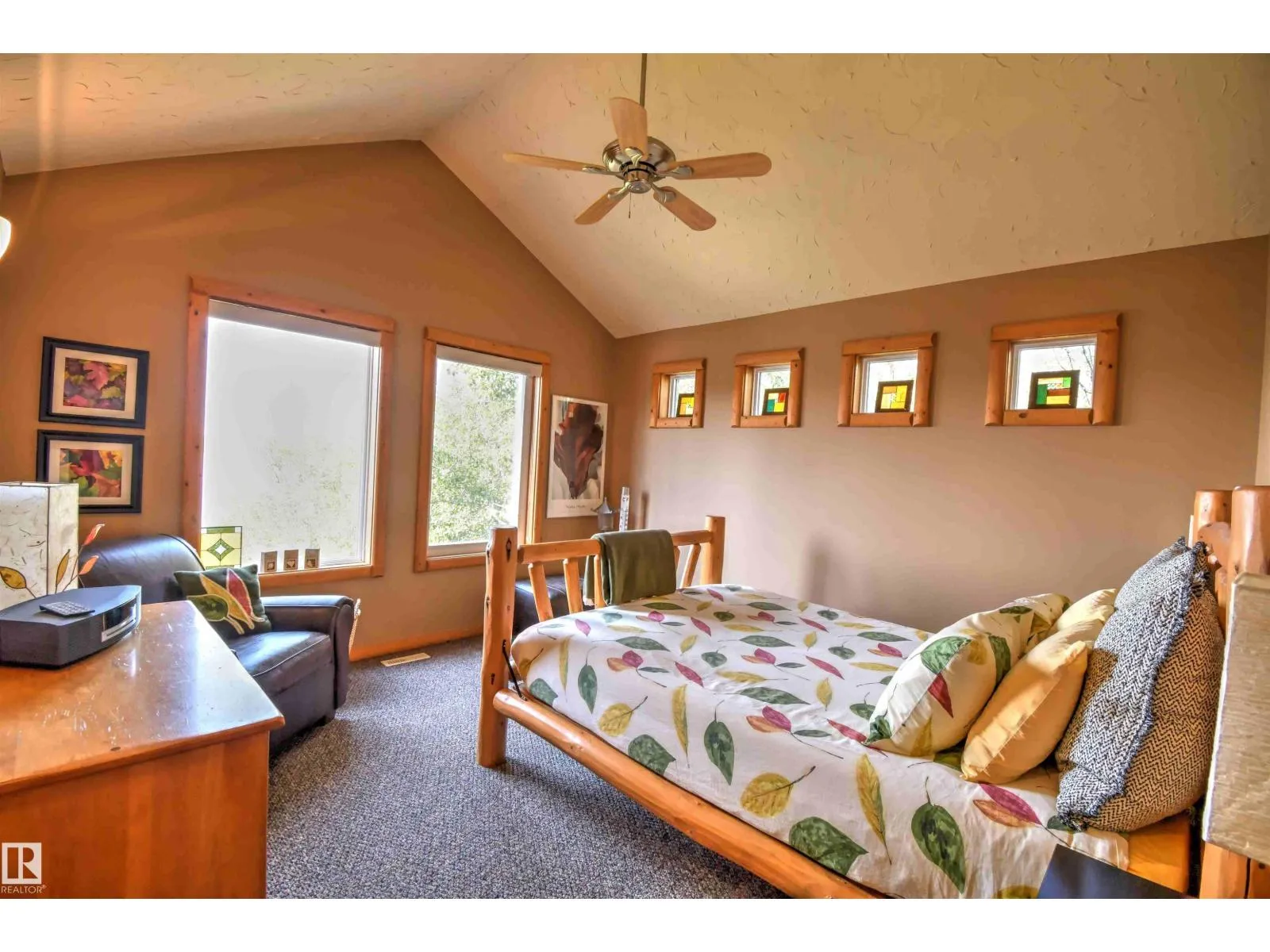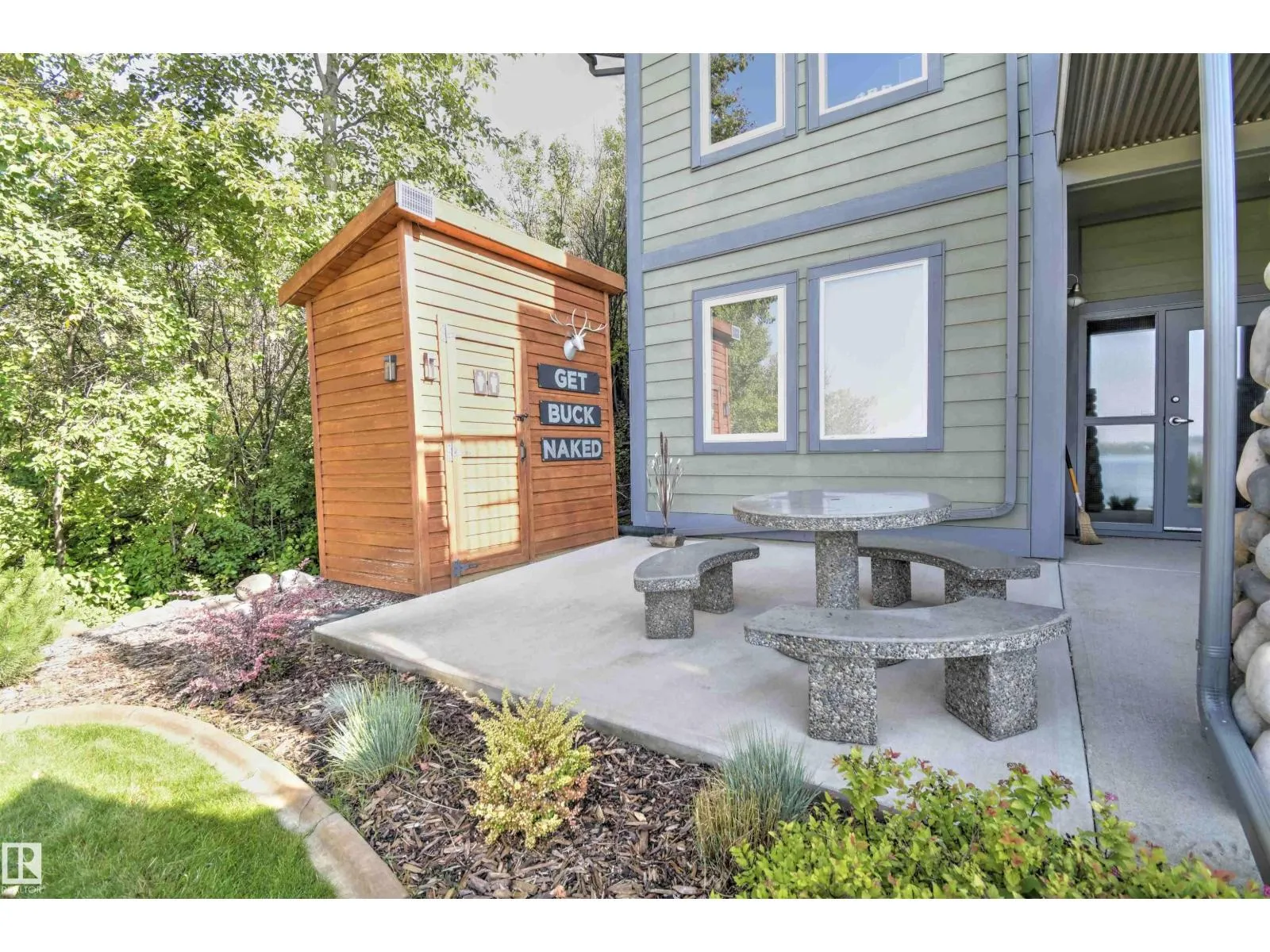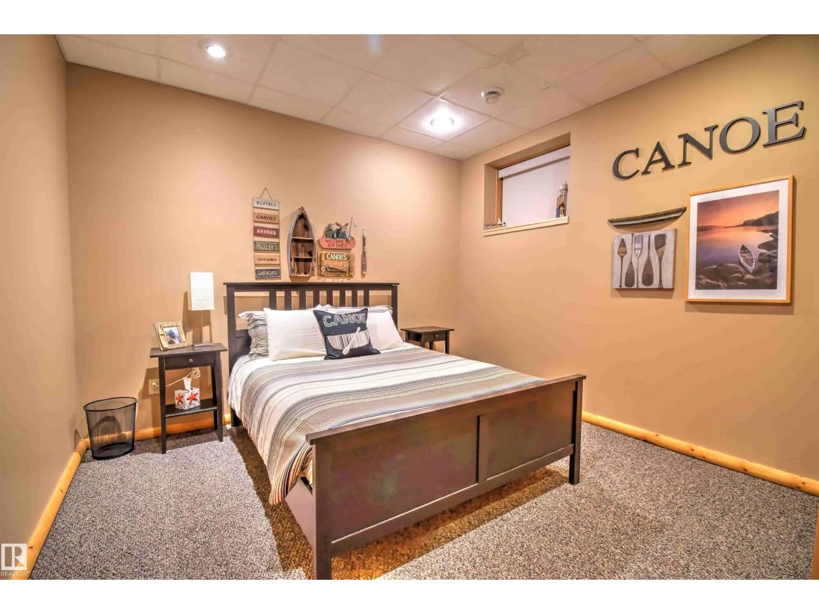 Your dream lakefront home is here at Lac Sante! This quality-built, property offers a blend of both comfort & rustic cabin charm. The open-concept main floor boasts vaulted ceilings, a large kitchen with bar seating, a dining area & a stunning living room with floor-to-ceiling windows, a cozy gas fireplace & gorgeous waterfront views. Two spacious bedrooms, each with their own ensuite, plus a convenient 2 pc bath complete the main level. The walkout basement features a huge family room with fireplace, 3 additional bedrooms & a unique 5-pc shower room - perfect after a long day at the beach. Step outside to enjoy the concrete patio below or relax on the expansive composite deck with glass railing above. Feel like youâre at a resort with the fire pit area, beach access & picturesque landscaping. A triple heated garage provides plenty of space for vehicles & toys. Just 2 hrs from Edmonton, this is the ultimate lake getaway with upgrades & features that must be seen to be truly appreciated. (id:27476)