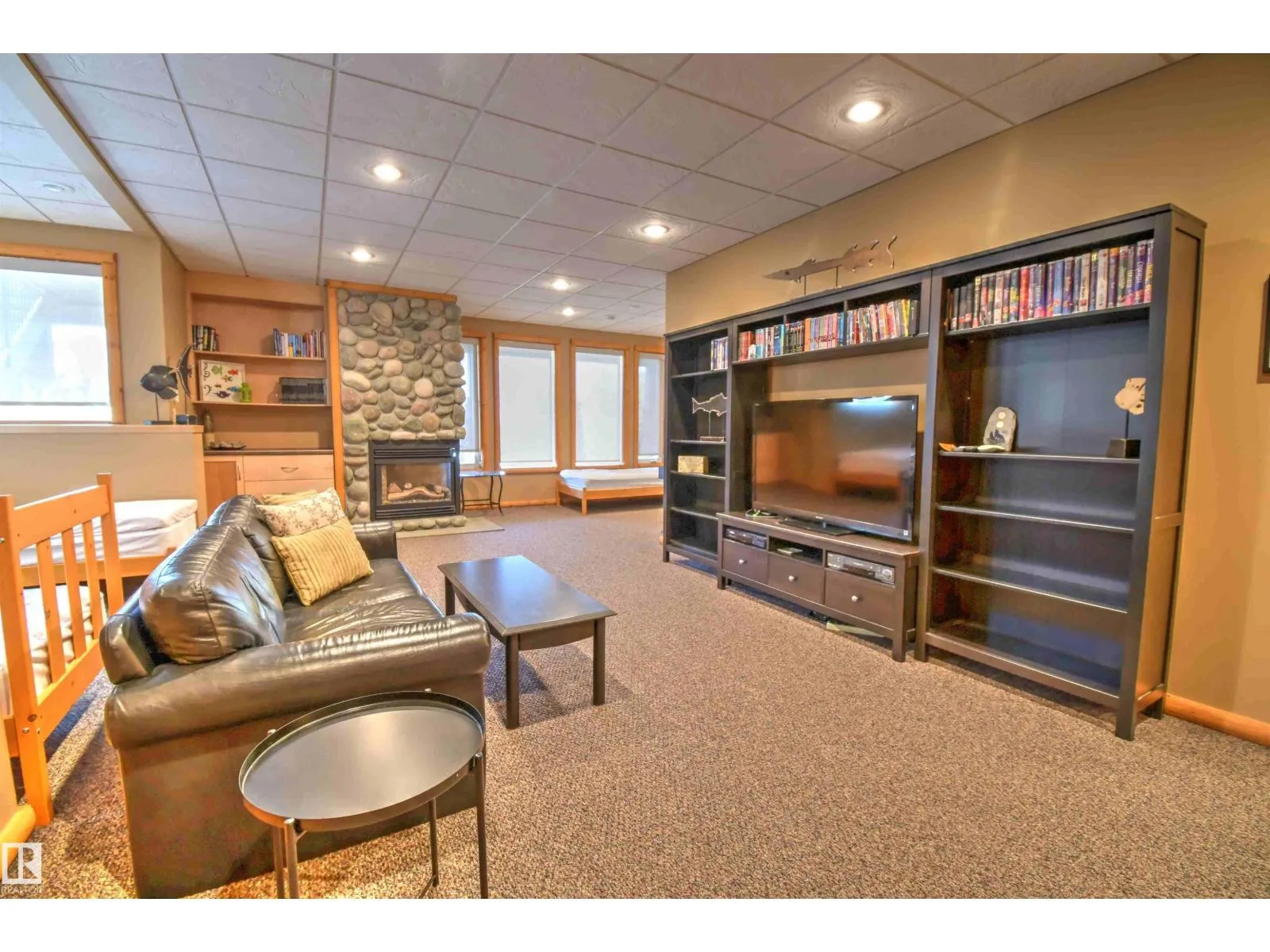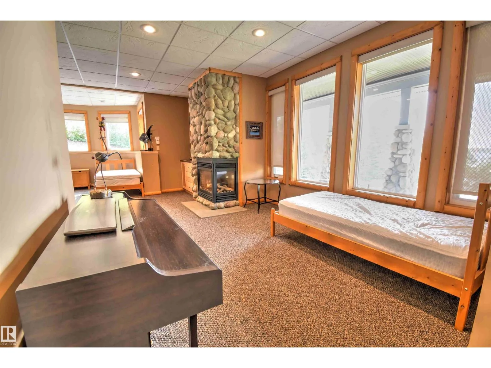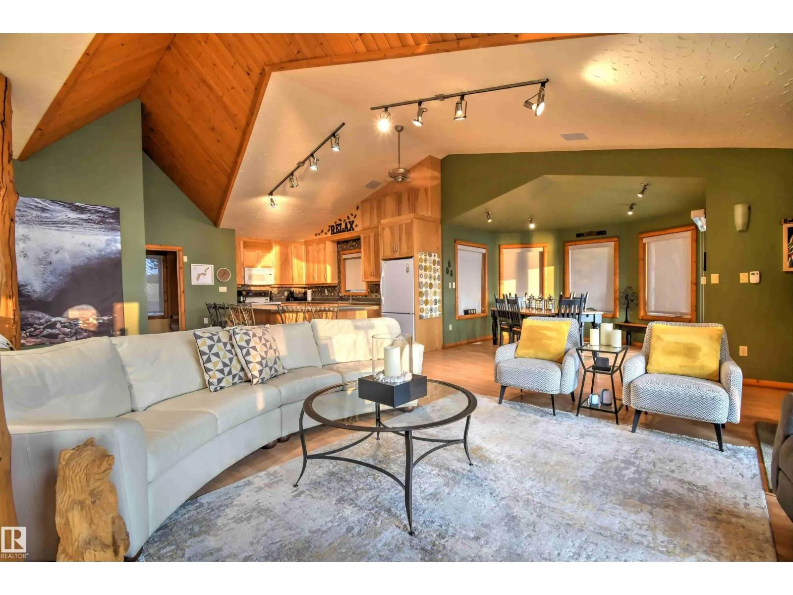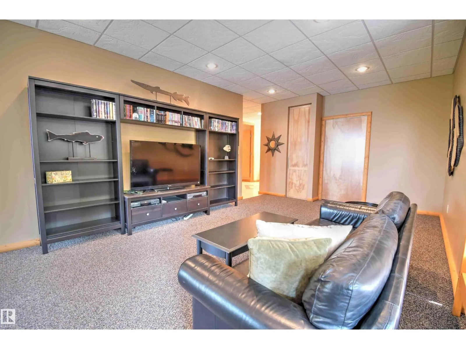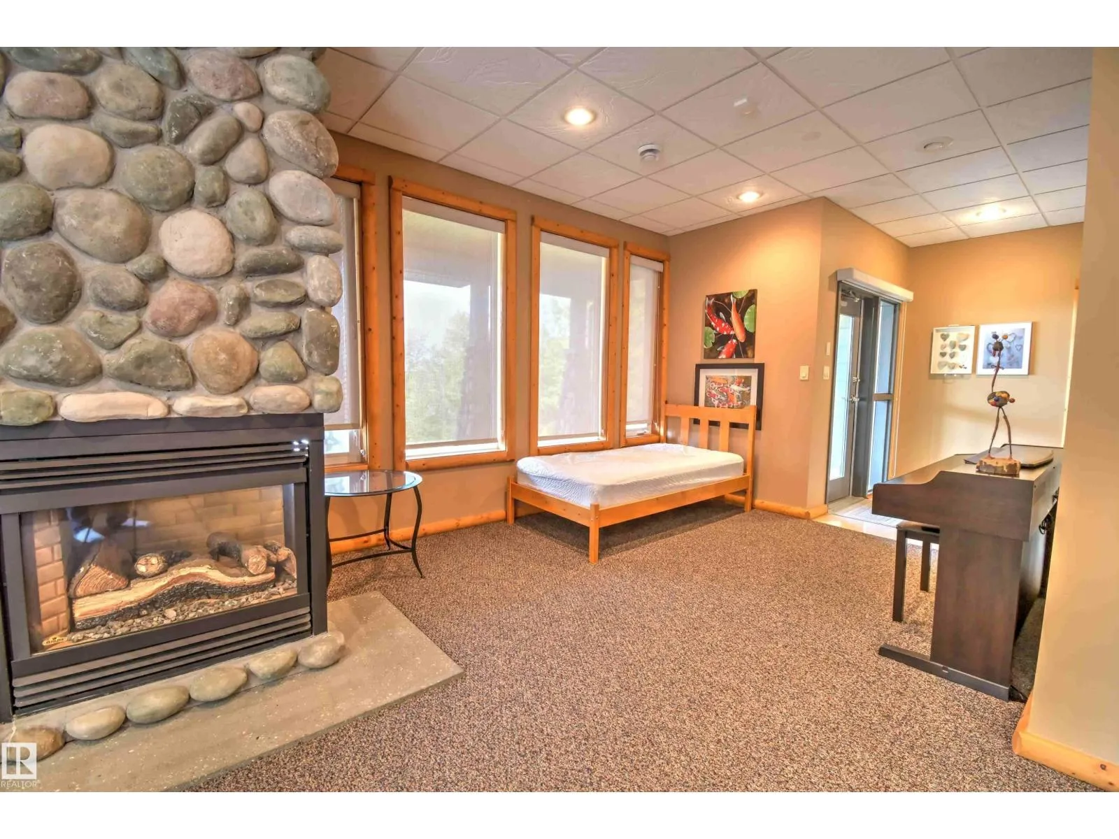 Your dream lakefront home is here at Lac Sante! This quality-built, property offers a blend of both comfort & rustic cabin charm. The open-concept main floor boasts vaulted ceilings, a large kitchen with bar seating, a dining area & a stunning living room with floor-to-ceiling windows, a cozy gas fireplace & gorgeous waterfront views. Two spacious bedrooms, each with their own ensuite, plus a convenient 2 pc bath complete the main level. The walkout basement features a huge family room with fireplace, 3 additional bedrooms & a unique 5-pc shower room - perfect after a long day at the beach. Step outside to enjoy the concrete patio below or relax on the expansive composite deck with glass railing above. Feel like youâre at a resort with the fire pit area, beach access & picturesque landscaping. A triple heated garage provides plenty of space for vehicles & toys. Just 2 hrs from Edmonton, this is the ultimate lake getaway with upgrades & features that must be seen to be truly appreciated. (id:27476)