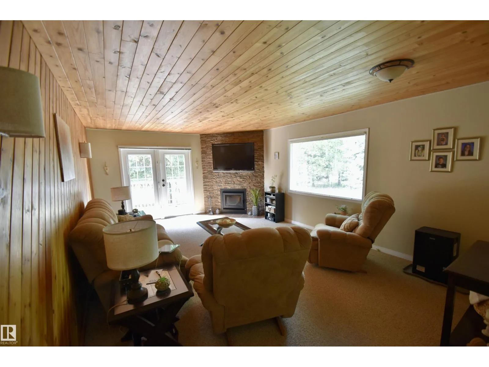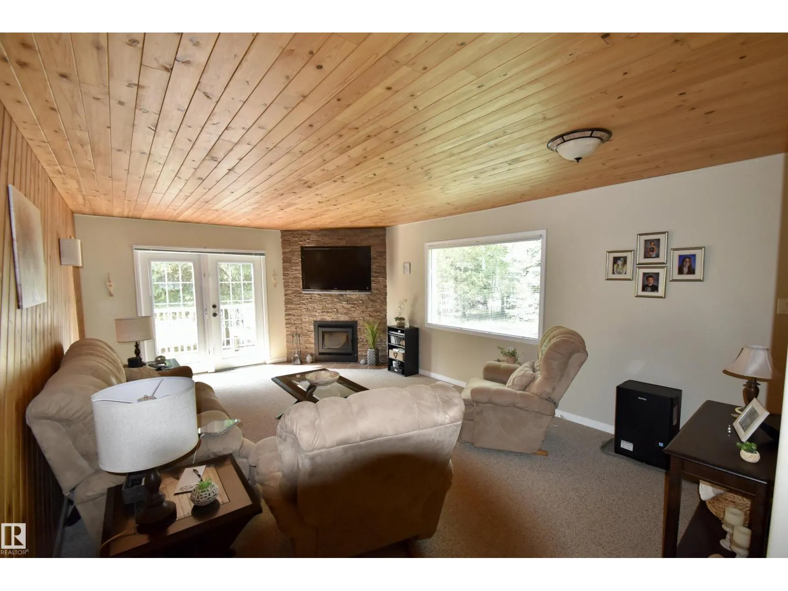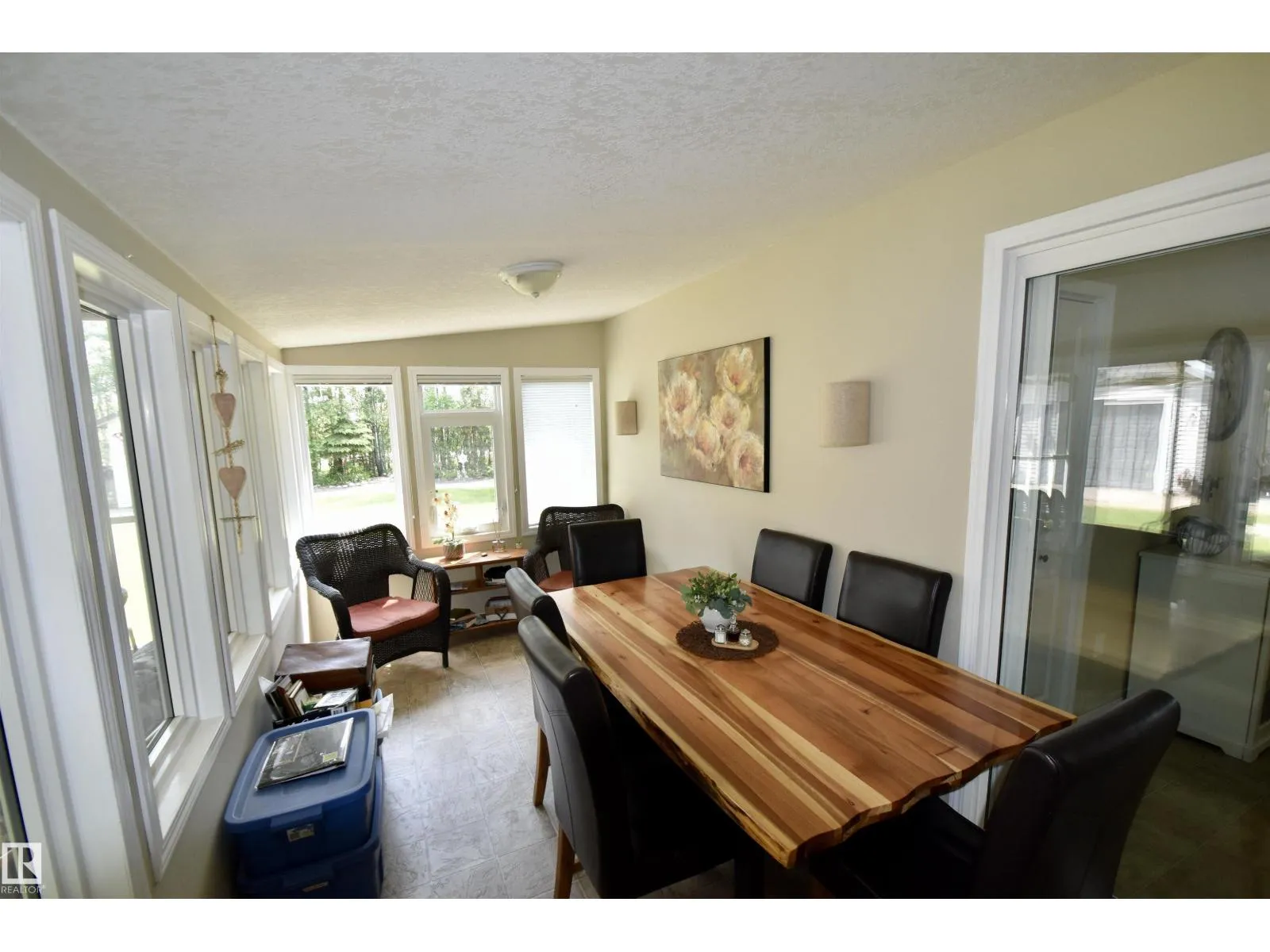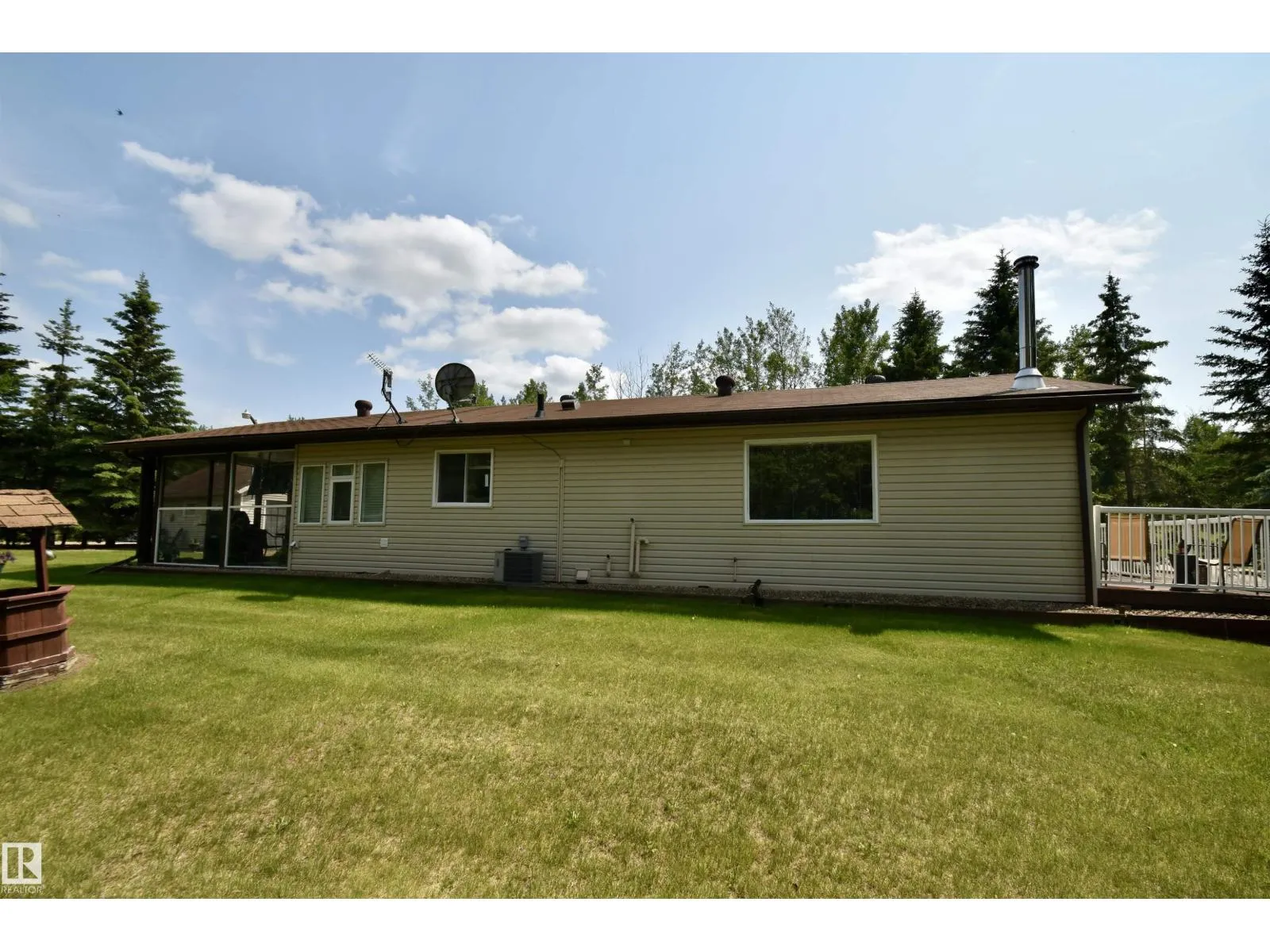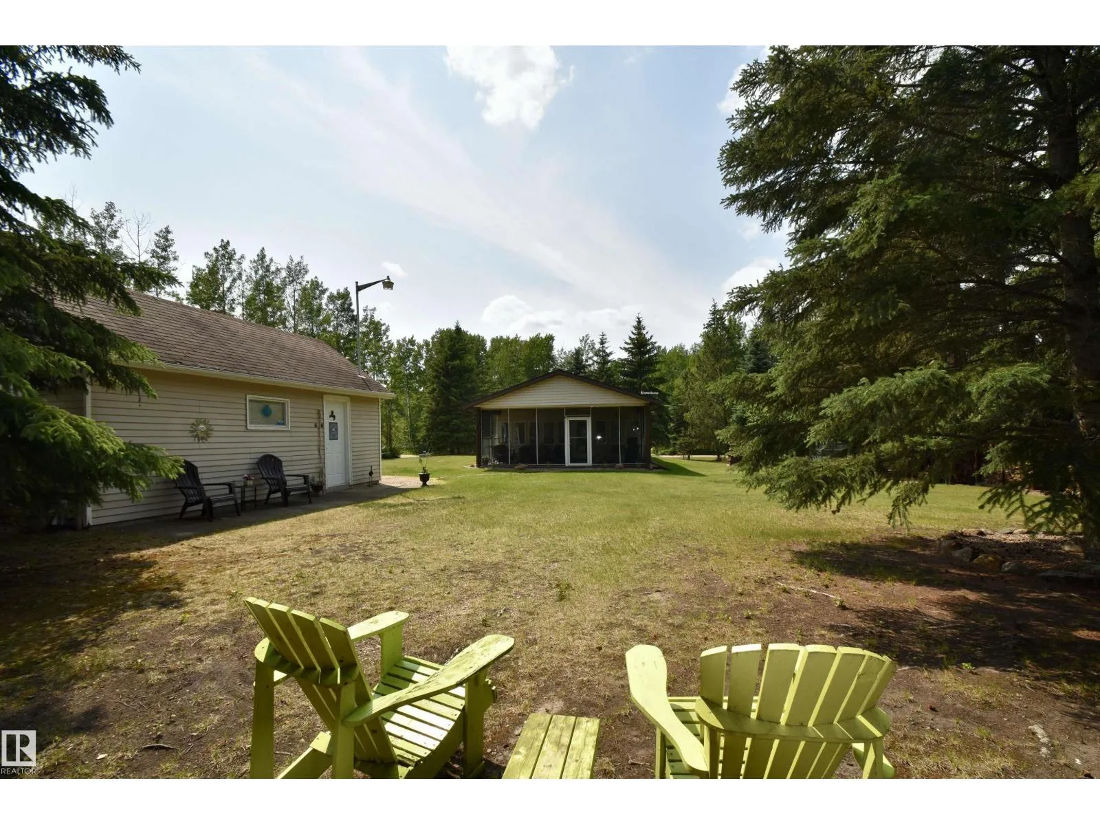 This well-kept 3 bedroom, 1 bathroom property at Floatingstone Lake, just under two hours from Edmonton, is the ideal getaway for families or those who love to entertain. Just a short walk to the lake, you'll enjoy easy access to fishing, boating, and summer fun. The home features air conditioning for comfort, a screened-in front porch perfect for relaxing, and two composite decksâno need to worry about replacing deck boards every few years. Inside, a spacious living room with a wood fireplace and dining area provide plenty of space for gatherings. The property includes a double car garage and a second garage currently used as a workshop. Thereâs room to host with multiple trailer parking spots, power hookups, and a cozy bunkhouse with two bunkbeds. Whether you're looking for a recreational escape or a quiet year round place to unwind, this turn-key property has everything you need with no major work required. Enjoy all the lake life has to offer from your own private retreat. (id:27476)