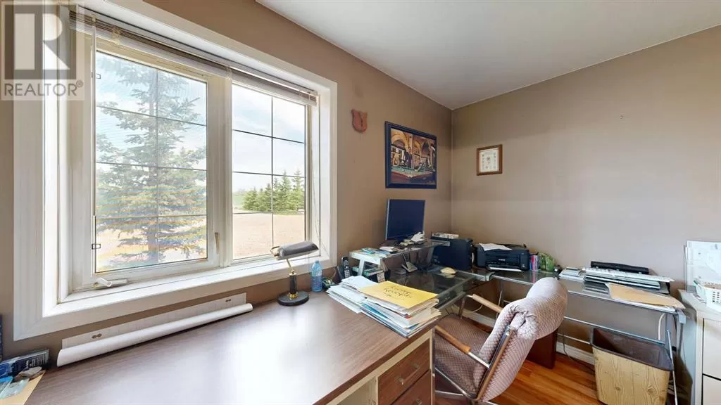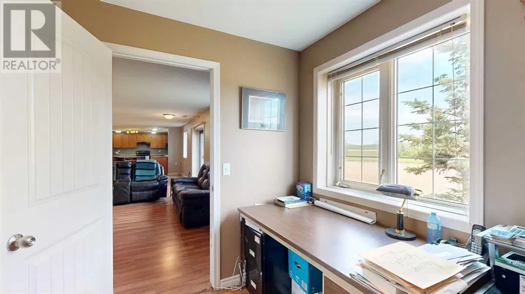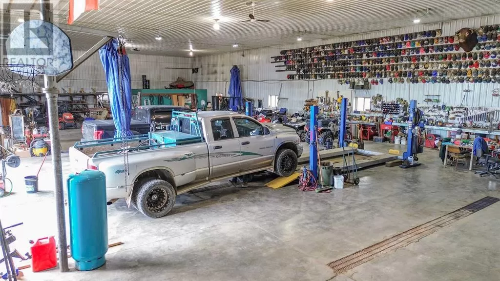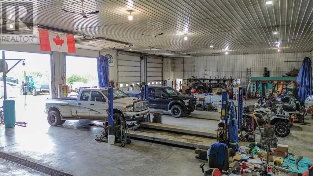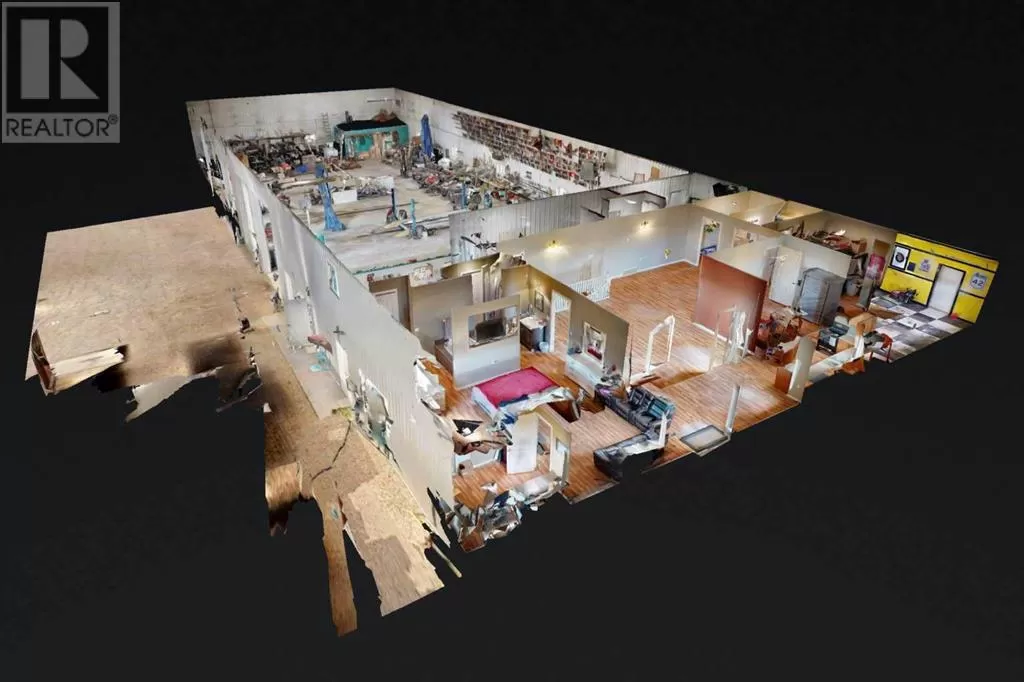 Live where you work, work where you live! This one-of-a-kind property offers the ultimate blend of industrial functionality and residential comfort. Ideal for trucking companies, equipment-based businesses, or entrepreneurs needing serious space, this unique setup includes a massive shop and a modern residence all under one roof. Located on 9.86 acres, right on Highway 56 and only 9.5 miles from Stettler, this property combines convenience, functionality, and investment potential. The shop measures 60â x 125â and the mezzanine is 12â6 x 60â offering extra storage or workspace flexibility, making this shop both practical and efficient for your growing business. There are 5 bays, 200 amp service, forced air, and in-floor heat. This shop has a spacious office, storage rooms, and a bathroom with a laundry sink and washing machine, ideal for cleaning up after a day on the job. Attached to the shop is a spacious, open-concept home ideal for those who want to live on-site or provide housing for staff. The main floor has an open living room, kitchen, and a large dining areaâwhich offers plenty of room for a full dining set plus additional furniture like a desk or breakfast nook. The kitchen has a corner pantry, honey-toned cabinetry, and a central island with space for seating. There are two additional rooms available for bedrooms or office space and the main bathrooms on both floors are efficiently designed. Upstairs, you will find a lovely family room with a balcony that overlooks the property â ideal for morning coffee or sunrise views. The primary bedroom has a spa-like feel, incorporating the jet tub, walk in shower, and closet area. There are three more bedrooms and a dedicated laundry room with front load washer and dryer. Heading towards the back, there is a multipurpose room, a 2 pc bathroom, and a staircase which accesses the shop. You can also access the shop from the main floor, without having to go outside. There is a separate, custom garage that will easily ho ld two vehicles. Sitting on a generous lot, the exterior offers a level, gravel parking area with plenty of space for trucks, equipment, trailers, and personal vehicles. There is also an above ground pool, a garden area, and plenty of green space, including natural brush and grass. Whether you're expanding your fleet, relocating your business, or simply dreaming of a home-based operation, this property's dual nature delivers the space, flexibility, and functionality to make it happen. (id:27476)