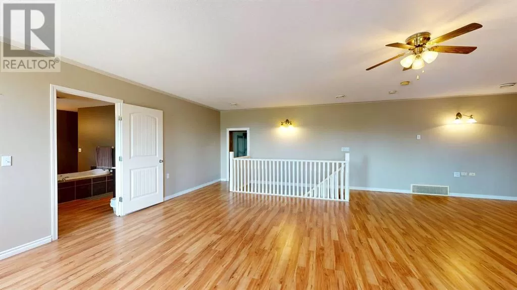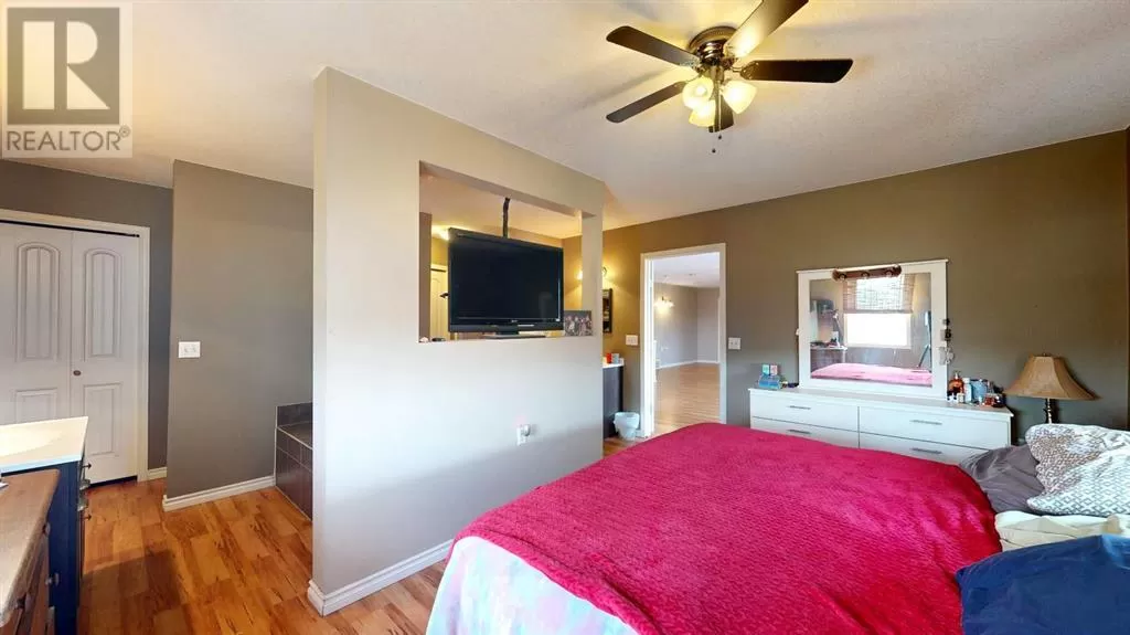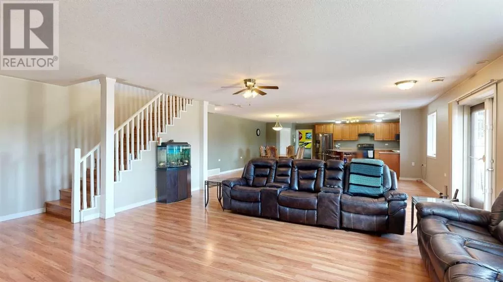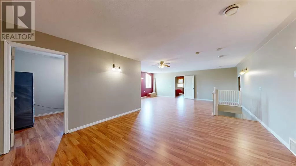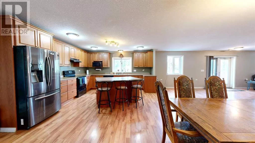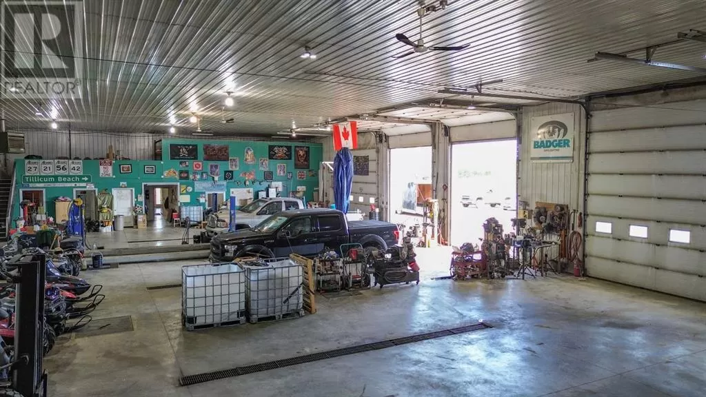 Live where you work, work where you live! This one-of-a-kind property offers the ultimate blend of industrial functionality and residential comfort. Ideal for trucking companies, equipment-based businesses, or entrepreneurs needing serious space, this unique setup includes a massive shop and a modern residence all under one roof. Located on 9.86 acres, right on Highway 56 and only 9.5 miles from Stettler, this property combines convenience, functionality, and investment potential. The shop measures 60â x 125â and the mezzanine is 12â6 x 60â offering extra storage or workspace flexibility, making this shop both practical and efficient for your growing business. There are 5 bays, 200 amp service, forced air, and in-floor heat. This shop has a spacious office, storage rooms, and a bathroom with a laundry sink and washing machine, ideal for cleaning up after a day on the job. Attached to the shop is a spacious, open-concept home ideal for those who want to live on-site or provide housing for staff. The main floor has an open living room, kitchen, and a large dining areaâwhich offers plenty of room for a full dining set plus additional furniture like a desk or breakfast nook. The kitchen has a corner pantry, honey-toned cabinetry, and a central island with space for seating. There are two additional rooms available for bedrooms or office space and the main bathrooms on both floors are efficiently designed. Upstairs, you will find a lovely family room with a balcony that overlooks the property â ideal for morning coffee or sunrise views. The primary bedroom has a spa-like feel, incorporating the jet tub, walk in shower, and closet area. There are three more bedrooms and a dedicated laundry room with front load washer and dryer. Heading towards the back, there is a multipurpose room, a 2 pc bathroom, and a staircase which accesses the shop. You can also access the shop from the main floor, without having to go outside. There is a separate, custom garage that will easily ho ld two vehicles. Sitting on a generous lot, the exterior offers a level, gravel parking area with plenty of space for trucks, equipment, trailers, and personal vehicles. There is also an above ground pool, a garden area, and plenty of green space, including natural brush and grass. Whether you're expanding your fleet, relocating your business, or simply dreaming of a home-based operation, this property's dual nature delivers the space, flexibility, and functionality to make it happen. (id:27476)