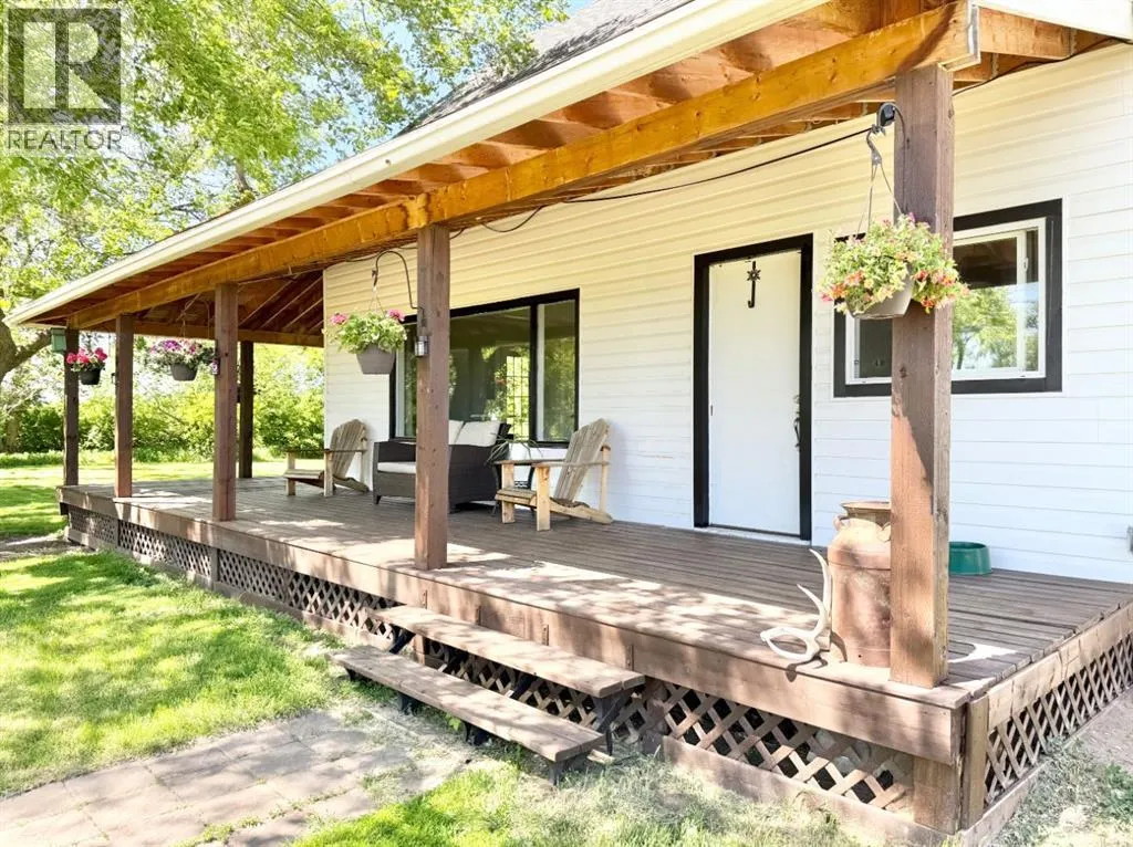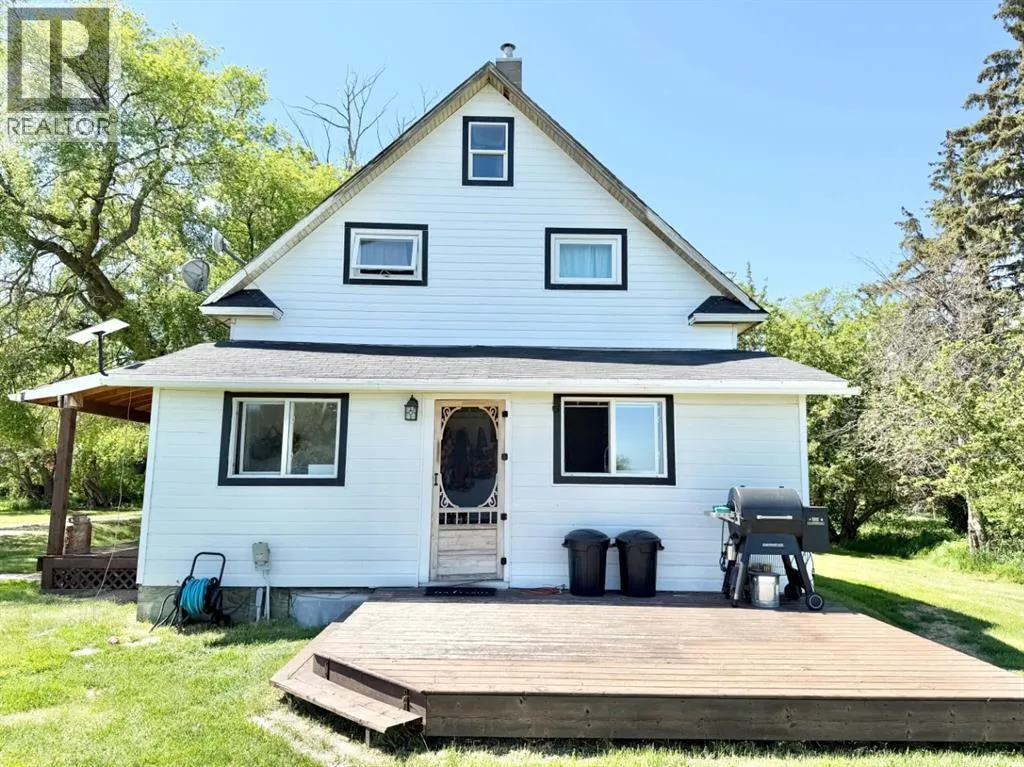 Welcome to your ideal country retreat! This charming 1.5 storey farmhouse sits on 9.17 acres of peaceful prairie and is the perfect blend of country charm and modern comfort. Recently back on the market, this property now features an impressive renovation that has completely transformed key living spaces.The kitchen, laundry area, and bathroom were taken right down to the studs and rebuilt with care and quality. The brand-new custom kitchen boasts beautiful butcher block countertops, all-new stainless steel appliances, stylish lighting, a new sink. The bathroom features a new vanity, new tile in the shower, and modern finishes throughout. The laundry area has also been fully updated for both style and functionality. Additional upgrades include new ceilings in the kitchen, laundry room, and bathroom; new flooring and fresh paint throughout much of the home, including the kitchen, bathrooms, laundry room, porch, hallway, and one upstairs bedroom. Beyond the updates, this home offers 3 comfortable bedrooms, 2 bathrooms, main floor laundry, and a cozy wrap-around covered porch â perfect for enjoying morning coffee or watching prairie sunsets. Youâll also find vinyl windows, a high-efficiency furnace, newer siding and insulation, updated plumbing and electrical, and a reinforced foundation. The acreage is thoughtfully set up for rural living with chicken coops, corrals, automatic livestock waterer, and perimeter fencing. An 18x36 shed provides great storage, while the massive 30x70 shop features a concrete floor and insulated office/man cave space â ideal for work, hobbies, or relaxation. With two water wells and plenty of space for a garden, this property has everything you need to live your acreage dream.This move-in ready homestead is a rare find â beautifully updated, well-equipped, and ready for your next chapter of country living. (id:27476)
