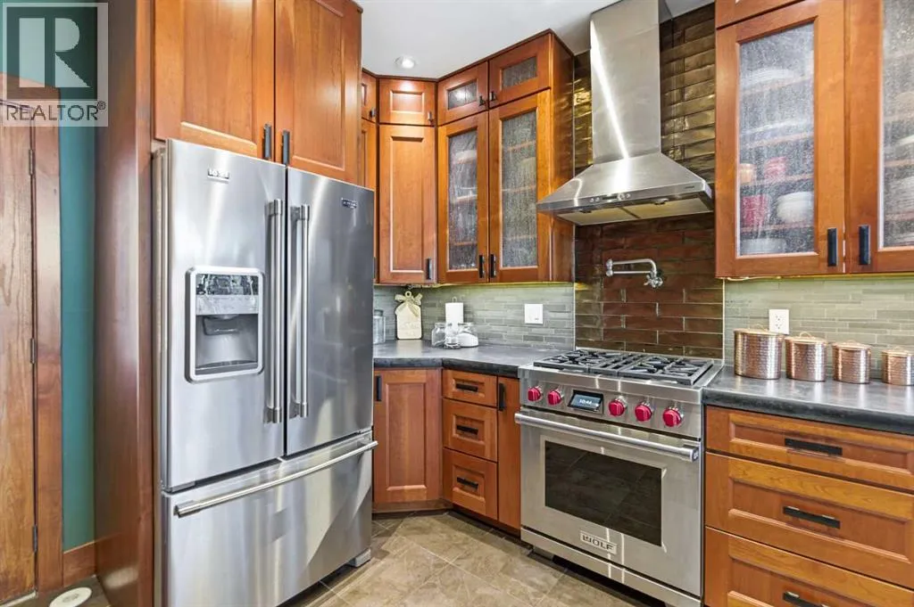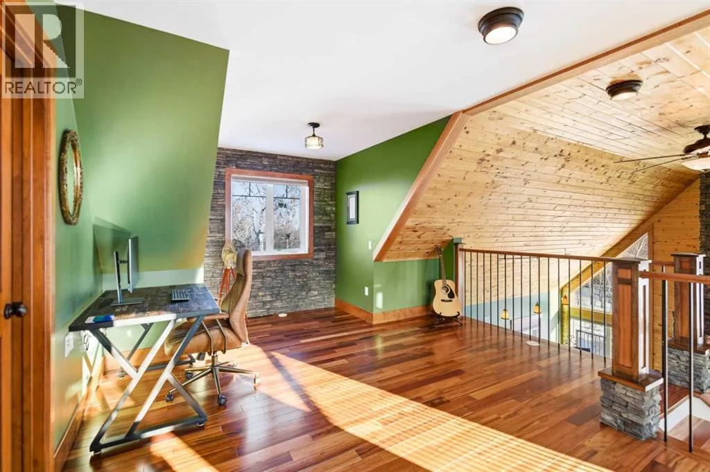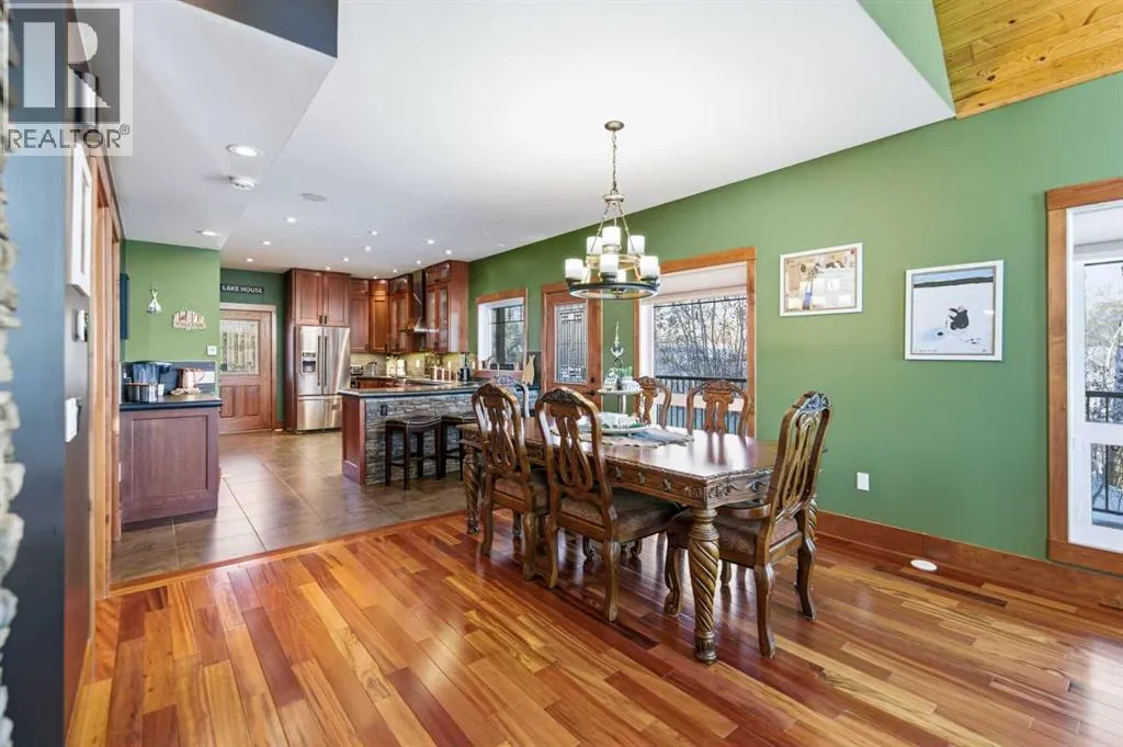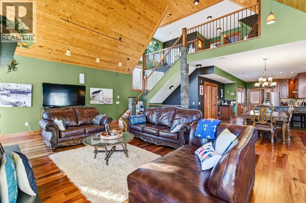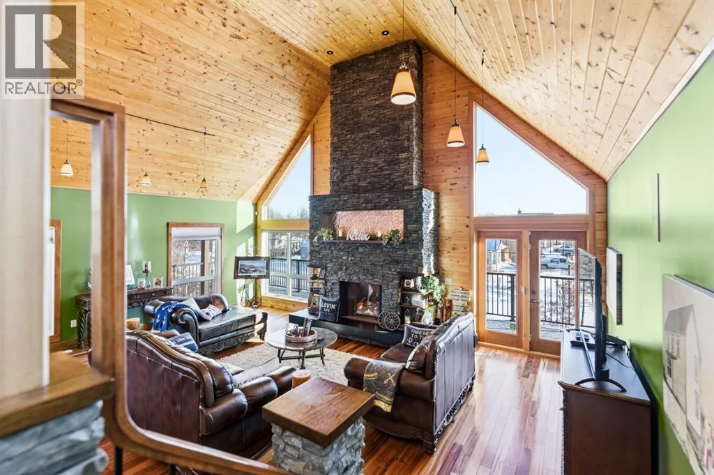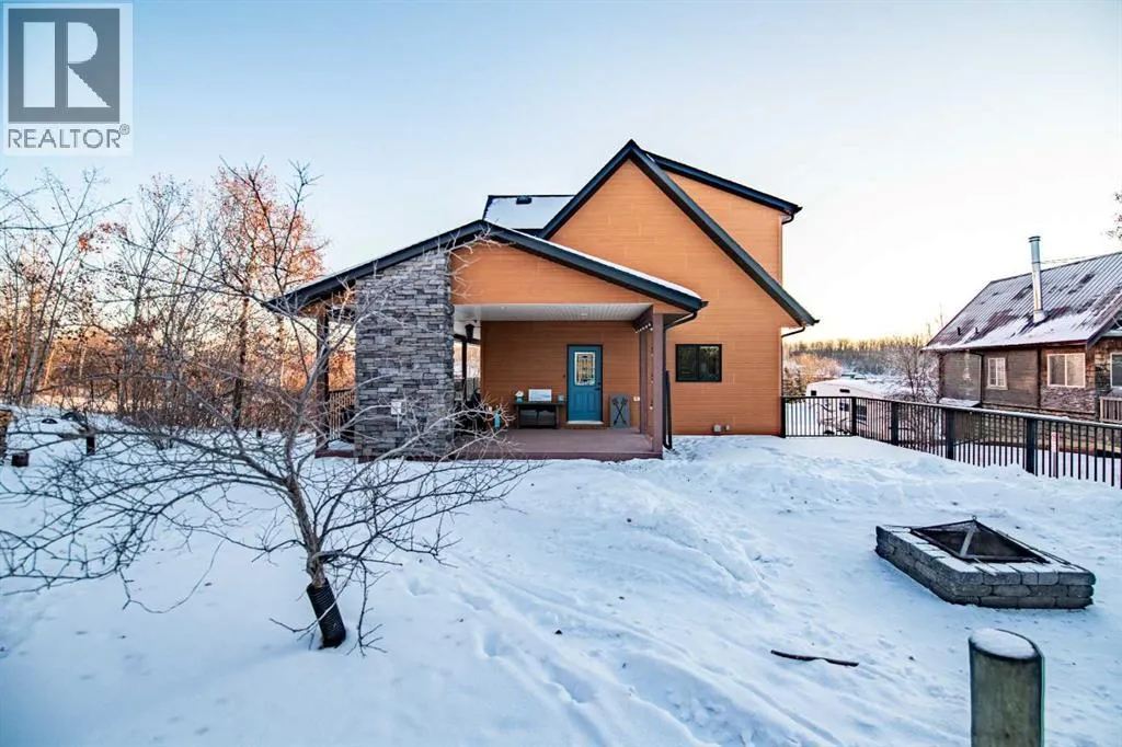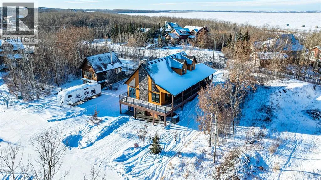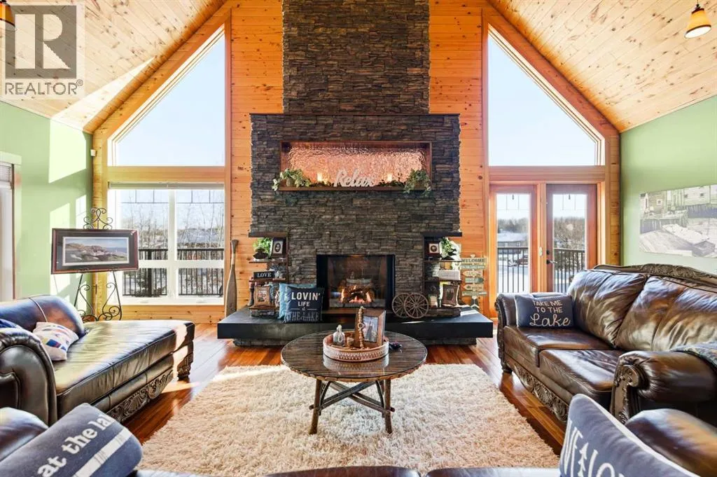 Located at one of Albertaâs largest lakes, Buffalo Lake is truly one of the areaâs best-kept secrets. Welcome to Buffalo Sands, a close-knit lake community offering a four-season lifestyle ideal for weekend escapes, unwinding after work or full-time living. This exceptional lakehouse-inspired chalet is not an A-frame cabin, but a thoughtfully designed home with architectural character, warmth and timeless appeal. This beautifully maintained 1½-storey, fully finished home features a front walkout entry-level with 9â ceilings and in-floor heating, offering comfort and practicality year-round. The attached double heated garage (12â6â x 33â6â) is fully finished, painted, wired and includes a floor drain, upgraded lighting, new electrical panel, and generator hook-up panel. Step inside to a welcoming tiled foyer with generous storage and a stylish 2-piece bathroom. A few steps up, the great room impresses with soaring 19â vaulted ceilings, polished hardwood floors and a stunning floor-to-ceiling stone fireplace with copper insert, framed by stone pillars inside and out. Large windows flood the space with natural light and showcase tranquil views. The kitchen is designed for both everyday living and entertaining, featuring polished concrete countertops, a premium WOLF gas stove, stainless steel appliance package, corner sink, pantry, breakfast bar and a custom coffee station. Three doors provide seamless access to the massive three-sided wrap-around covered deck, perfect for hosting or relaxing outdoors. The primary bedroom offers a walk-in closet with built-in organizers and a spa-inspired ensuite with an upgraded steam walk-in tiled shower and glass doors. The upper-level loft overlooks the main living space and includes two additional bedrooms and a 4-piece bathroomâideal for guests, family a library or office nook and direct access to a covered outdoor courtyard complete with a gas fireplace. The entry-level walkout features in-floor heat, a newly created recreation r oom/could be additional bedroom with plush carpeting, cabinetry and feature dart wall, a large utility/laundry room with epoxy flooring and extensive storage, workshop/boiler room. Outdoor features include multiple conversation areas a fire pit and maintenance-free decking with storage underneath. Recent upgrades include new WOLF stove, stainless refrigerator, Samsung washer/dryer, boiler, furnace and A/C unit, hot water tank, sound system (inside and out), lighting upgrades, paint, cabinetry refinishing, garage improvements, widened driveway, additional parking pad, landscaping/ new sod and stone enhancements. A unique highlight is the walking trail behind the home providing direct access to the lake, beach, docks, playgrounds, pond - skate, canoe or country ski on trails. The property includes the right to boat slip in the community marina (on separate title). Full time residence or your new income / rental escape! This is lake living at its finest-be prepared for love at first sight. (id:27476)