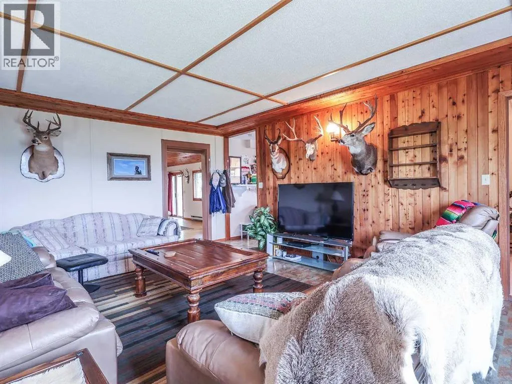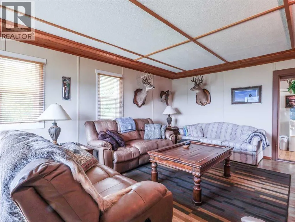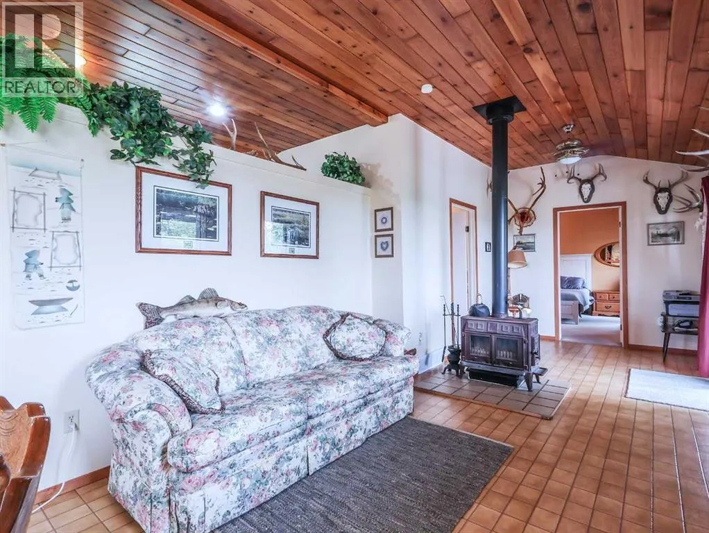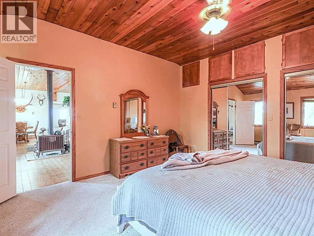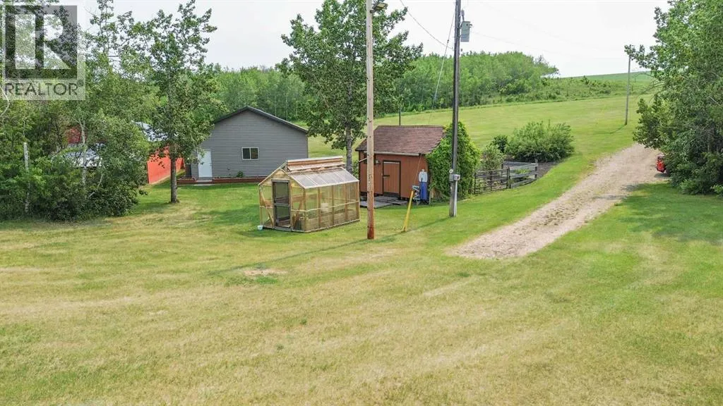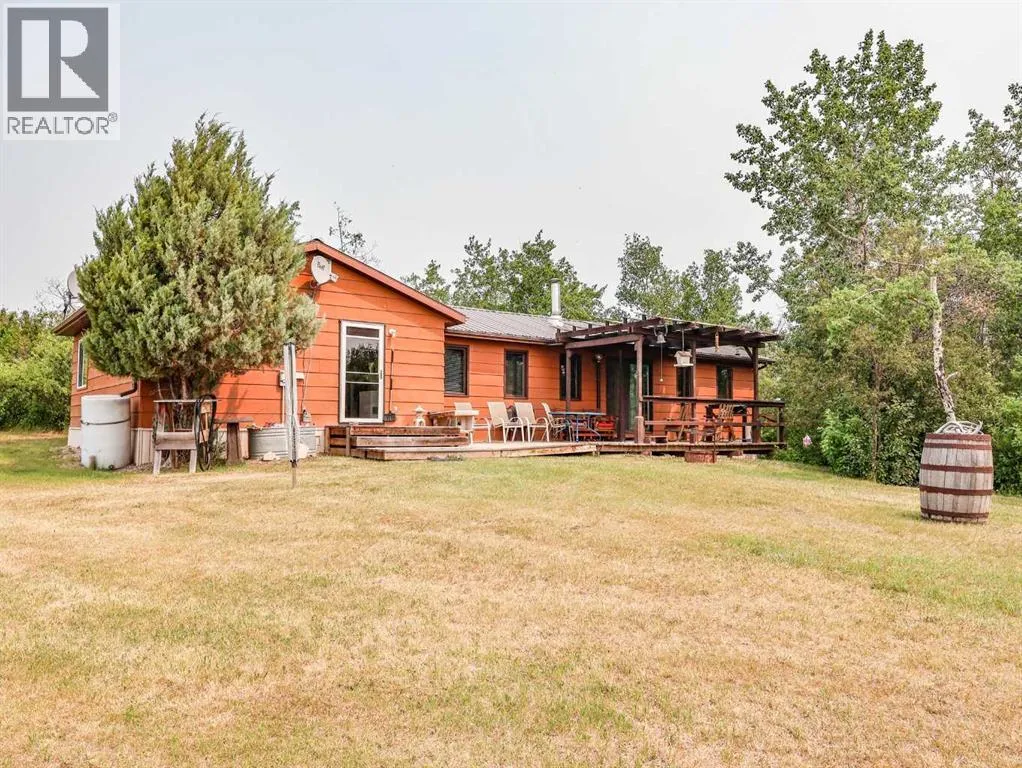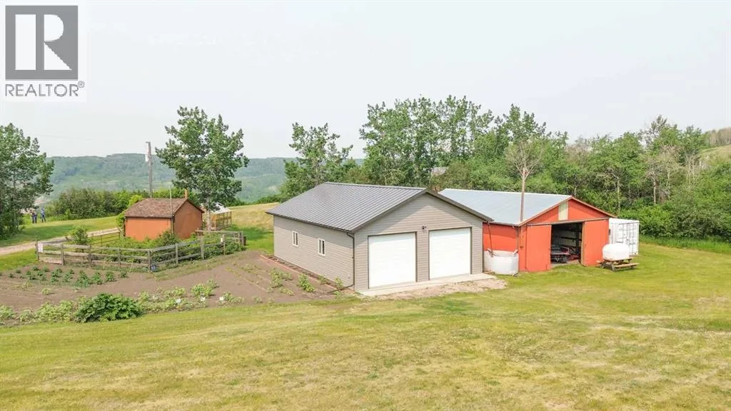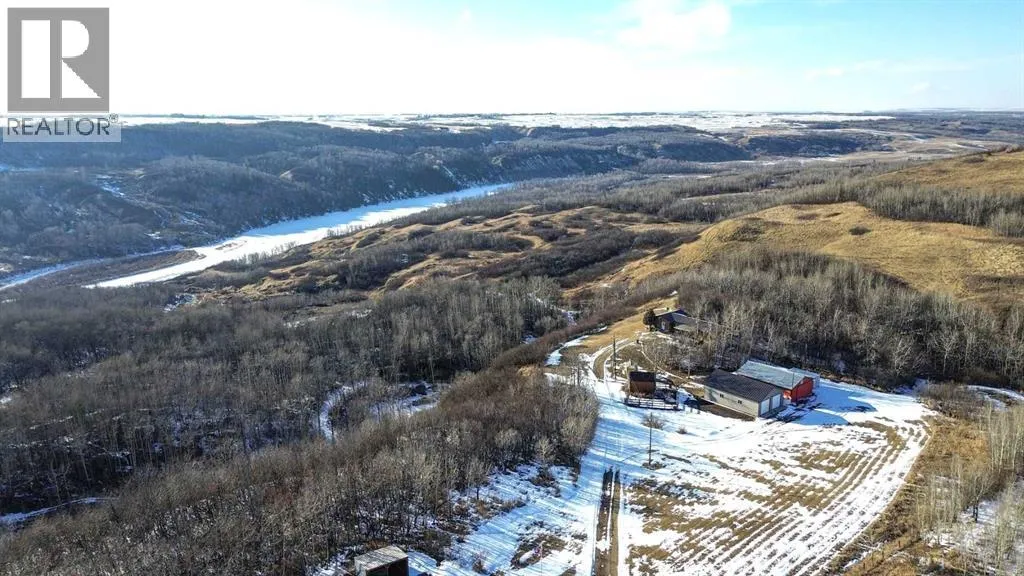Sitting above the Red Deer River, this rare riverfront property offers an exceptional lifestyle of serenity and relaxation. The 137 acre property sits on the east side of the river and includes a half mile of pristine riverfront as well as open meadows and natural bush. This property is located approx. 20 miles SW of Stettler and 33 miles east of Red Deer. The year-round home sits atop a hill with a clear view of the valley below. Inside, the house has rustic charm to go along with its natural surroundings. Tongue and groove pine ceilings cover much of this home. The kitchen has white cabinets and plenty of counter space. Around the corner is the dining room which is open to the living room with a wood burning stove and patio door to a deck which has a magnificent view of the valley. Here there is space for your barbecue, smoker, and all your deck furniture so you can relax and enjoy the sunsets over the valley. The family room has a wood accent wall and space for all your sofas and chairs. The primary bedroom has 2 closets with mirrored doors and there is one more bedroom. The bathroom has a tub and separate walk-in shower. The entrance doubles as a laundry room and has a sink for your convenience. This property has two hunting shacks which are excellent spots to observe wildlife such as deer, moose, and bald eagles. There is a newer 28' x 40' heated shop, a 28' x 40' barn with power, a greenhouse, a large tool shed, and an animal shelter. The yard has a spacious grass area, trees, a garden, and an easy-to-navigate driveway. The river is accessed by foot or ATV via a trail that leads to the river on the northwest corner of the land. Looking south along the riverbank, there are steep bluffs making the view phenomenal. This property has great fishing (walleye, pike, and goldeye). This property is perfect for any stage of life, from families looking to set down their roots to retirees wanting to enjoy a peace and quiet. This could be your forever home, your weekend es cape, family campground, or hunting lodge. It's more than just a property; itâs where life slows down and memories are made. (id:27476)