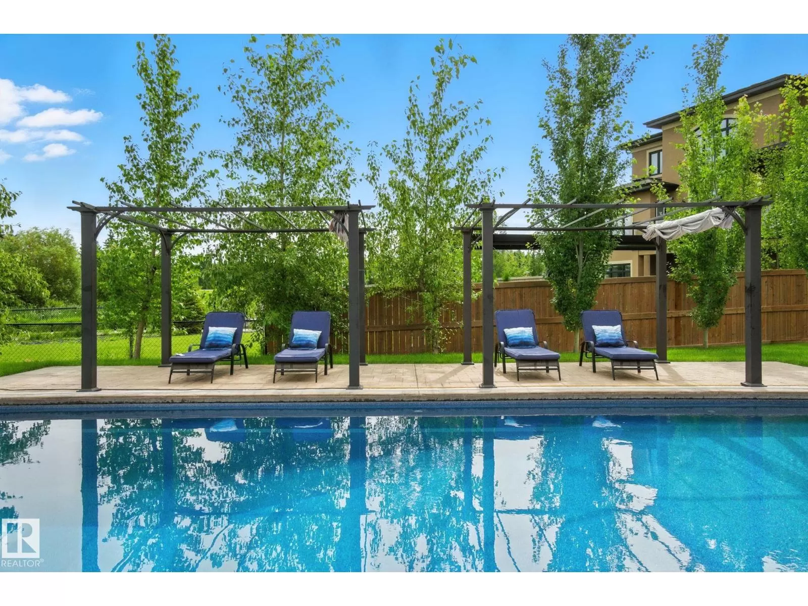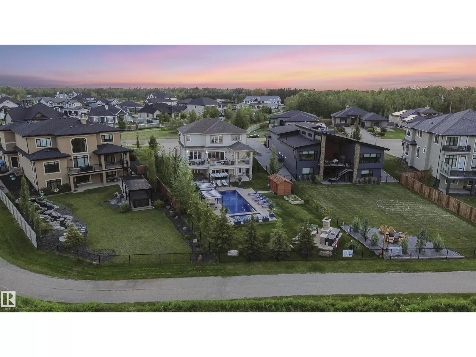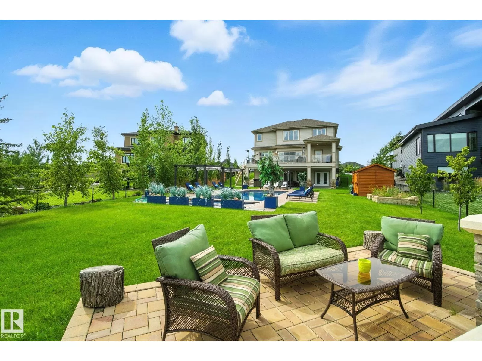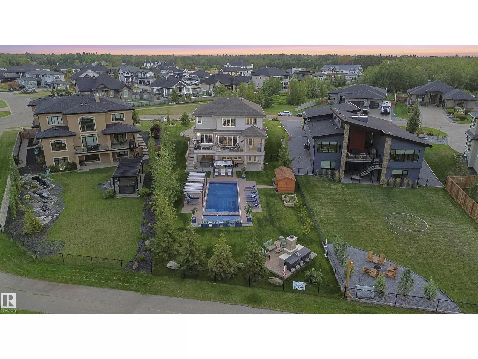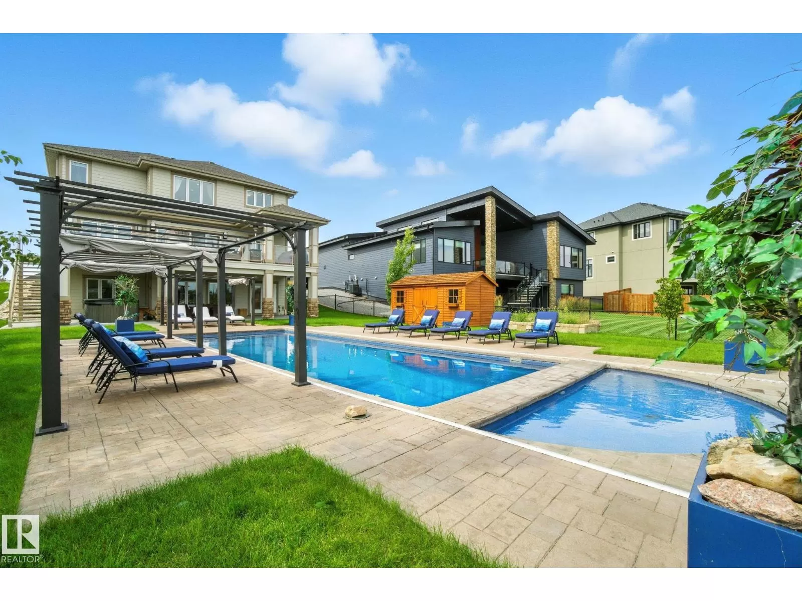 Live the Good Life in Meadowhawk! This executive property offers an absolutely spectacular backyard oasis with a glorious heated salt-water pool â your very own private resort!. Step inside the breathtaking grand entrance with bespoke features such as a stunning chandelier, open concept design with custom stonework, crown mouldings, hardwood floors. The opulent kitchen will be the envy of any chef! Boasting granite counters, elite appliances and an oversized walk-in pantry. The comfort continues as you discover the grand space of the upper levelâs flex room, convenient laundry room, Jack and Jill bedrooms, and the lavish primary retreat with a spa-like ensuite. The fully developed walk-out basement is flooded with an abundance of natural light, featuring 2 additional bedrooms, gym, dance studio, bar, & wine room. Enjoy lush greenery, and no rear neighboursâjust a tranquil pond. Don't miss out on this resort-style luxury living! Visit REALTOR® website for additional information. (id:27476)