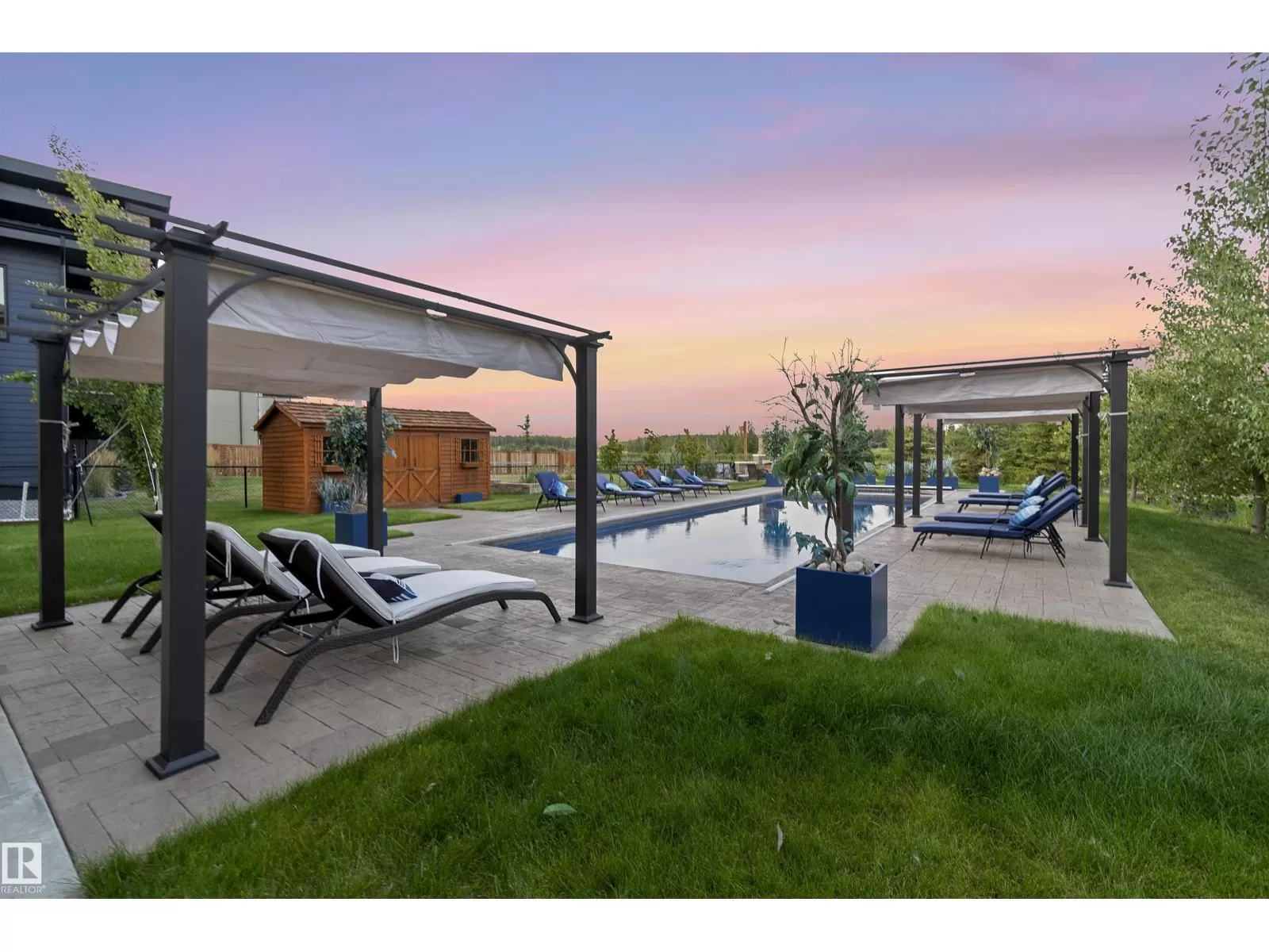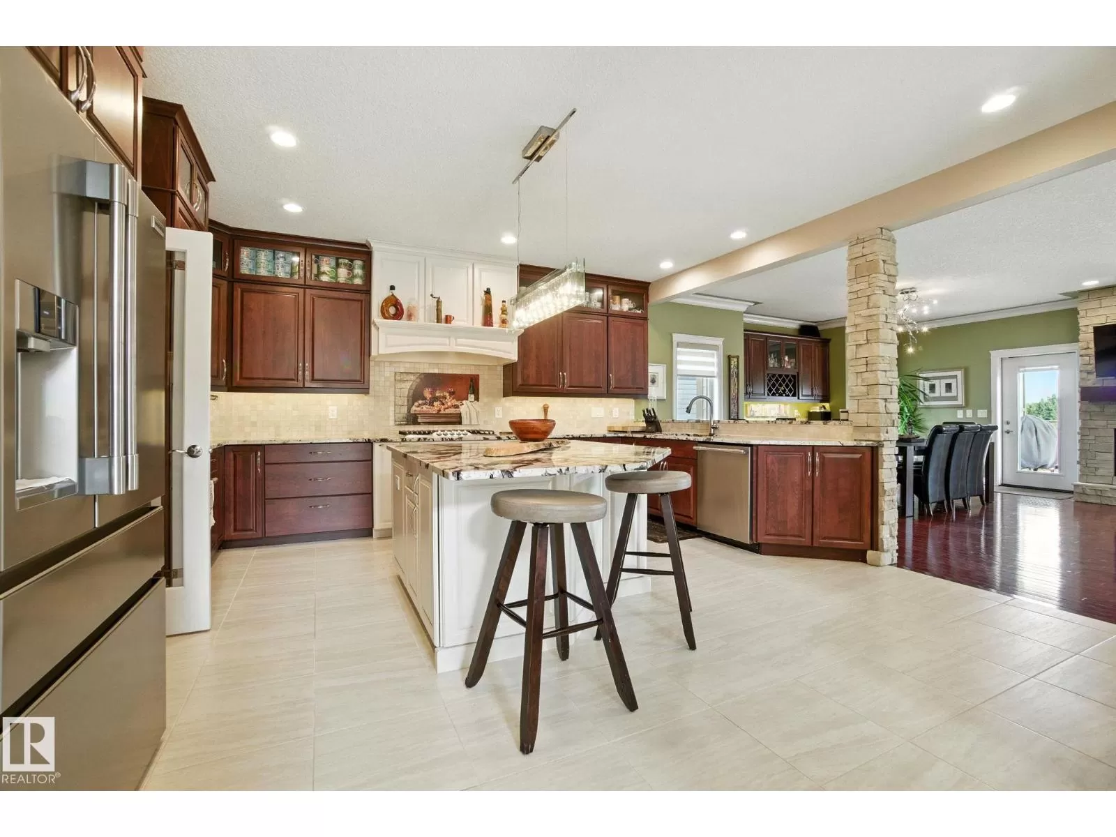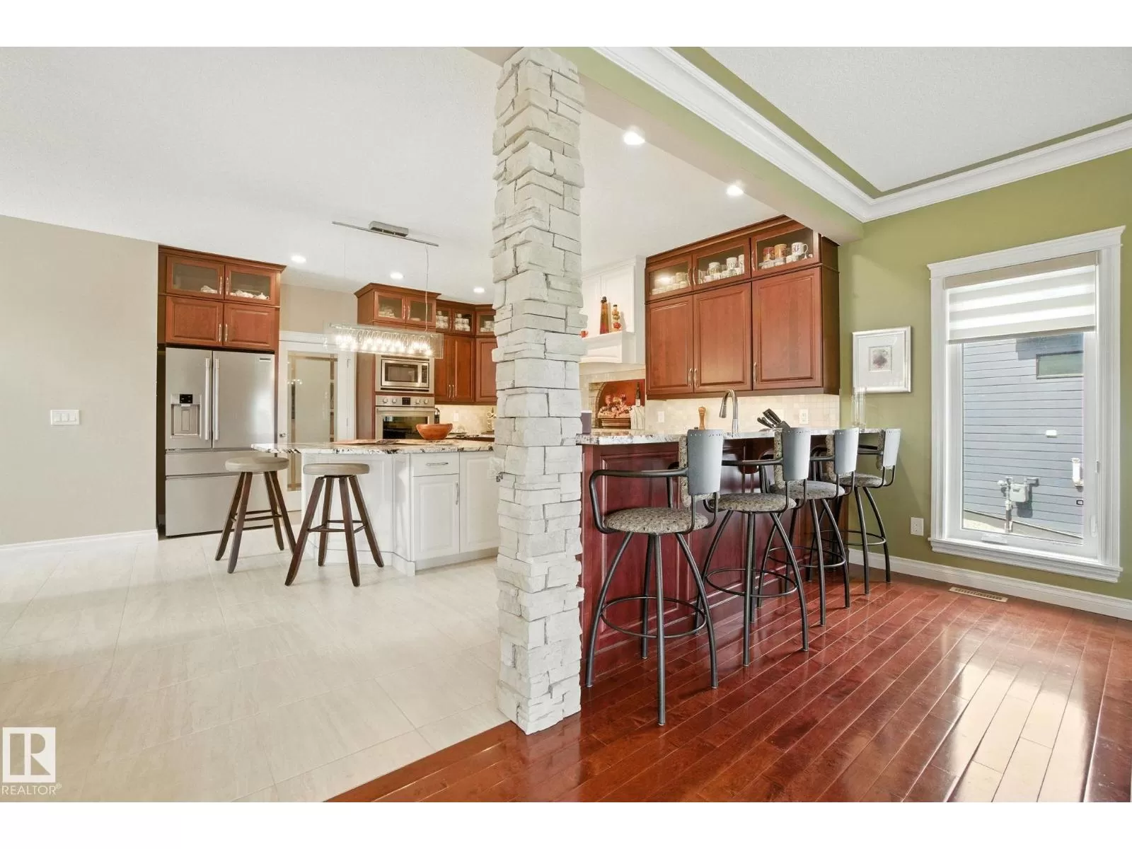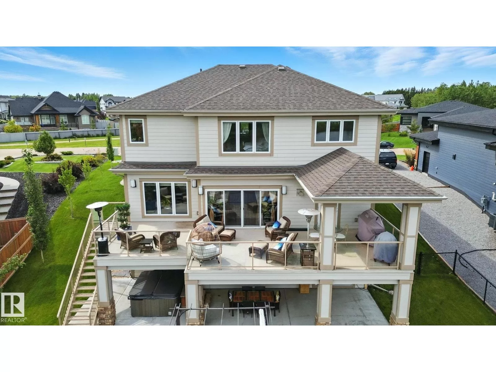 Live the Good Life in Meadowhawk! This executive property offers an absolutely spectacular backyard oasis with a glorious heated salt-water pool â your very own private resort!. Step inside the breathtaking grand entrance with bespoke features such as a stunning chandelier, open concept design with custom stonework, crown mouldings, hardwood floors. The opulent kitchen will be the envy of any chef! Boasting granite counters, elite appliances and an oversized walk-in pantry. The comfort continues as you discover the grand space of the upper levelâs flex room, convenient laundry room, Jack and Jill bedrooms, and the lavish primary retreat with a spa-like ensuite. The fully developed walk-out basement is flooded with an abundance of natural light, featuring 2 additional bedrooms, gym, dance studio, bar, & wine room. Enjoy lush greenery, and no rear neighboursâjust a tranquil pond. Don't miss out on this resort-style luxury living! Visit REALTOR® website for additional information. (id:27476)