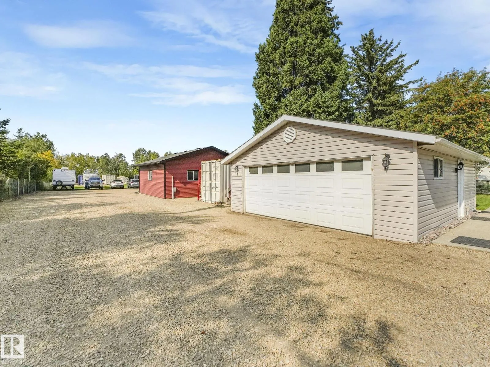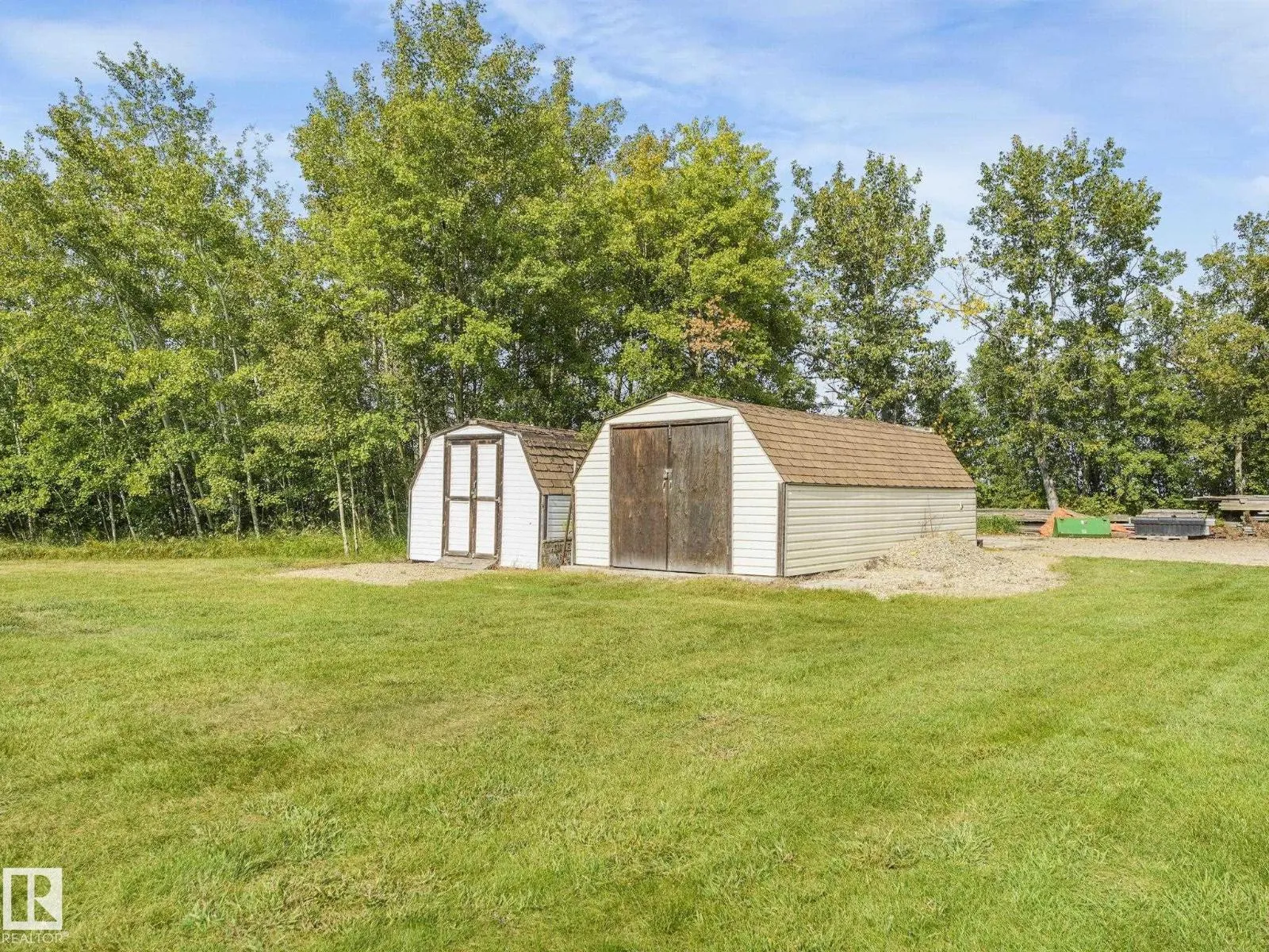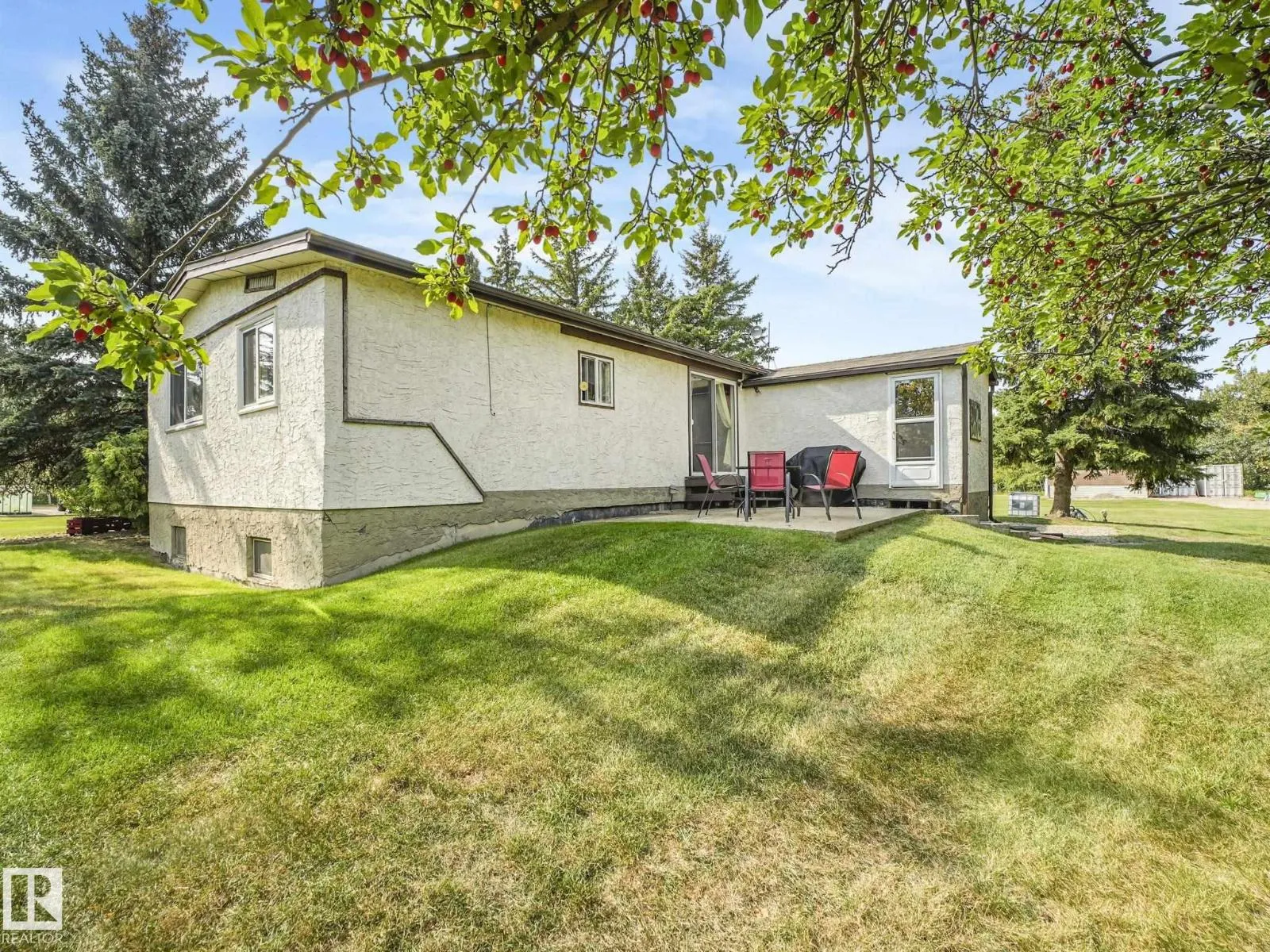 Welcome to this charming 3 acres not in a subdivision and full of OPPORTUNITY to start your own business in Strathcona County! This acreage boasts everything you have been looking for in your escape from the city! Fully fenced with a electronic security gate, a oversized heated double car garage 26'x24' w/ 240V, a oversized heated shop 28'x28' (2020) w/ 10' ceilings, 240V, and epoxy floors, 2 outbuildings for storage & animal shelter, a greenhouse, garden & fruit trees. The wood frame-modular-style bungalow home sits on a fully finished basement with 4 bedrooms, 2.5 bathrooms with an updated kitchen & some new high-end appliances, main floor laundry, large rec room & wet bar in basement and cold room, newer windows, new AC & furnace (2020). This property is supplied by CITY WATER and has a brand new 2500 gallon septic system (2018). Outside is a meticulously kept yard which has space for family gatherings, RV parking and a fire pit. Located 10 mins from Fort Sask or 25 mins from Sherwood Park! A must see! (id:27476)