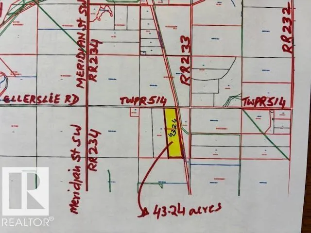 Fantastic opportunity to Own 43.24 acres on TWPR 514 (Elleslie ROAD going East), about a mile, East of ALCES & HILLS NEIGHBOURHOODS of City of Edmonton on ELLERSLIE ROAD between 50th Street & Meridian Street SW. BUILD your DREAM ACREAGE ESTATE just east of City of Edmonton, COUNTRY LIVING minutes from ALL AMENITIES, SHOPPING AREAS of 50th Street & ELLERSCIE ROAD and 23rd Ave & 17 Street NW. Paved access to city of Edmonton, SHERWOOD PARK and to ANTHONY HENDAY Via ELLERSLIE ROAD and to Hwy 14 & HWY 21 VIA TWPR 514 (id:27476)