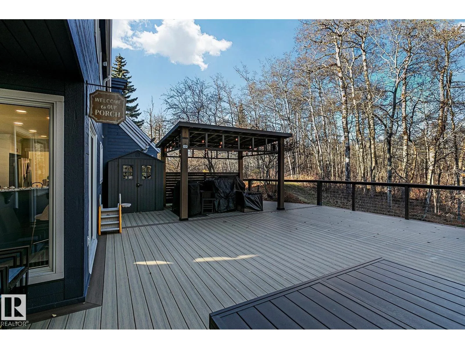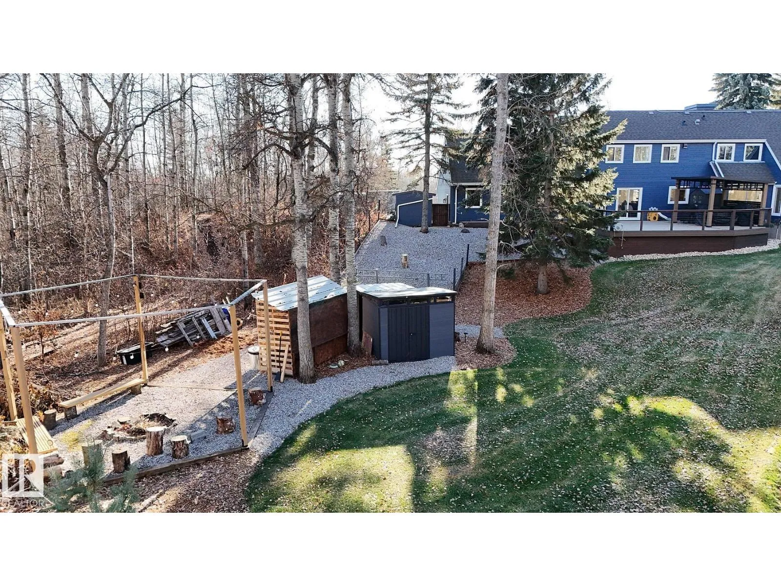 Don't let this opportunity get away from you. Nestled on 3.63 Acres in Winfield Heights just minutes from Sherwood Park & amongst many trees, this is too good to be true. Municipal Water & New Solar System! Imagine your family living its best life in this 3,115 SqFt 2-Storey w. 5 Bedrms; 3.5 Bath; Attached Triple Garage. Approx $400k Extensive, Recent UPGRADES where no expense was spared. This open & bright layout beams w. natural light thanks to the abundance of 53 Windows! (New '21 except 3). The Main floor boasts Open-to-below Living & Family Rms each w. a W/B Fireplace. A separate Dining Rm leads to the Gourmet Kitchen w. plenty of Cabinets & Granite Counterspace. Get ready to entertain here & on the gigantic Deck (New Composite; Gazebo BBQ Station). The Primary Bedrm has a gorgeous Ensuite (Standalone Tub; Tiled W/I Shower) & stairs to your own Loft! The Upper floor has 2 Bedrms; Main Bath; open Den & huge Bonus Rm. The Finished Bsmt has a Rec Rm; 2 Bedrms; Sitting Area & New Full Bathrm. Incredible! (id:27476)