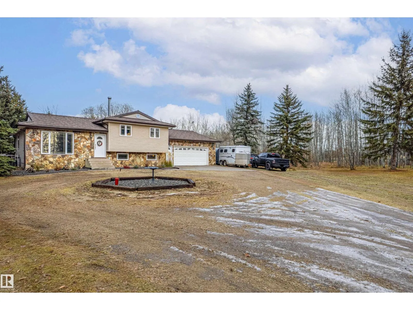 Beautiful 3.26 acre property in sought-after Beaver Valley Estates, offering peaceful acreage living close to Sherwood Park. This welcoming 4-level split features an updated kitchen, modern flooring, vinyl windows, and a bright, open layout with abundant natural light throughout. The main floor offers easy access to a tranquil deck off the dining area, perfect for relaxing and taking in the surroundings. Upstairs are 3 comfortable bedrooms and 1.5 bathrooms. The lower level has a nice fireplace, living room area and a 3 piece bathroom. The forth level would make a great family room. The land is a fantastic mix of mature trees & cleared space, ideal for animals, complete with fenced corrals and numerous outbuildings for storage or hobby use. An oversized attached double garage provides plenty of room for vehicles and toys. The property also features an Aerobic Treatment System for reliable septic performance. A wonderful opportunity to enjoy privacy, space, and convenience in a desirable subdivision. (id:27476)