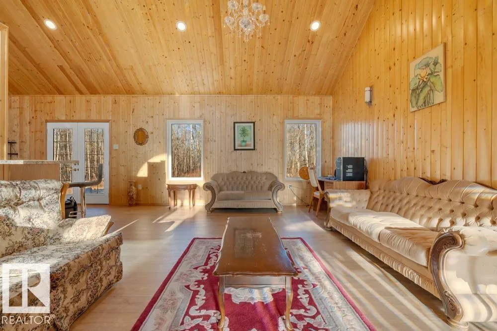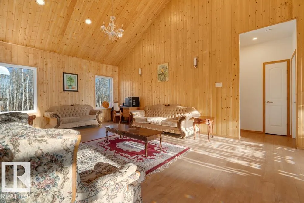 Discover 72 acres of peaceful PRIVACY with this beautifully crafted bungalow offering over 1,800 sq. ft. of OPEN-CONCEPT LIVING. Vaulted wood ceilings, abundant natural light, and cozy in-floor heating enhance comfort year-round. The main floor offers a spacious and inviting layout, featuring a generous PRIMARY SUITE with a good sized WIC and 5-PC ENSUITE, two additional bedrooms, a dedicated dining area, and main-floor laundry with direct access to the OVERSIZED HEATED DOUBLE GARAGE. The lower level has framing for future bedrooms, a large REC AREA, bathroom, and storageâideal for families or multi-generational needs. The land blends open field and treed areas, plus a solid 30x60 structure with a metal roof and hayloft, perfect for HORSES, EQUIPMENT, or repurposing. Nestled in a scenic and tranquil location near BLACKFOOT RECREATION AREA, STRATHCONA WILDERNESS CENTRE, and ELK ISLAND PROVINCIAL PARK, this home grants easy access to trails, cross country skiing, hiking, riding, and abundant wildlife. (id:27476)