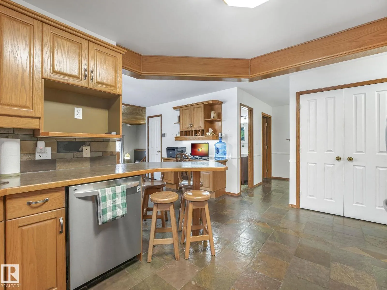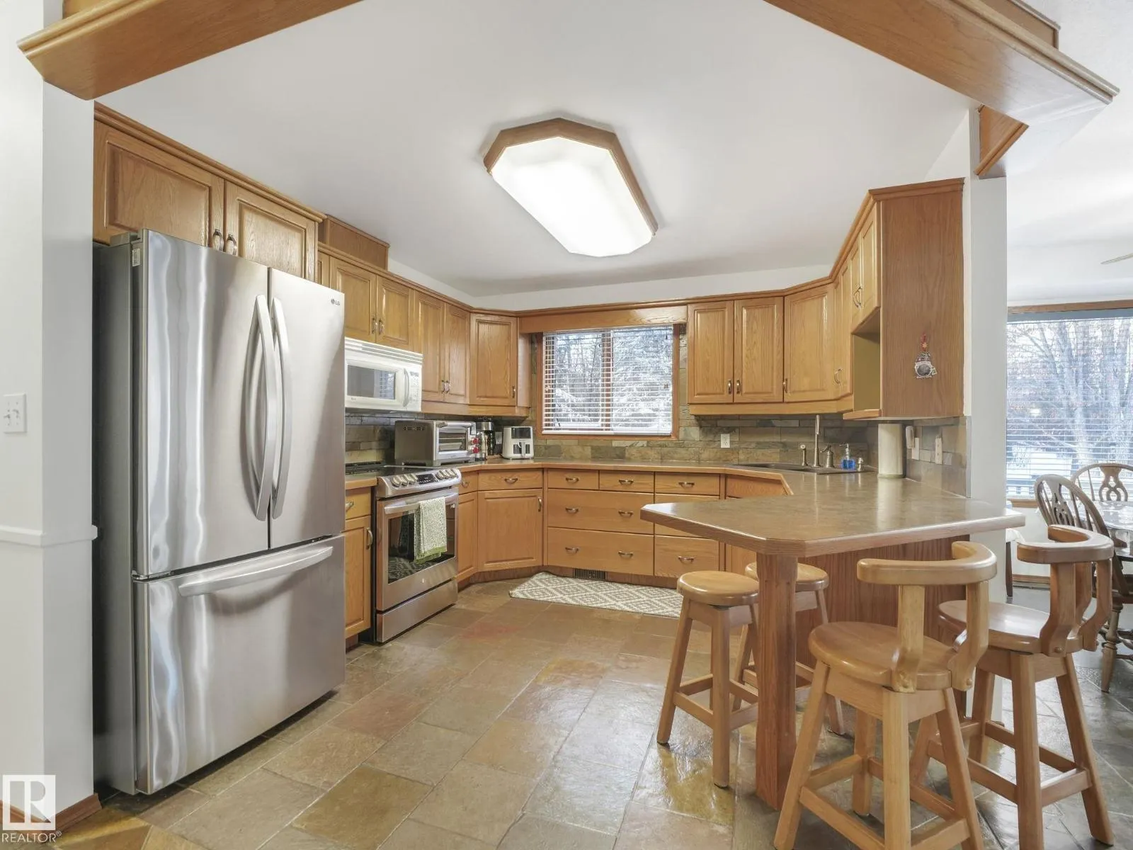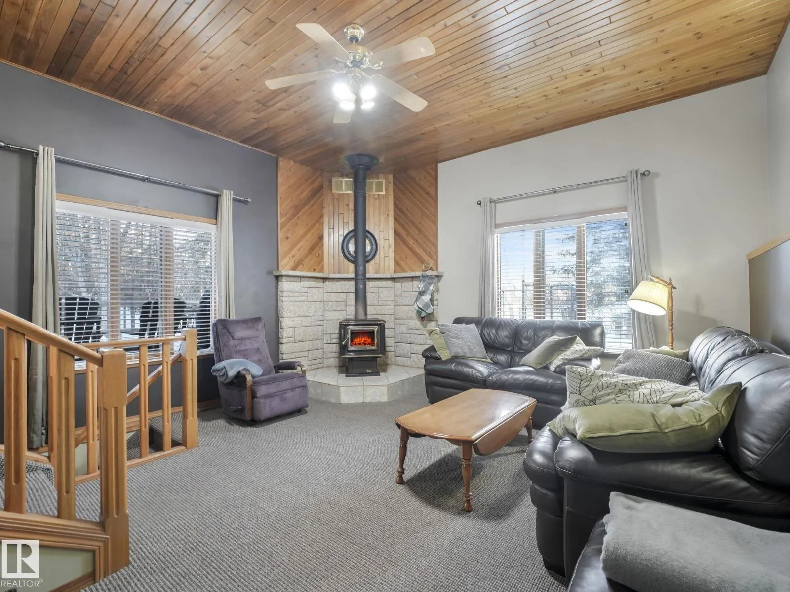 Private, treed acreage living just minutes from Sherwood Park and Edmonton, set on a secluded 3.13-acre lot with an environmental reserve directly behind, offering year-round enjoyment with wildlife on the pond in summer and skating in winter. This 1774 sq ft walkout bungalow features hardwood and slate flooring, oak cabinetry, stainless steel appliances, a sunken living room with a cozy wood stove, and an absolutely huge wrap-around deck ideal for entertaining or quiet evenings. The main floor offers 1 bedroom, while the fully developed walkout basement includes a separate entrance, 3 additional bedrooms, and flexible space suitable for a future suite or home-based business. Garage space is exceptional with a massive (30x30) heated double attached garage featuring epoxy flooring and built-in cabinets, plus a 12x20 detached garage for lawn equipment and toys, all complemented by a paved circular driveway that adds convenience and great curb appeal. (id:27476)