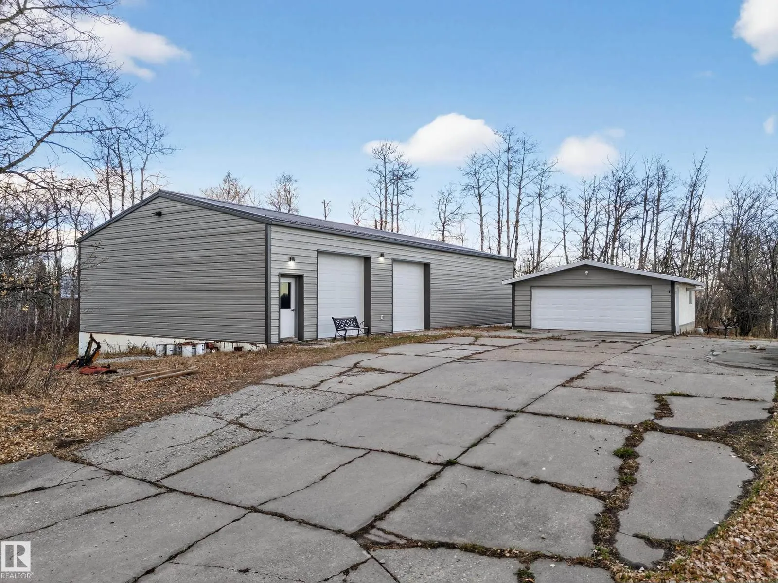 Looking for a big shop perfect for tire storage, warehouse use, cabinet storage, or multiple business needs. Open layout, easy access and flexible space & acreage lifestyle on this private 6.3 acre property, just 3 km east of Sherwood Park with quick access to Whitemud Extension and Highway 21. This 1,634 sq. ft. bungalow offers 4 bedrooms on the main floor and 6 bedrooms total, ideal for a growing family or hosting guests. Hardwood flooring flows throughout, complemented by an elegant dining area, a remodelled kitchen with tile flooring, and a 4-piece bath. The fully developed basement includes 2 additional bedrooms, a 3-piece bath, a spacious flex area for a home office, plus mechanical upgrades including two furnaces and a newer hot water tank. A standout feature is the oversized heated double garage and the 2,180 sq. ft. Ample parking and storage space make this property truly exceptional. Surrounded by rolling land, mature trees, and privacy, this acreage shows true pride of ownership. (id:27476)