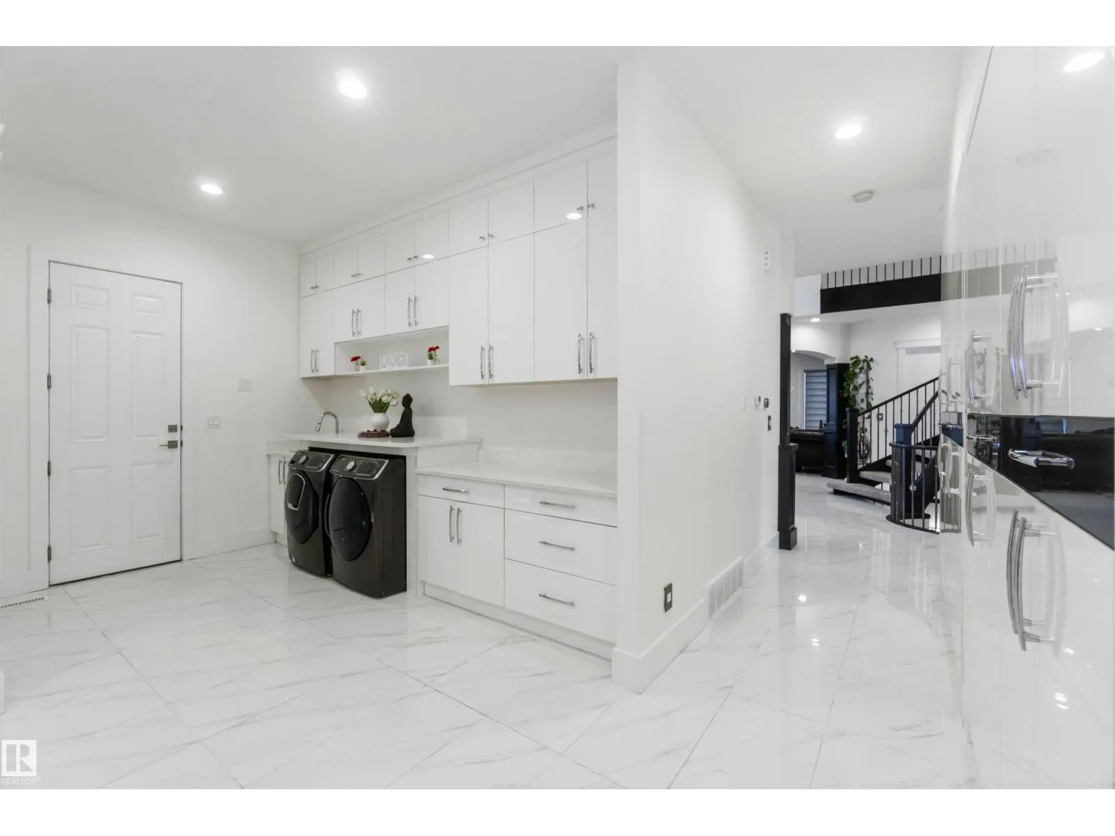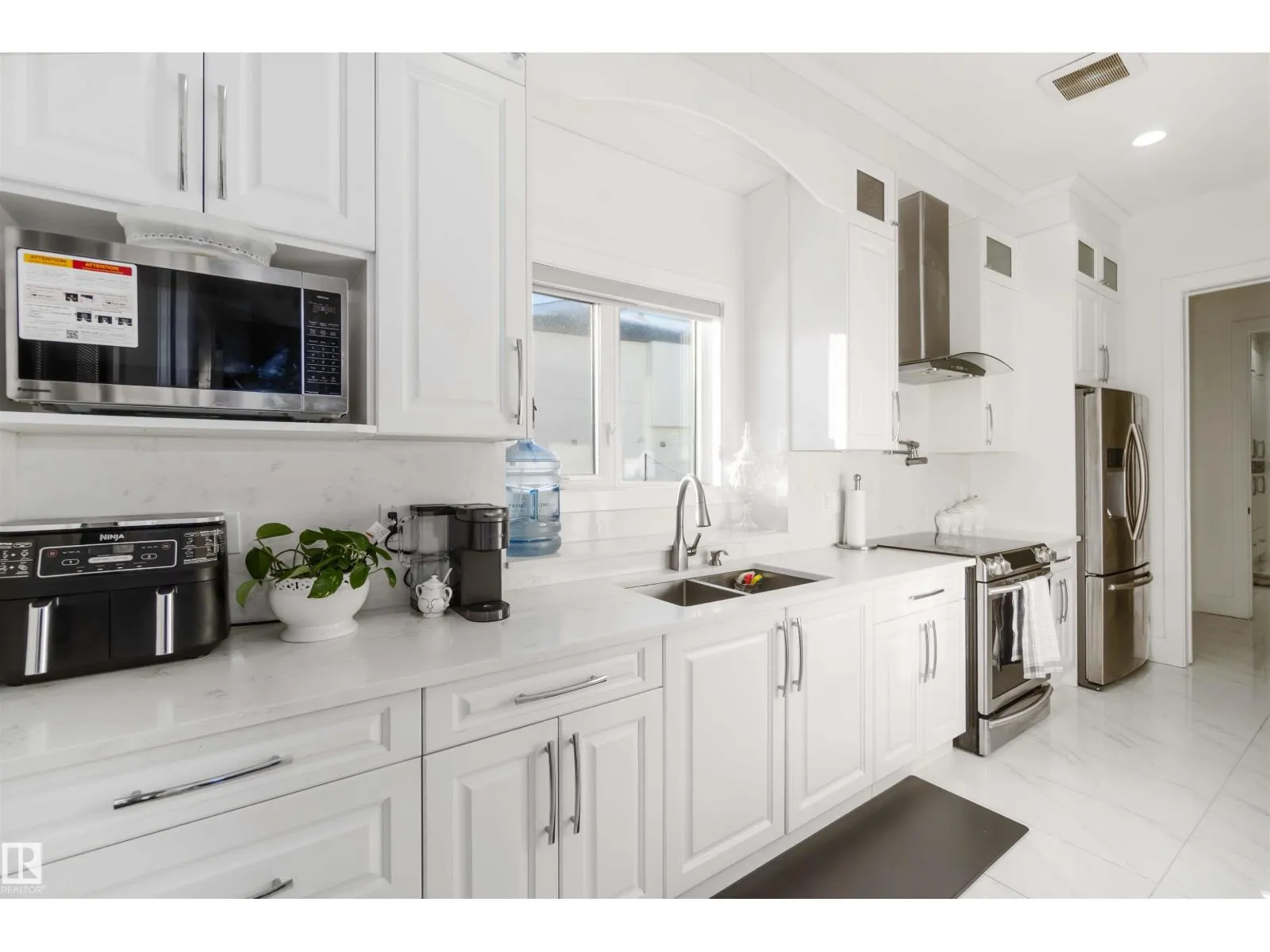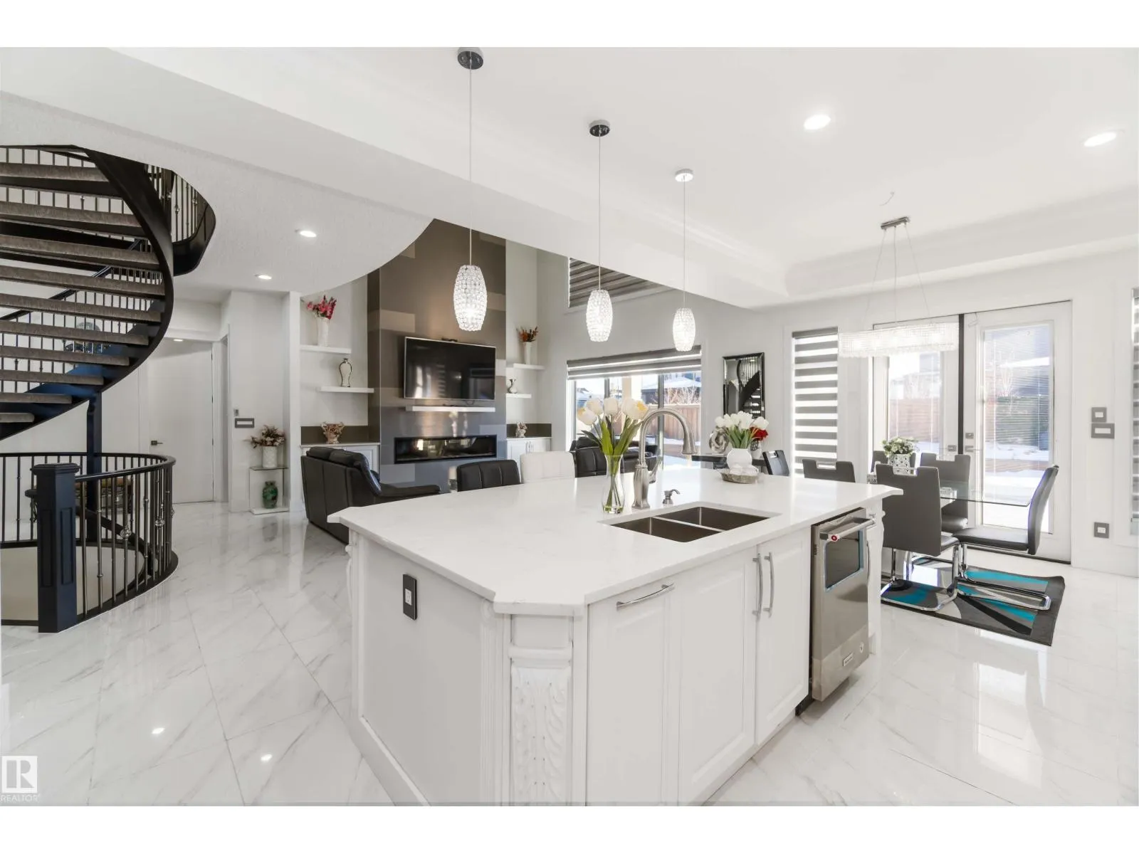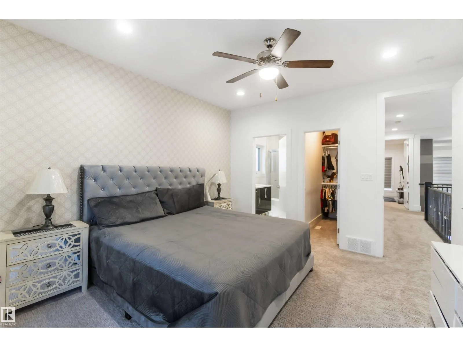 Set on an impressive lot with an expansive 80x35 ft driveway, this custom-built luxury home offers over 6,700 sq ft of total living space. Designed to impress, it features 7 bedrooms, central A/C, a spice kitchen, and a rare quad garage. The grand foyer opens to an elegant formal living area and flows into the family room showcasing soaring 20-foot ceilings, a striking fireplace set within a custom feature wall, and ceramic tile flooring. The chef-inspired kitchen includes a large island, double-wide refrigerator, and a fully equipped spice kitchen. The main floor is complete with a private office and a bedroom with ensuiteâideal for guests or multi-generational living. Upstairs offers four spacious bedrooms, each with its own ensuite, including three with balconies and a luxurious primary retreat. The fully finished basement adds two more bedrooms (one with ensuite), a home theatre, wet bar with entertainment space, and a private home gym. A home built for luxury living and entertaining. (id:27476)