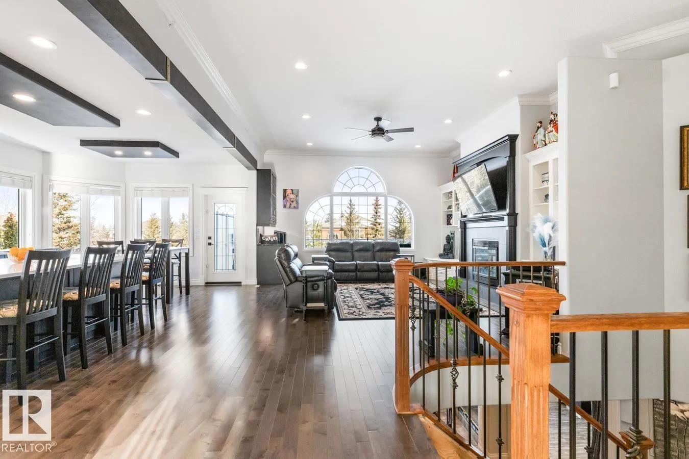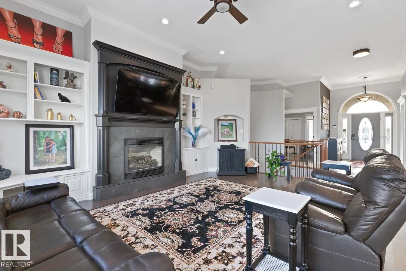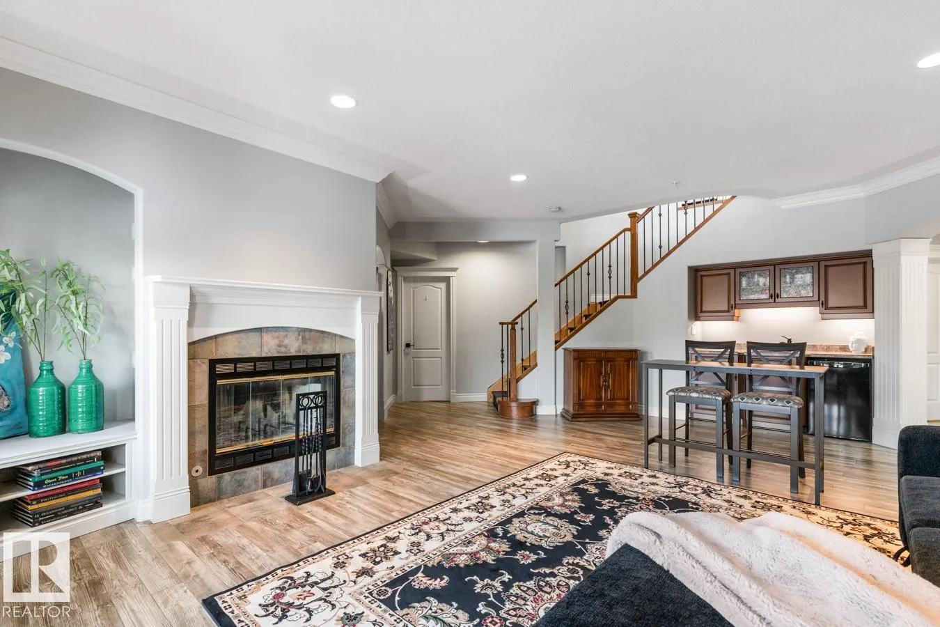 This elegant WALKOUT BUNGALOW is a true showstopper! Beautifully upgraded & ideally located next to a quiet park, this executive home offers 5 bedrooms, 3 baths, a 30x34.5 heated tandem garage, & RV parking. A grand, light-filled entrance with soaring ceilings welcomes you inside. The impressive chefâs kitchen features abundant cabinetry, coffee station, 6-burner dual-fuel range, hot & cold filtered tap with reverse osmosis, & a quartz island overlooking the dining area & living room with cozy fireplace. The king-sized primary suite includes a walk-in closet, ensuite, & private patio access. A flex space, 2nd bdrm, 4pc bath, & laundry complete the main level. The fully finished walkout basement is ideal for entertaining with rec room, wood-burning fireplace, wet bar, & access to the 36x22 stamped concrete patio. 3 additional large bedrooms all with walk-in closets, 3pc bath, & den complete the home. Enjoy the private, beautifully landscaped yard with bubbling fountain & maintenance free deck. (id:27476)