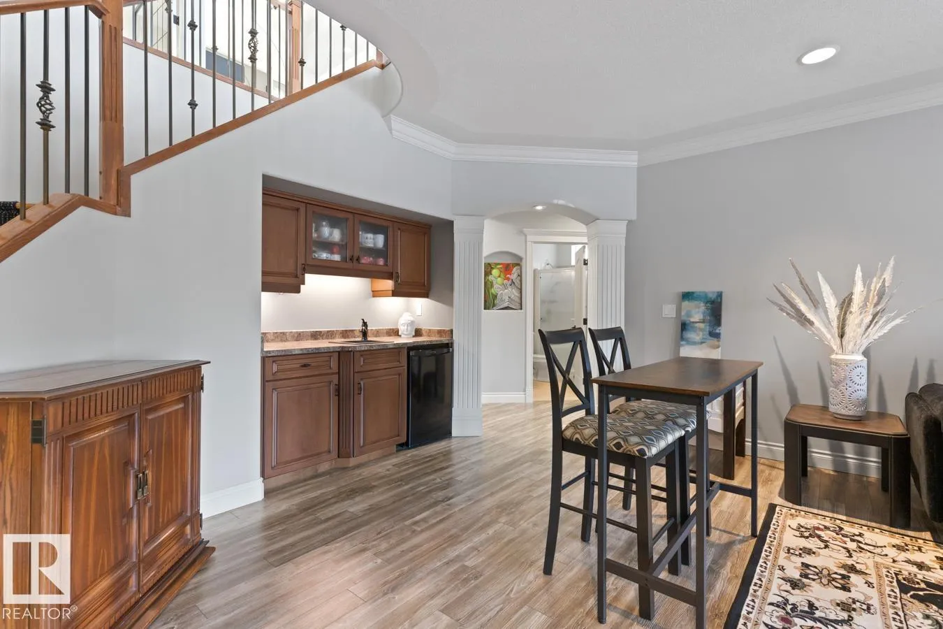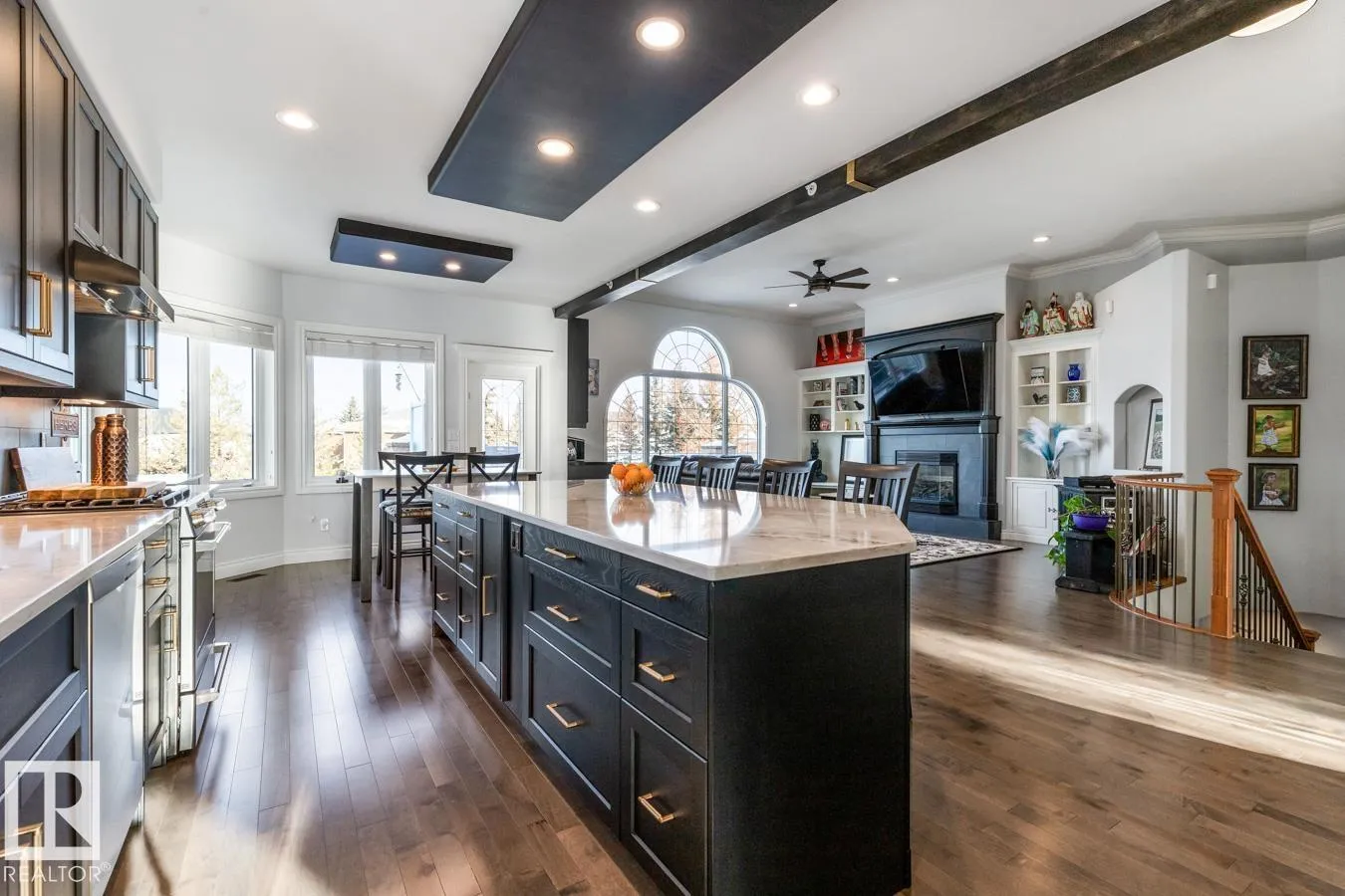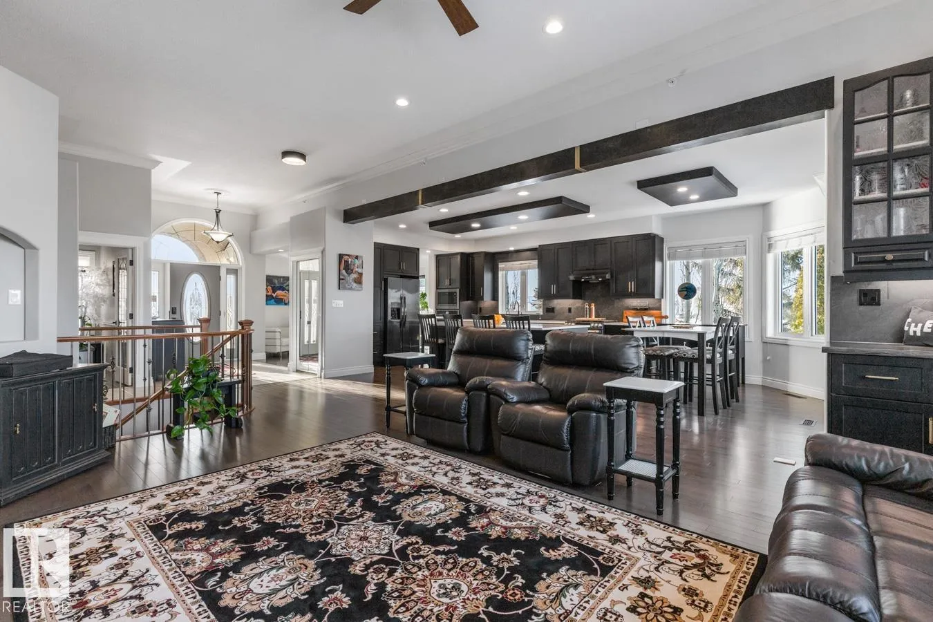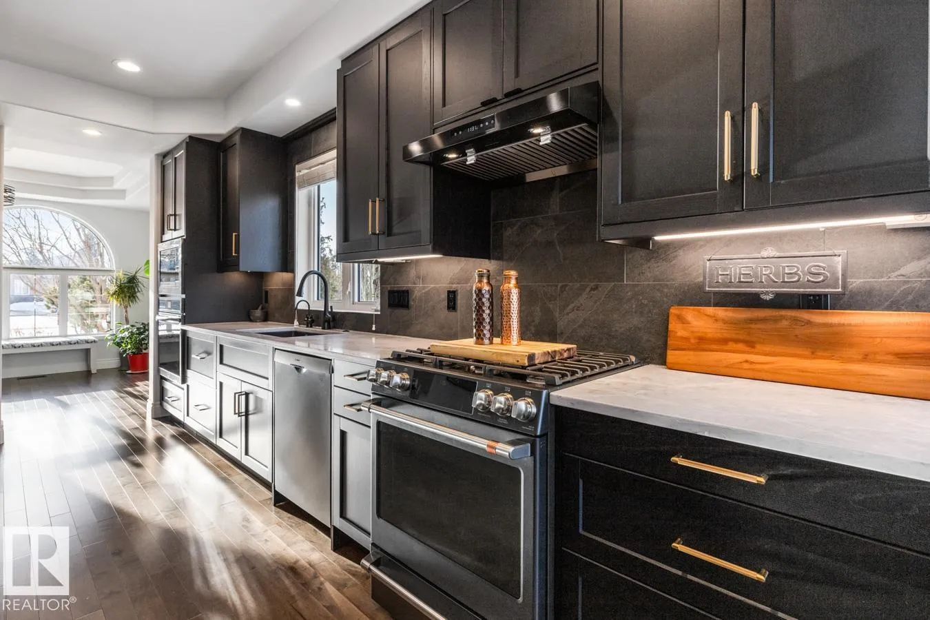 This elegant WALKOUT BUNGALOW is a true showstopper! Beautifully upgraded & ideally located next to a quiet park, this executive home offers 5 bedrooms, 3 baths, a 30x34.5 heated tandem garage, & RV parking. A grand, light-filled entrance with soaring ceilings welcomes you inside. The impressive chefâs kitchen features abundant cabinetry, coffee station, 6-burner dual-fuel range, hot & cold filtered tap with reverse osmosis, & a quartz island overlooking the dining area & living room with cozy fireplace. The king-sized primary suite includes a walk-in closet, ensuite, & private patio access. A flex space, 2nd bdrm, 4pc bath, & laundry complete the main level. The fully finished walkout basement is ideal for entertaining with rec room, wood-burning fireplace, wet bar, & access to the 36x22 stamped concrete patio. 3 additional large bedrooms all with walk-in closets, 3pc bath, & den complete the home. Enjoy the private, beautifully landscaped yard with bubbling fountain & maintenance free deck. (id:27476)