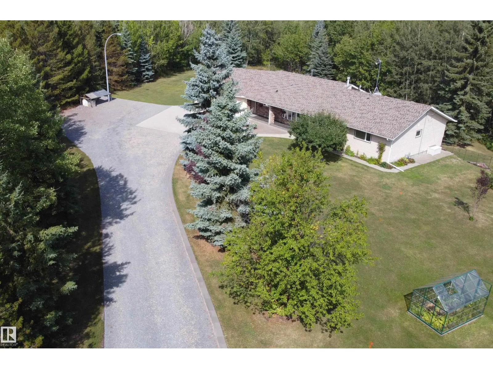 PICTURESQUE 40 ACRES! MASSIVE NEW SHOP 40FT X 60 FT WITH DRIVE-THROUGH BAY, PLUS NEW 40 FT X 80FT QUONSET! An amazing opportunity only 15 minutes from Sherwood Park! Ranch-Style WALKOUT Bungalow offering 2300 square feet plus a partially finished basement. Open floor plan with vaulted ceilings & cherry hardwood floors. Renovated white kitchen with stainless steel appliances plus a generous dining area. Very spacious & bright family room with a corner wood burning fireplace. Walk out to the huge deck and enjoy the amazing views! Large dining or flex area, 4 large bedrooms, main floor laundry and back mudroom with access to the attached OVERSIZED GARAGE. Partially developed basement is ready for the final touches. Lovely patio area. Amazing landscaping including a fire pit built into the hill, garden area with water & a greenhouse plus 3 storage sheds. Beautiful trails throughout the treed areas and a pond with 3 yard lights for winter skating. GST may be applicable. Don't miss this amazing opportunity!!! (id:27476)