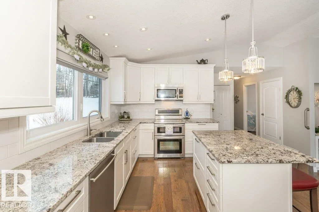 CITY WATER FEATURED WITH THIS ABSOLUTELY STUNNING, TOTALLY UPDATED BUNGALOW LOCATED IN A PRIVATE 5 ACRE SETTING WITH GREAT ACCESS TO HWY 16, FORT SASKATCHEWAN, SHERWOOD PARK AND EDMONTON. THERE HAS BEEN NOTHING INSIDE AND OUT THAT HASN'T BEEN REPLACED OR UPGRADED INCLUDING KITCHEN, FLOORING, LIGHTING, DOORS, TRIM, BATHROOMS, PLUMBING, FIREPLACES, PAINT, INSULATION, FURNACE, SIDING, & DECKS. THE GARAGE COMES WITH A NEWER CONCRETE FLOOR, NEWER INSULATION AND DRYWALL, NEWER FURNACE, AND A CONCRETE PAD IN FRONT. A VERY BRIGHT AND SUNNY HOME WITH LOTS OF WINDOWS, LIGHTING, AND A BEAUTIFUL VIEW OF THE VERY PRIVATE SOUTH FACING BACK YARD. AN EXCEPTIONAL HOME. (id:27476)