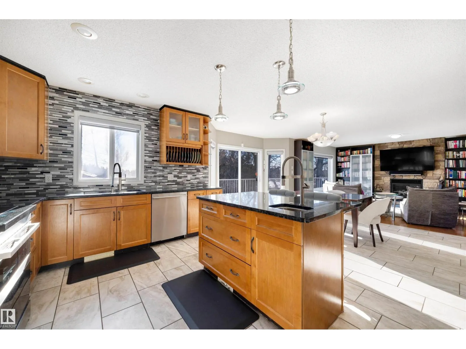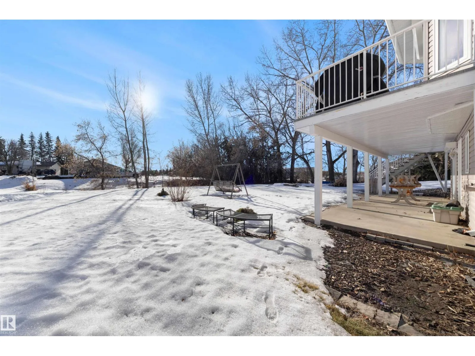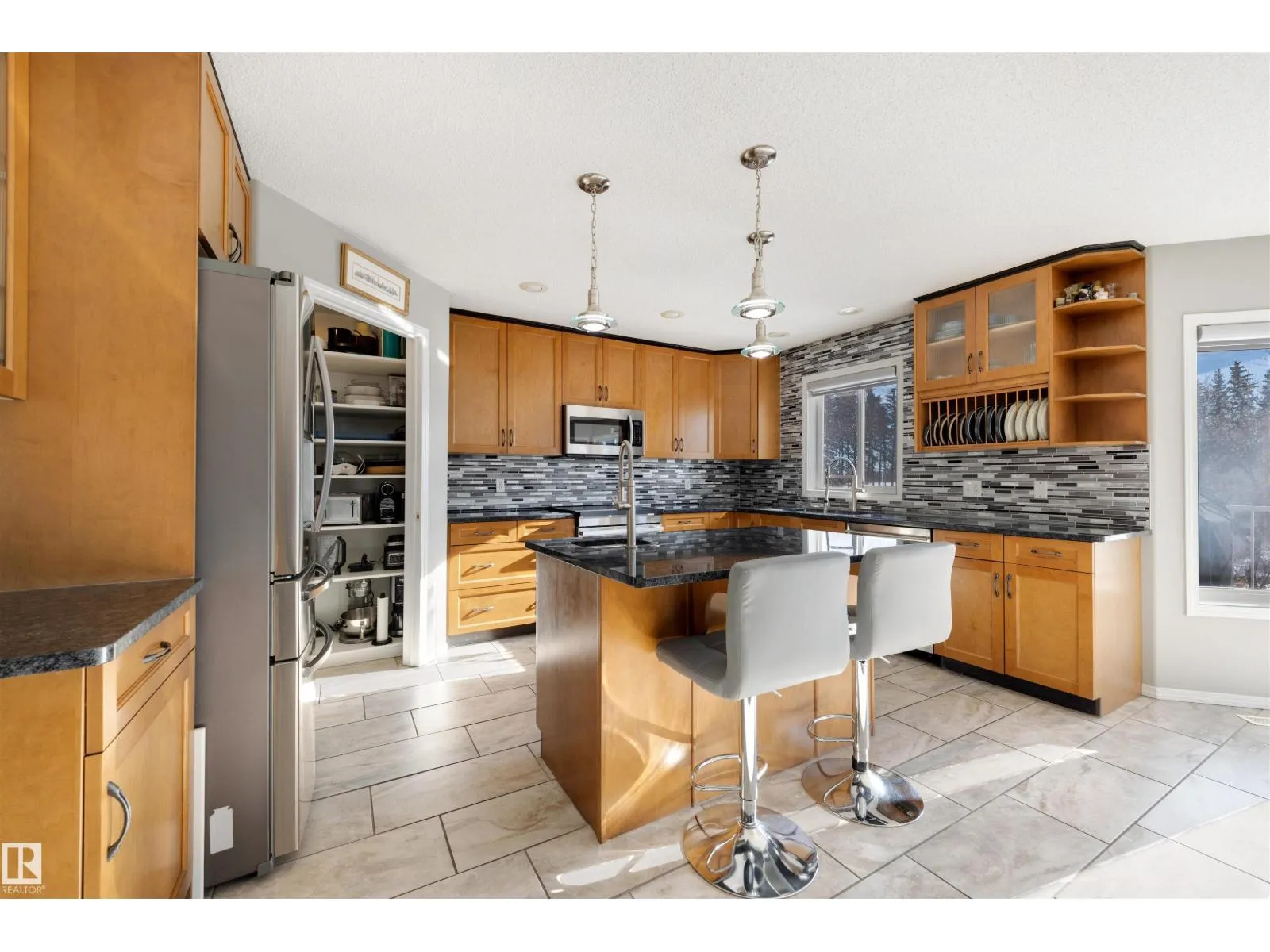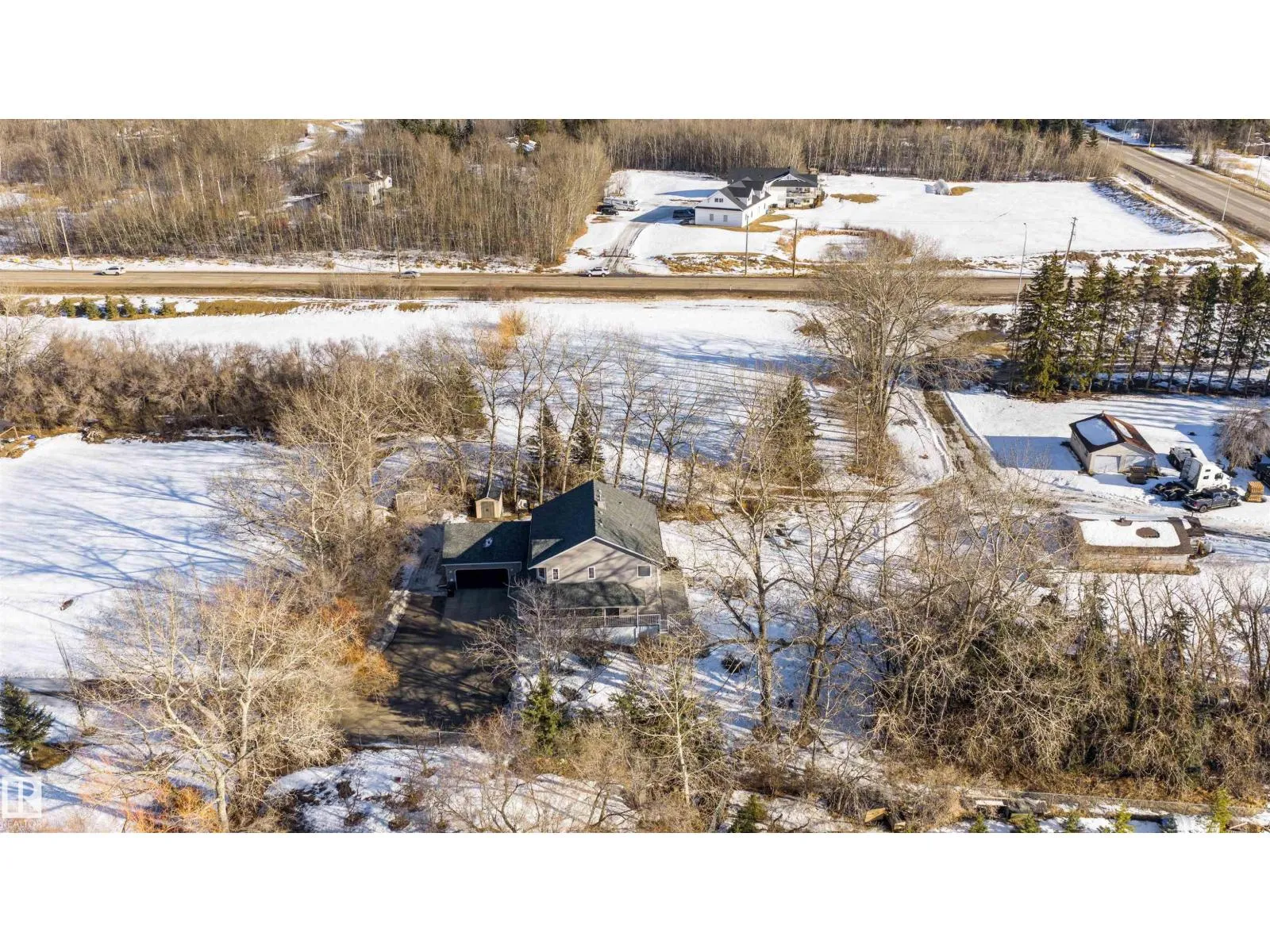 Tucked away at the end of a private tree-lined driveway, this exceptional two-storey walkout residence offers nearly two acres of serene estate living on the doorstep of Sherwood Park. This rare balance of privacy and proximity evokes a sense of quiet luxury from the moment you arrive. Expansive windows frame picturesque views of the surrounding landscape, filling the home with natural light and creating a seamless connection to nature. The main floor features an open concept design combining functionality with modern appeal. Step out your patio doors onto a recently refinished wraparound deck. This level features a massive walk-through mudroom/pantry and a spacious front office area. Upstairs, the primary features a spa inspired ensuite. Dual vanities, beautifully tiled shower and large soaker tub. The two kids' bedrooms share a jack/jill bathroom. The walkout basement extends the living space outdoors, ideal for elegant entertaining or tranquil evenings beneath open skies. Acreage living like no other. (id:27476)