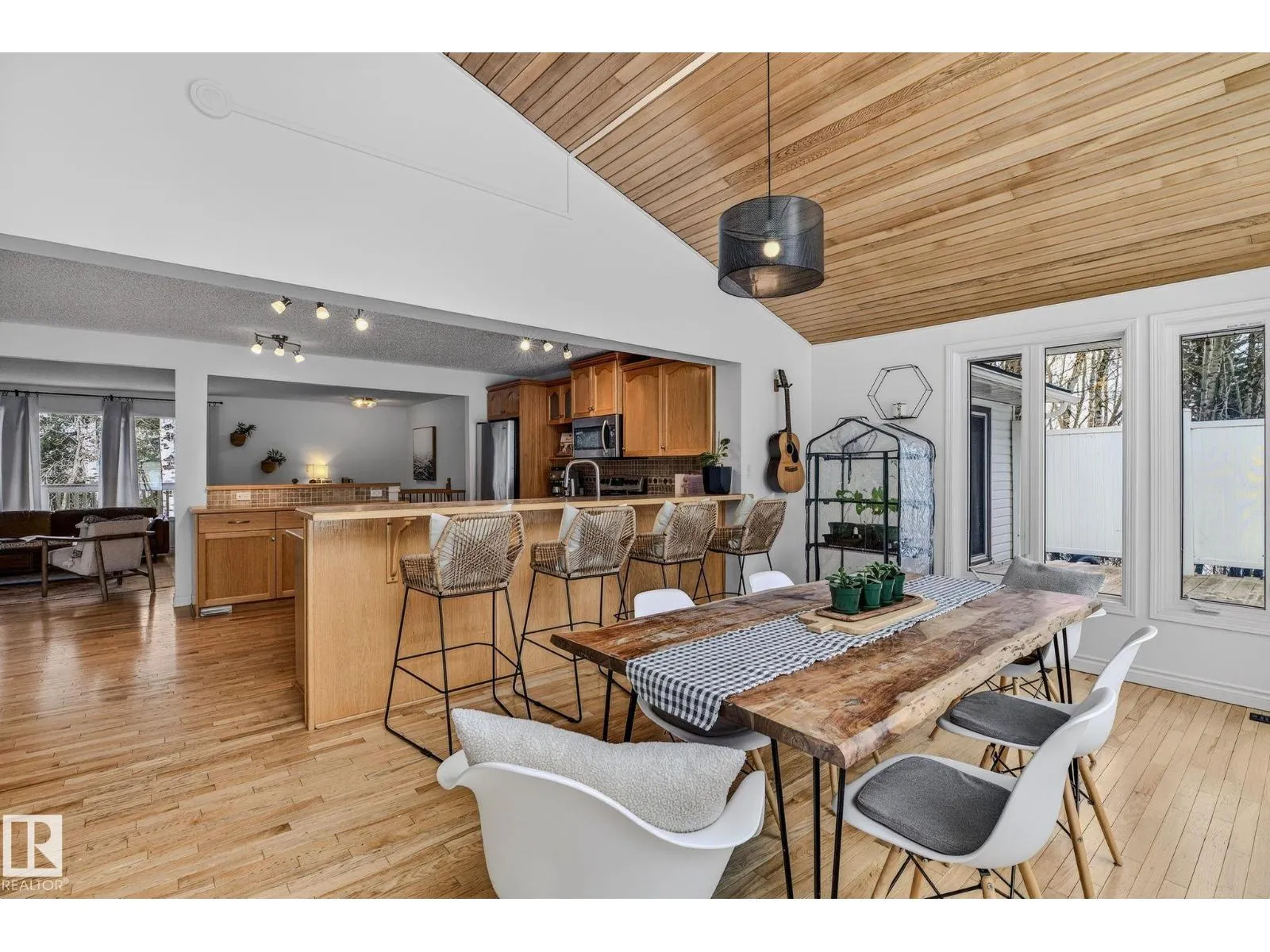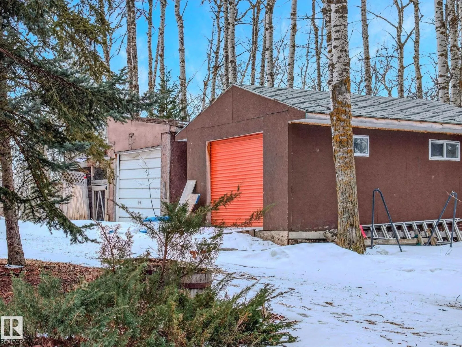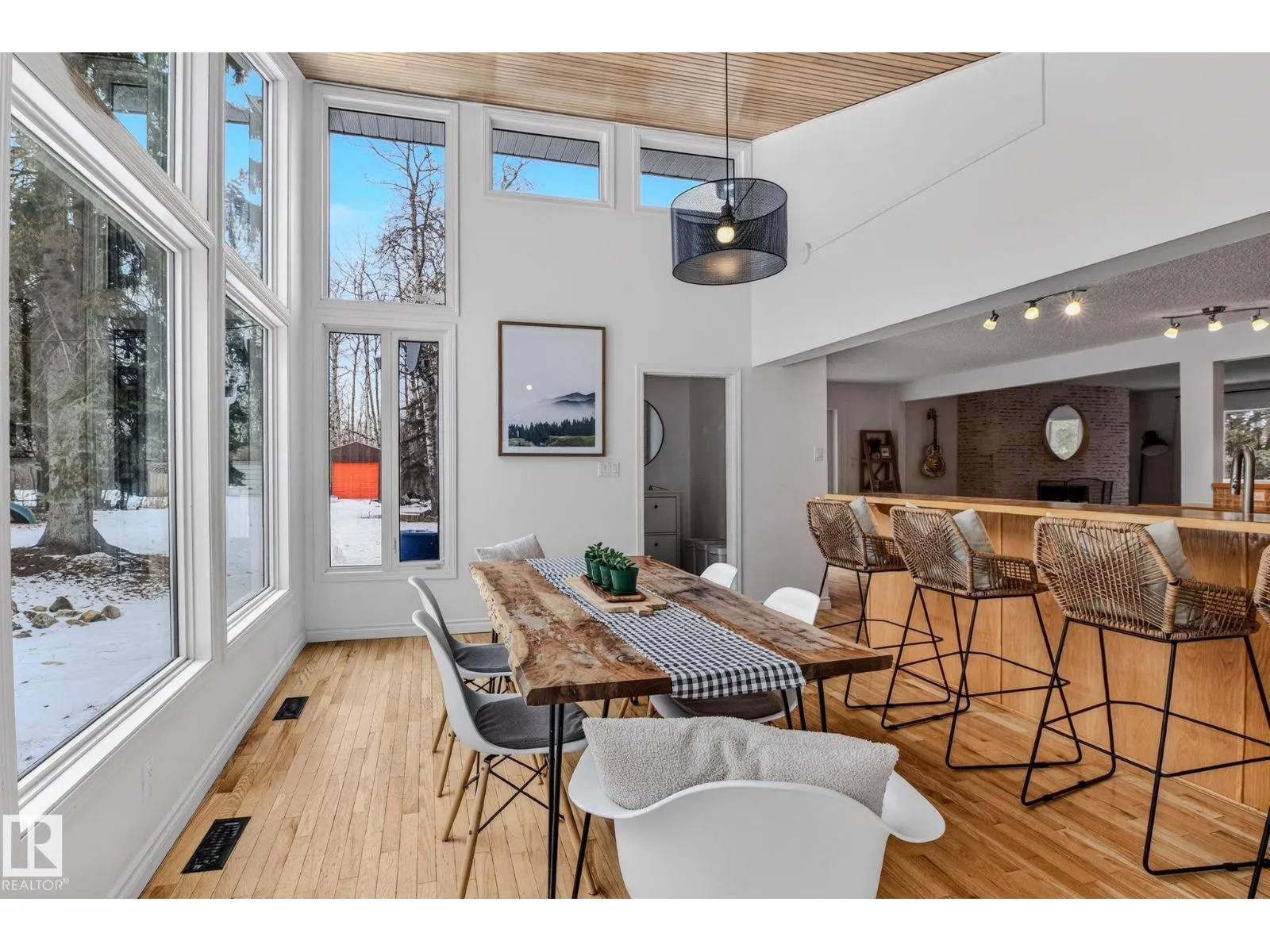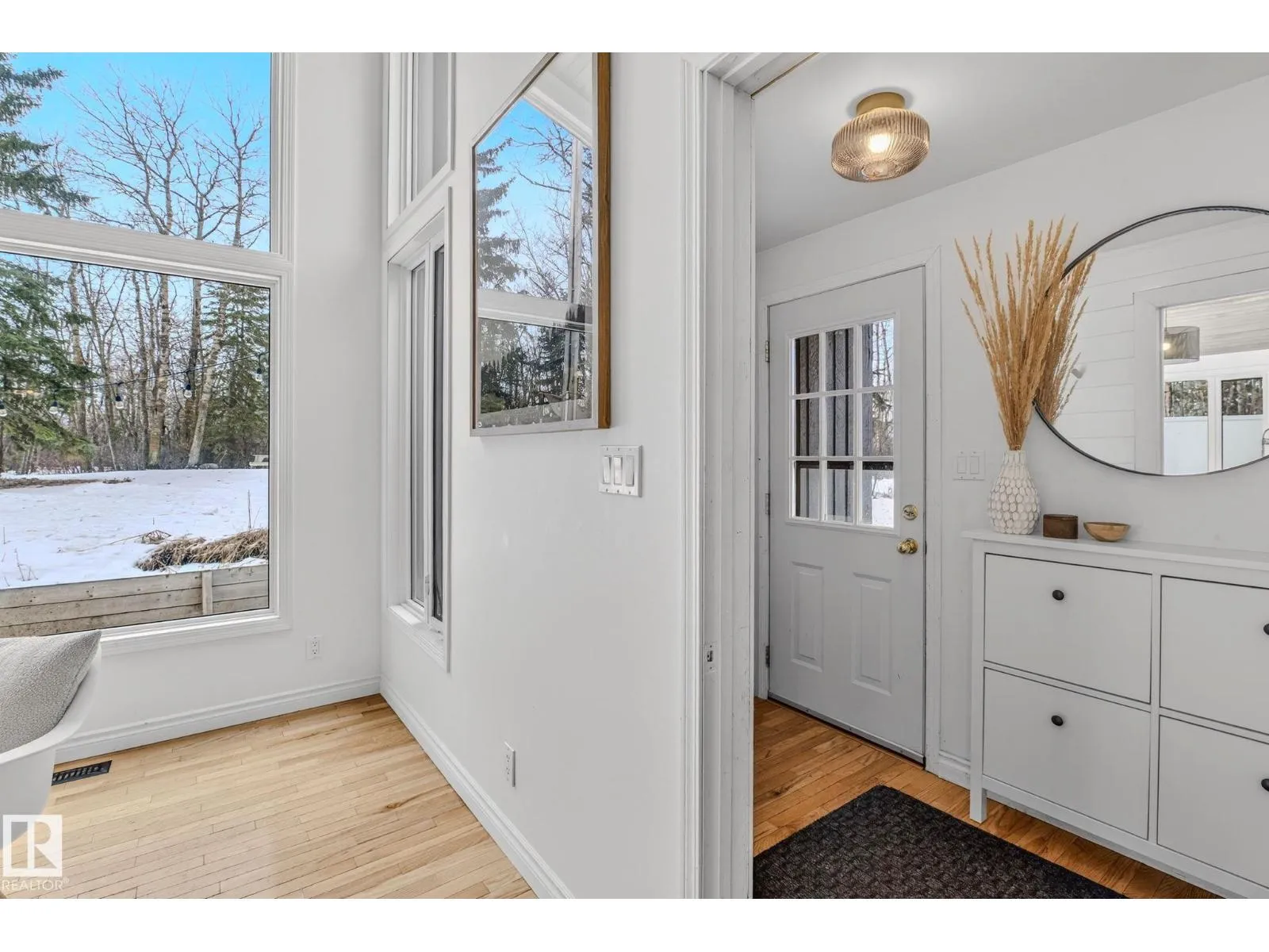 Escape the city to this beautiful 3 acre property, located just minutes from Sherwood Park. This beautiful walkout bungalow offers serene country living with quick access to the city and major highways. Inside, the home features a warm and inviting kitchen with classic oak cabinetry, stainless steel appliances, and a bright dining area highlighted by floor to ceiling windows. The main floor includes a spacious primary bedroom with an ensuite and direct access to a private patio- your quiet retreat. Two additional bedrooms and well appointed 3 piece bathroom complete the main level. The wrap-around deck is complete with natural gas hookup--perfect for outdoor entertaining. The fully finished walkout basement provides even more living space, featuring a cozy brick faced wood burning fireplace, an additional bedroom, bathroom and laundry room. Step out to your oversized heated double garage equipped with 220 volt power. Don't miss this rare opportunity as this property is PRICED TO SELL (id:27476)