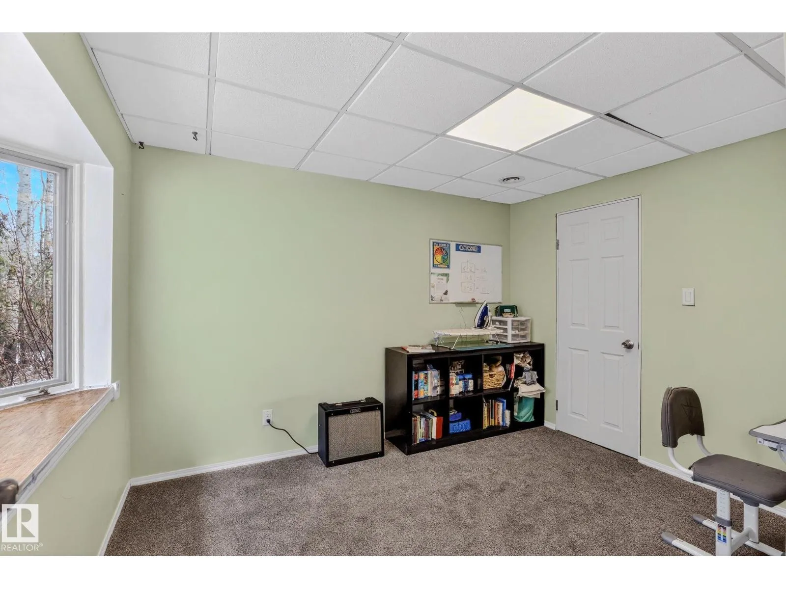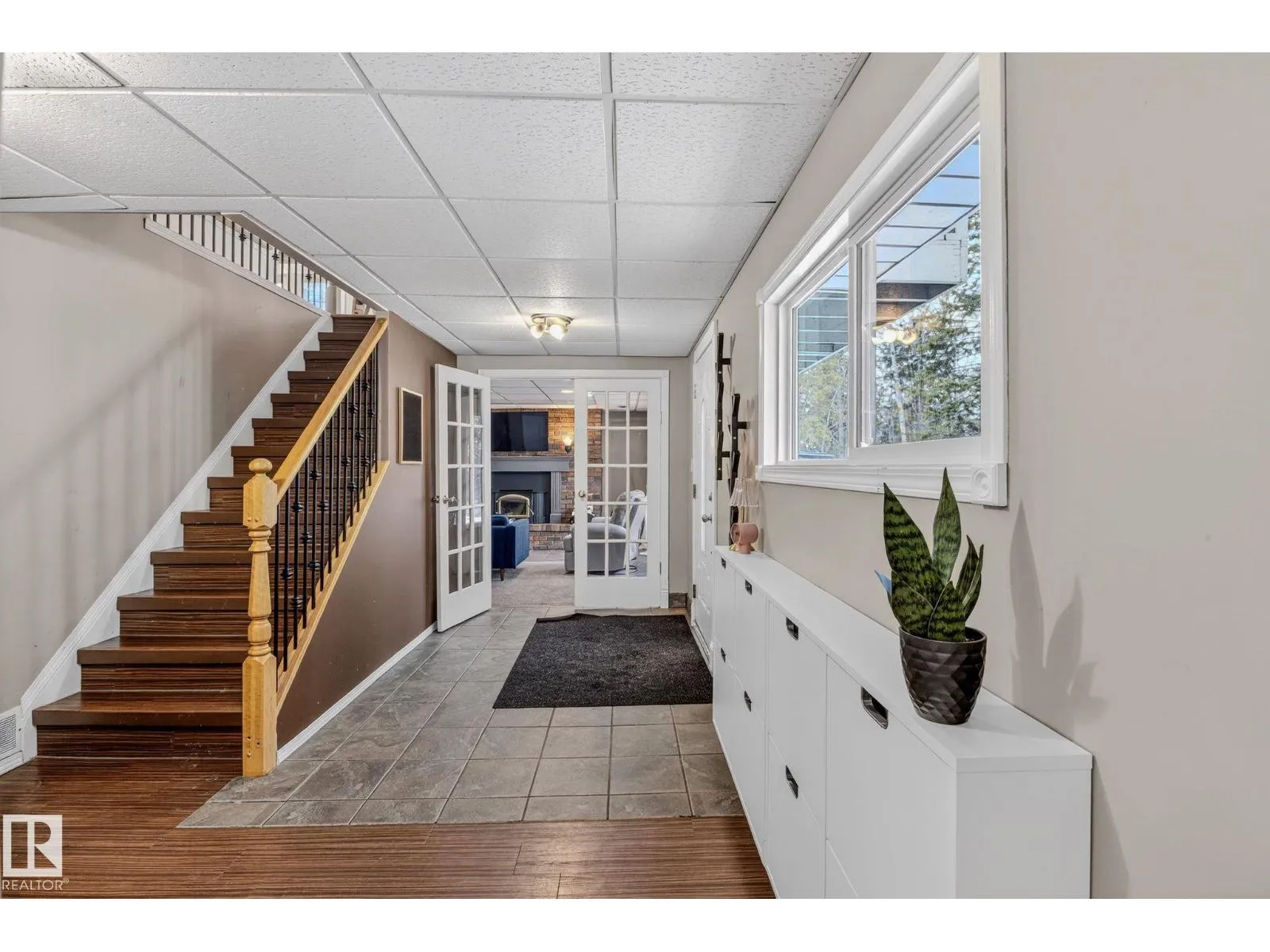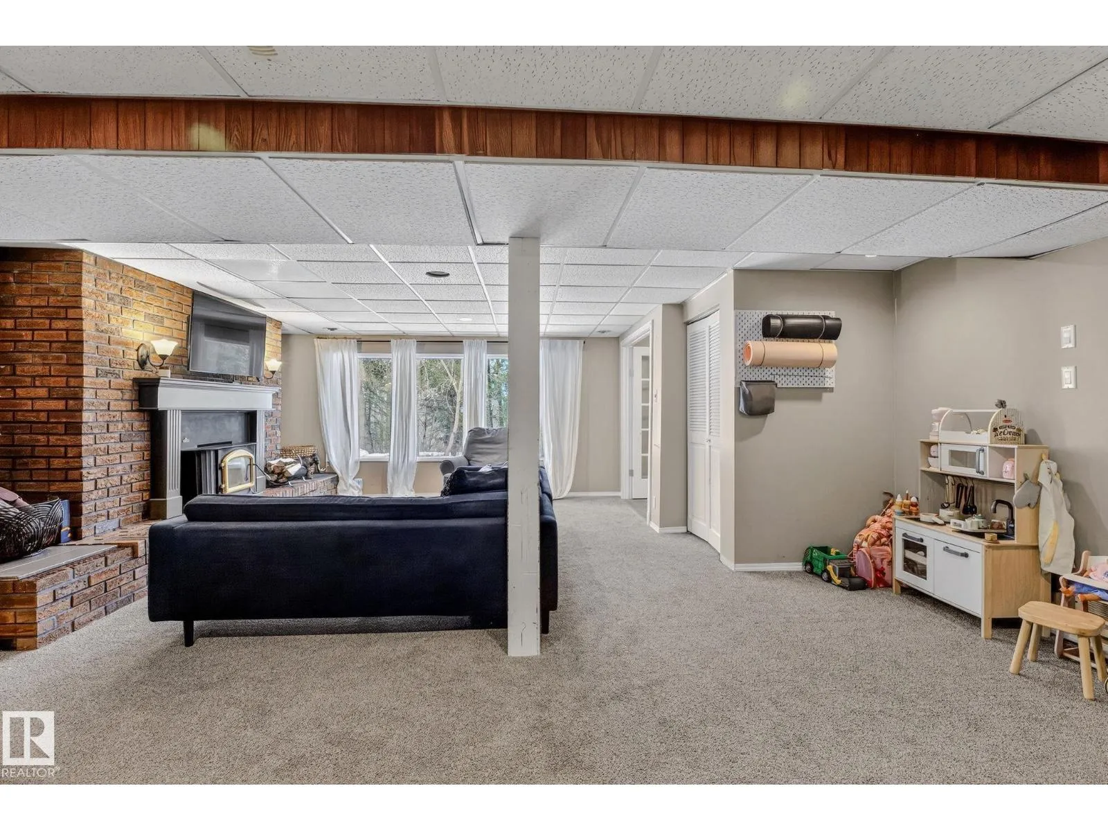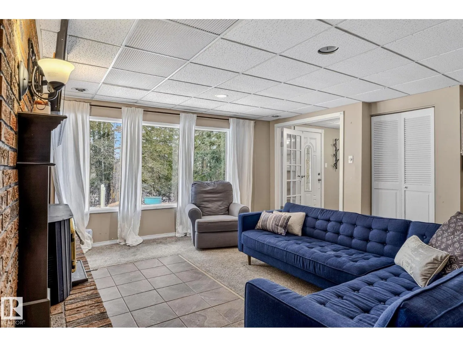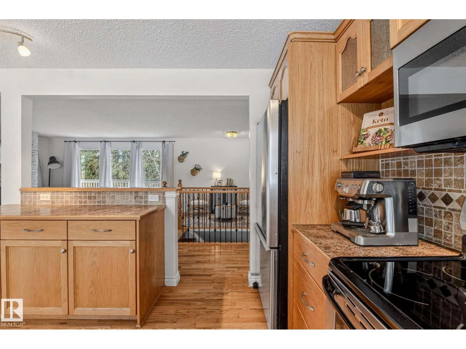 Escape the city to this beautiful 3 acre property, located just minutes from Sherwood Park. This beautiful walkout bungalow offers serene country living with quick access to the city and major highways. Inside, the home features a warm and inviting kitchen with classic oak cabinetry, stainless steel appliances, and a bright dining area highlighted by floor to ceiling windows. The main floor includes a spacious primary bedroom with an ensuite and direct access to a private patio- your quiet retreat. Two additional bedrooms and well appointed 3 piece bathroom complete the main level. The wrap-around deck is complete with natural gas hookup--perfect for outdoor entertaining. The fully finished walkout basement provides even more living space, featuring a cozy brick faced wood burning fireplace, an additional bedroom, bathroom and laundry room. Step out to your oversized heated double garage equipped with 220 volt power. Don't miss this rare opportunity as this property is PRICED TO SELL (id:27476)