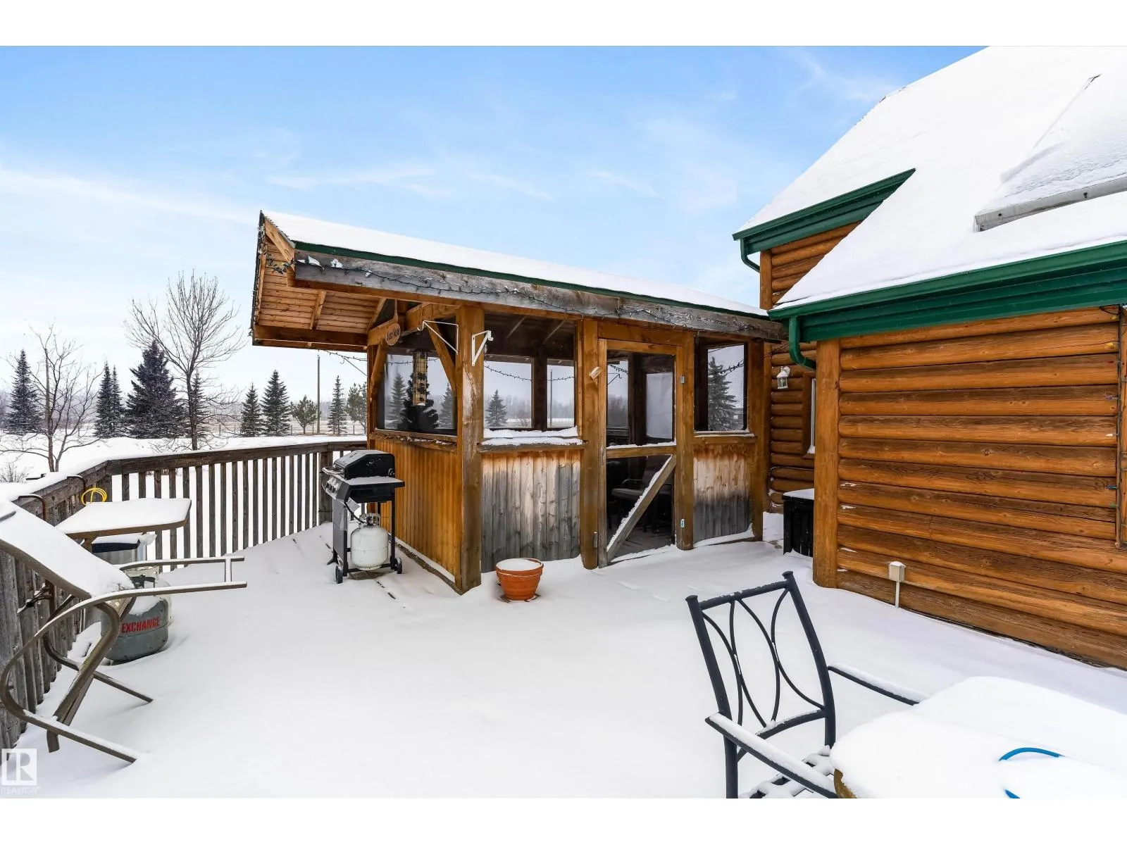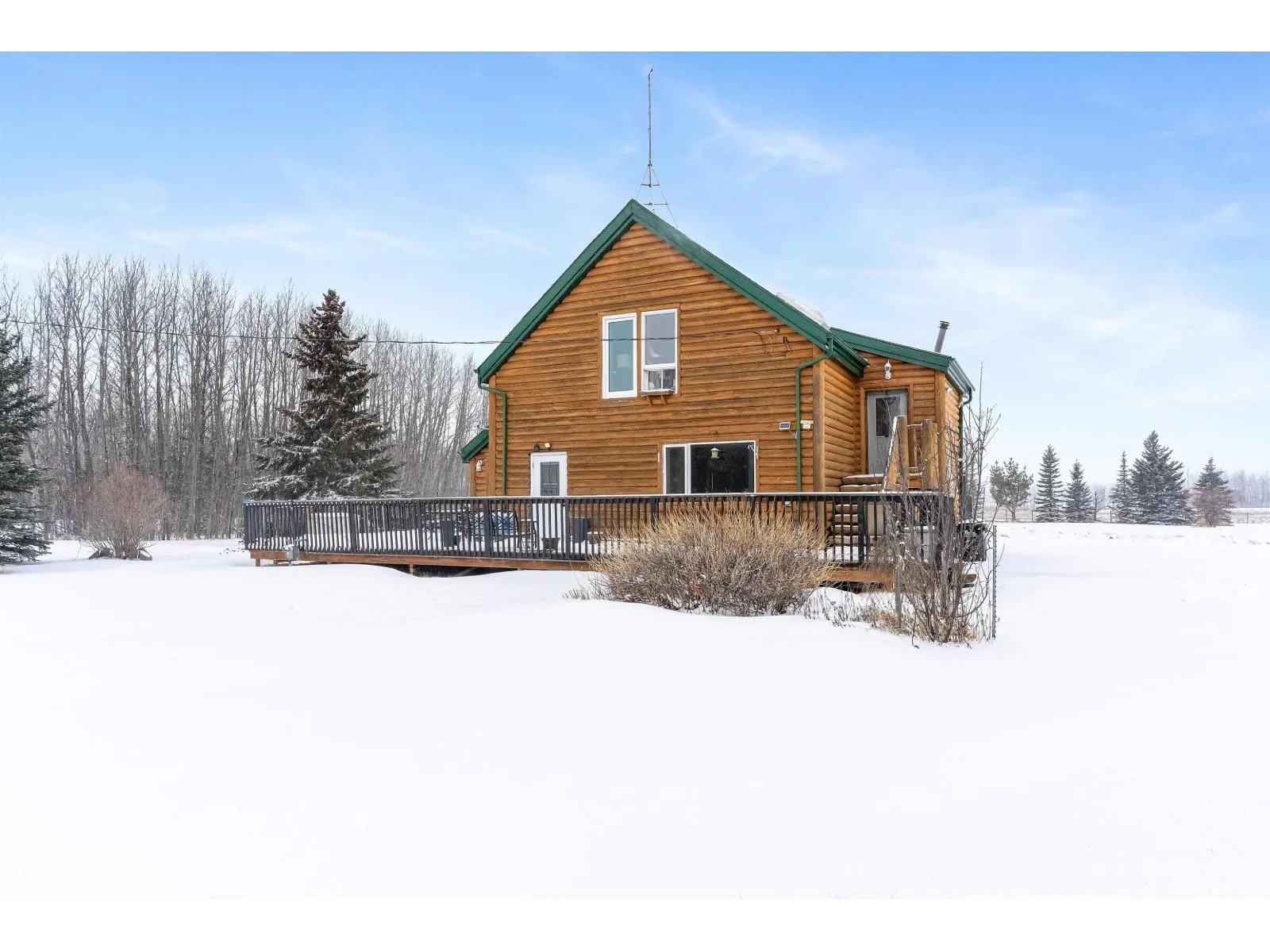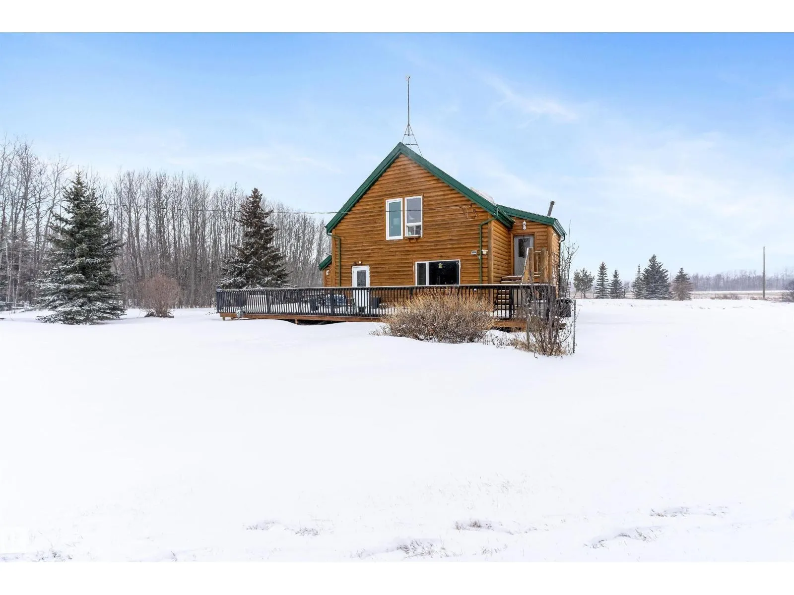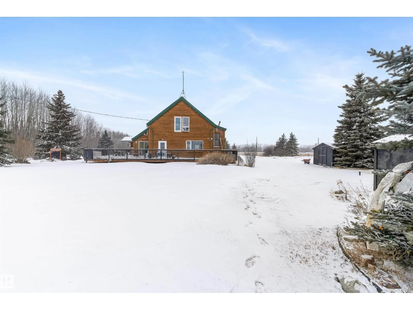 Embrace the ultimate rural escape on this expansive 39-acre estate, featuring a unique split-log siding home designed for versatile, multigenerational living. The main floor offers a spacious kitchen and dining area with an included kitchen island, complemented by a beautiful accessible bathroom and a 4th bedroom. Upstairs, youâll find three bedrooms and a charming attic space perfect for a playroom or extra storage. A major highlight is the massive approx. 1,800 sq ft garage, cleverly divided to include multiple uses. Outdoor living is a dream with the huge wrap-around deck and screened-in gazebo, overlooking land that features both cleared acreage and a thick evergreen forestâideal for trail riding or snowshoeing. The property also includes two garden sheds for added storage. Located just 20 minutes from the city, this home offers the perfect blend of privacy, agricultural potential, and convenience for those seeking a peaceful lifestyle. (id:27476)