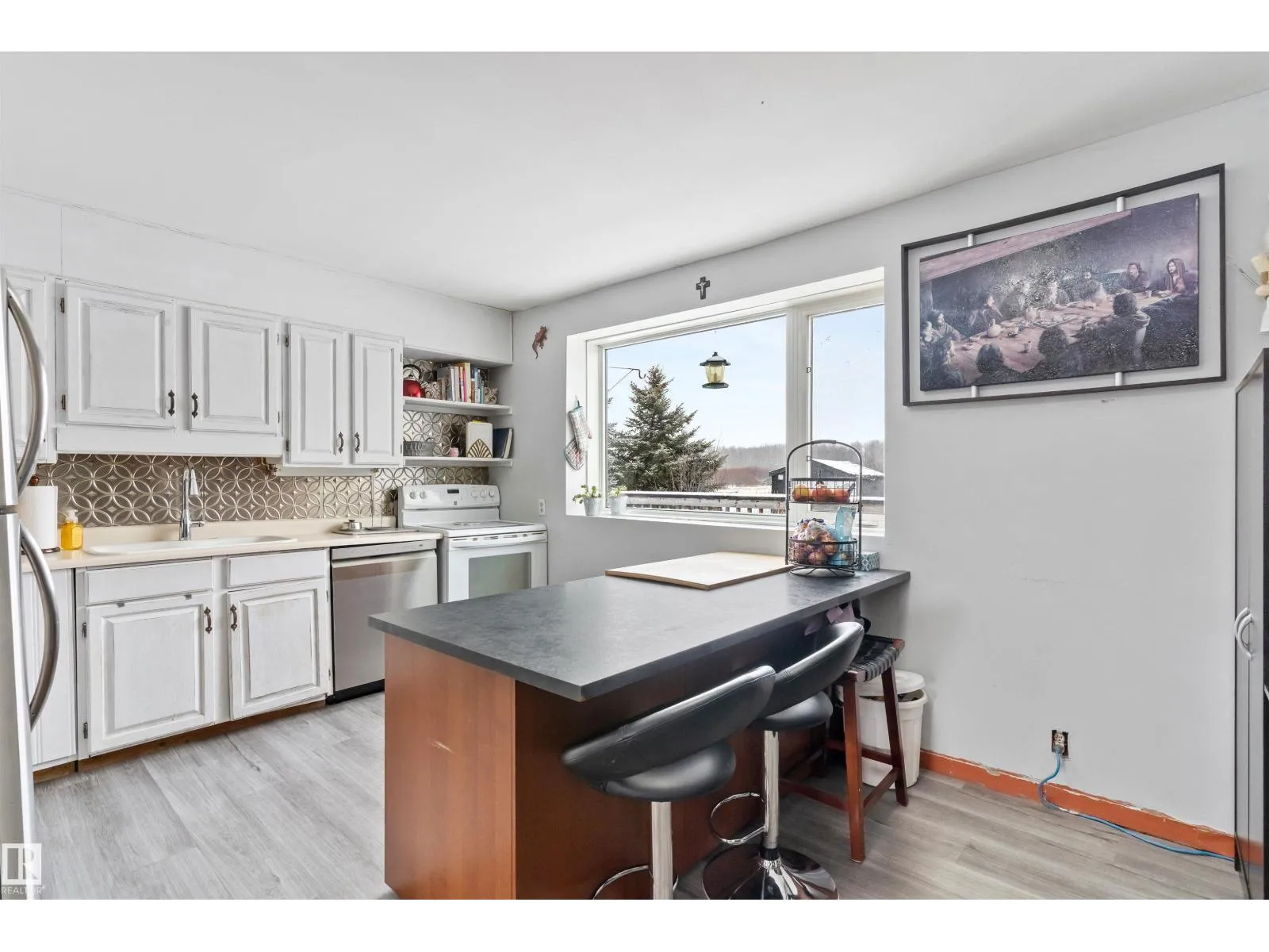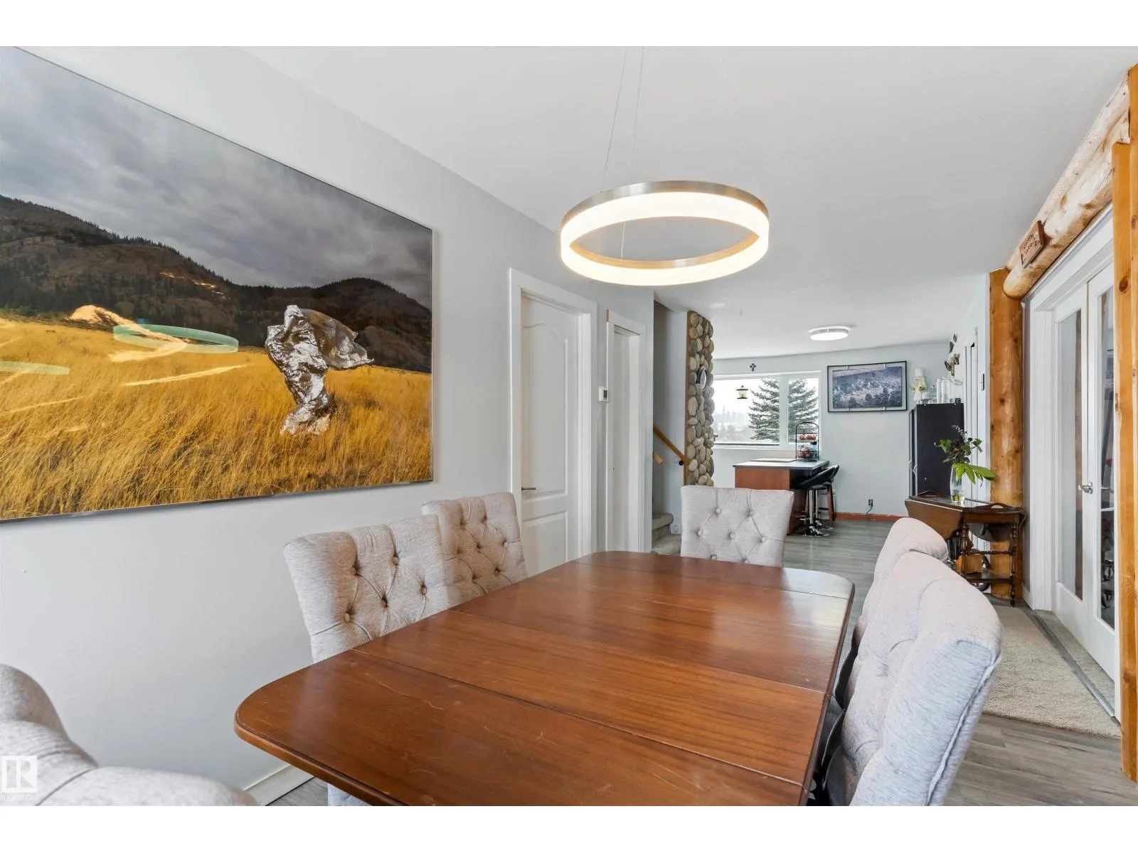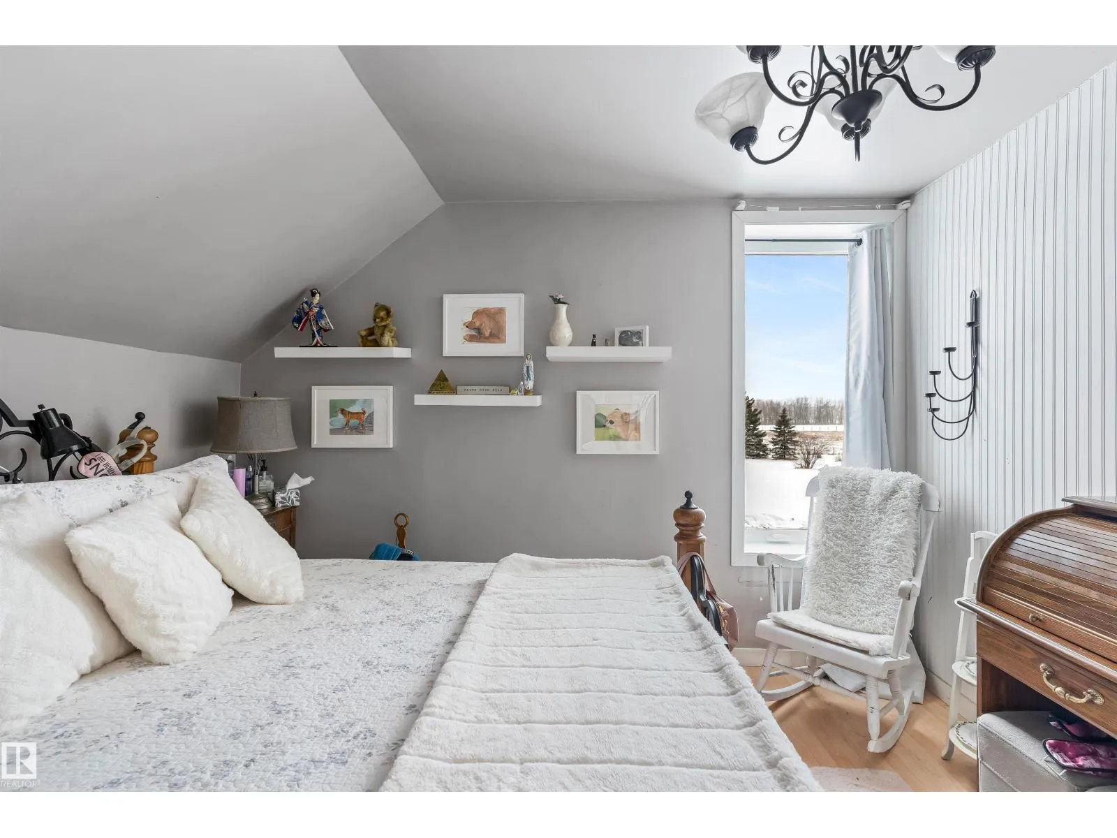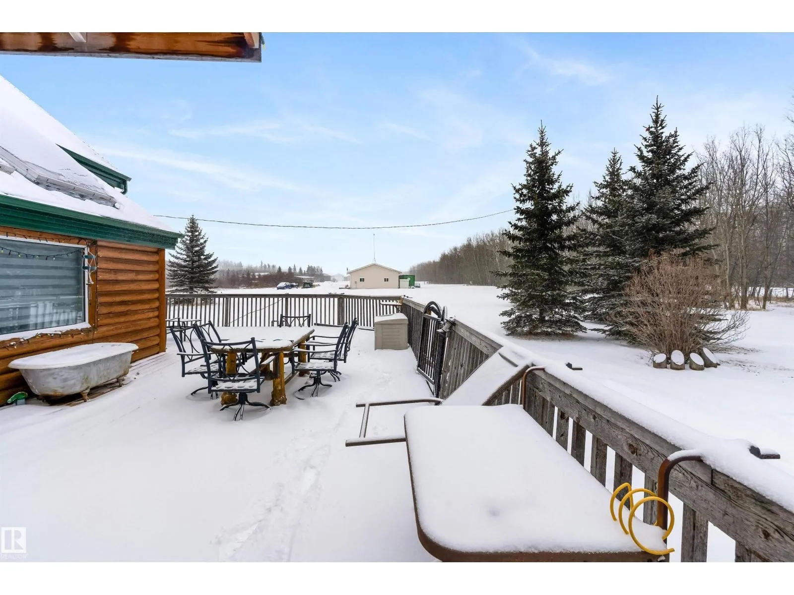 Embrace the ultimate rural escape on this expansive 39-acre estate, featuring a unique split-log siding home designed for versatile, multigenerational living. The main floor offers a spacious kitchen and dining area with an included kitchen island, complemented by a beautiful accessible bathroom and a 4th bedroom. Upstairs, youâll find three bedrooms and a charming attic space perfect for a playroom or extra storage. A major highlight is the massive approx. 1,800 sq ft garage, cleverly divided to include multiple uses. Outdoor living is a dream with the huge wrap-around deck and screened-in gazebo, overlooking land that features both cleared acreage and a thick evergreen forestâideal for trail riding or snowshoeing. The property also includes two garden sheds for added storage. Located just 20 minutes from the city, this home offers the perfect blend of privacy, agricultural potential, and convenience for those seeking a peaceful lifestyle. (id:27476)