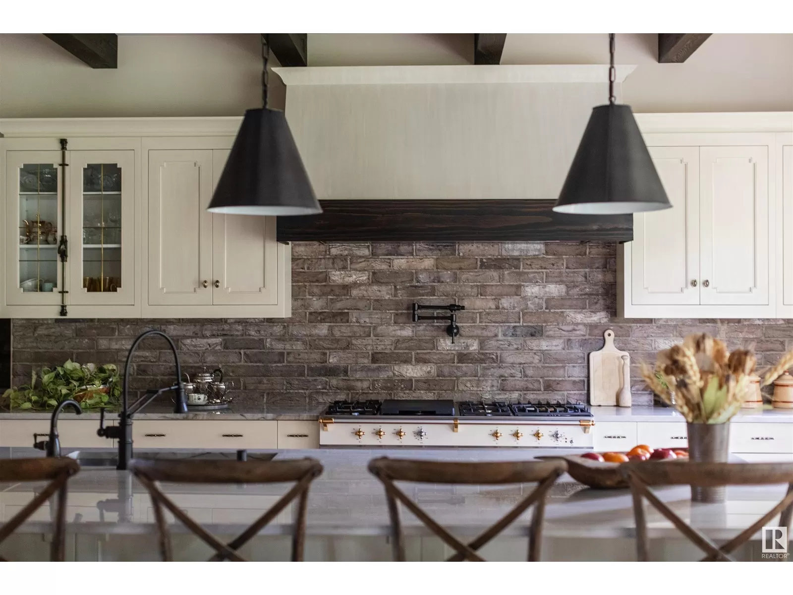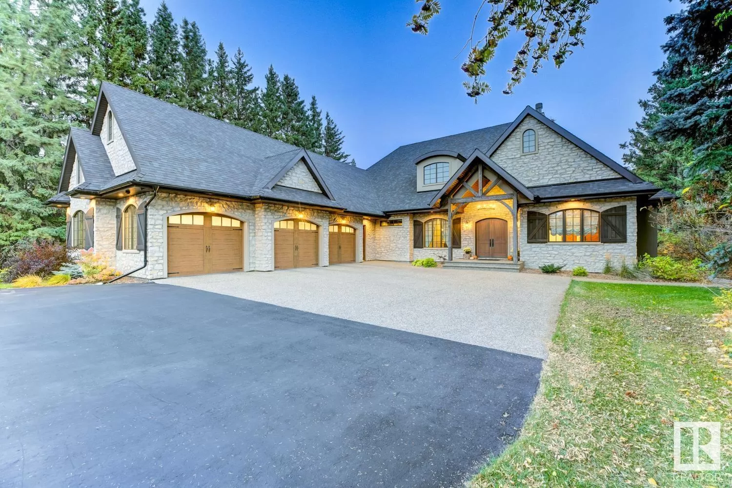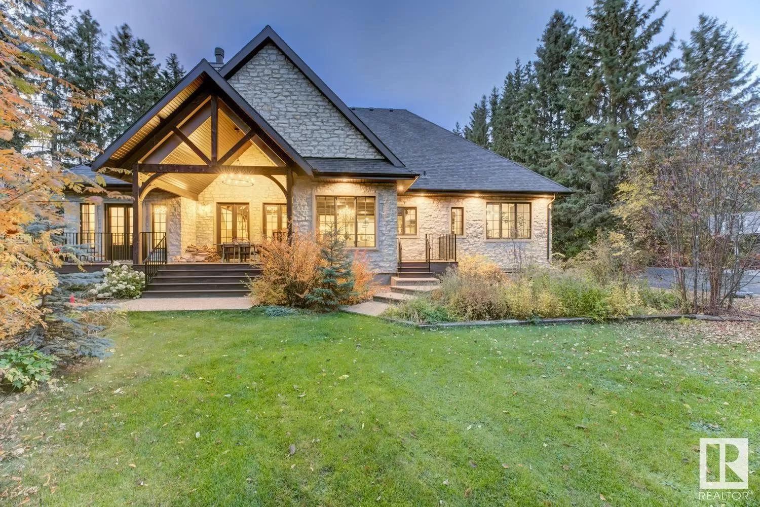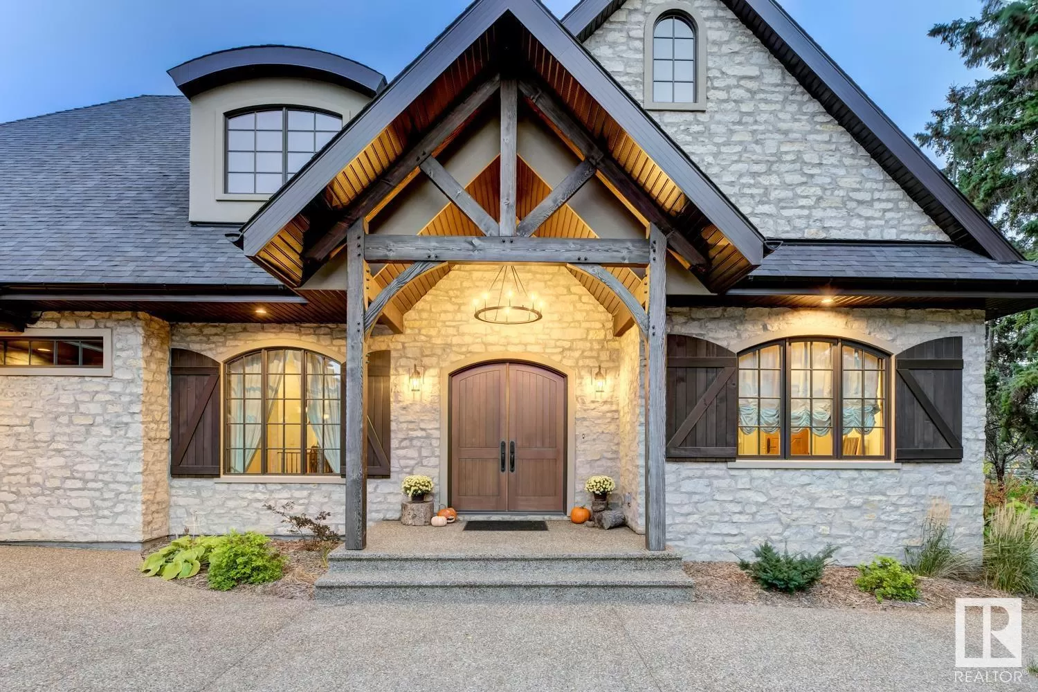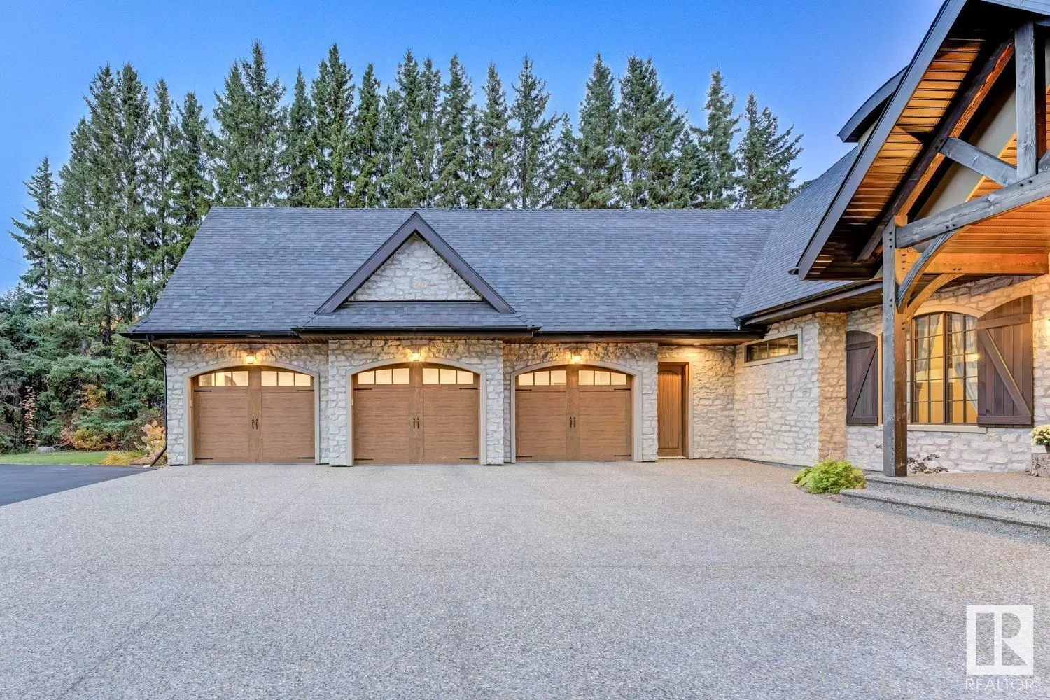 Reminiscent of the stone farmhouses of Burgundy France, experience elegant modern living paired w/ historical charm & exquisite European influence in a private, picturesque setting w/ this one-of-a-kind, executive estate bungalow, nestled on two meticulously landscaped acres in Sturgeon County, mere minutes from both Edmonton & St. Albert. Crafted by Heredity Homes & designed by Nadia Li of Go For Décor, this home blends historical charm w/ modern comfort. Exterior features include natural stone walls & Douglas Fir beams, while inside, smoked white oak floors, wrought iron details, & Belgian linen window treatments create a luxurious ambiance. A centerpiece wood-burning fireplace & vaulted ceilings add grandeur, complemented by a gourmet kitchen w/ Lacanche oven & Miele appliances. The primary suite offers a private deck & spa-like en-suite, while the finished basement feat. 2 bedrooms, sauna, media room, gym, & wet bar. Outside, a carriage house w/ living space & expansive views completes this property. (id:27476)