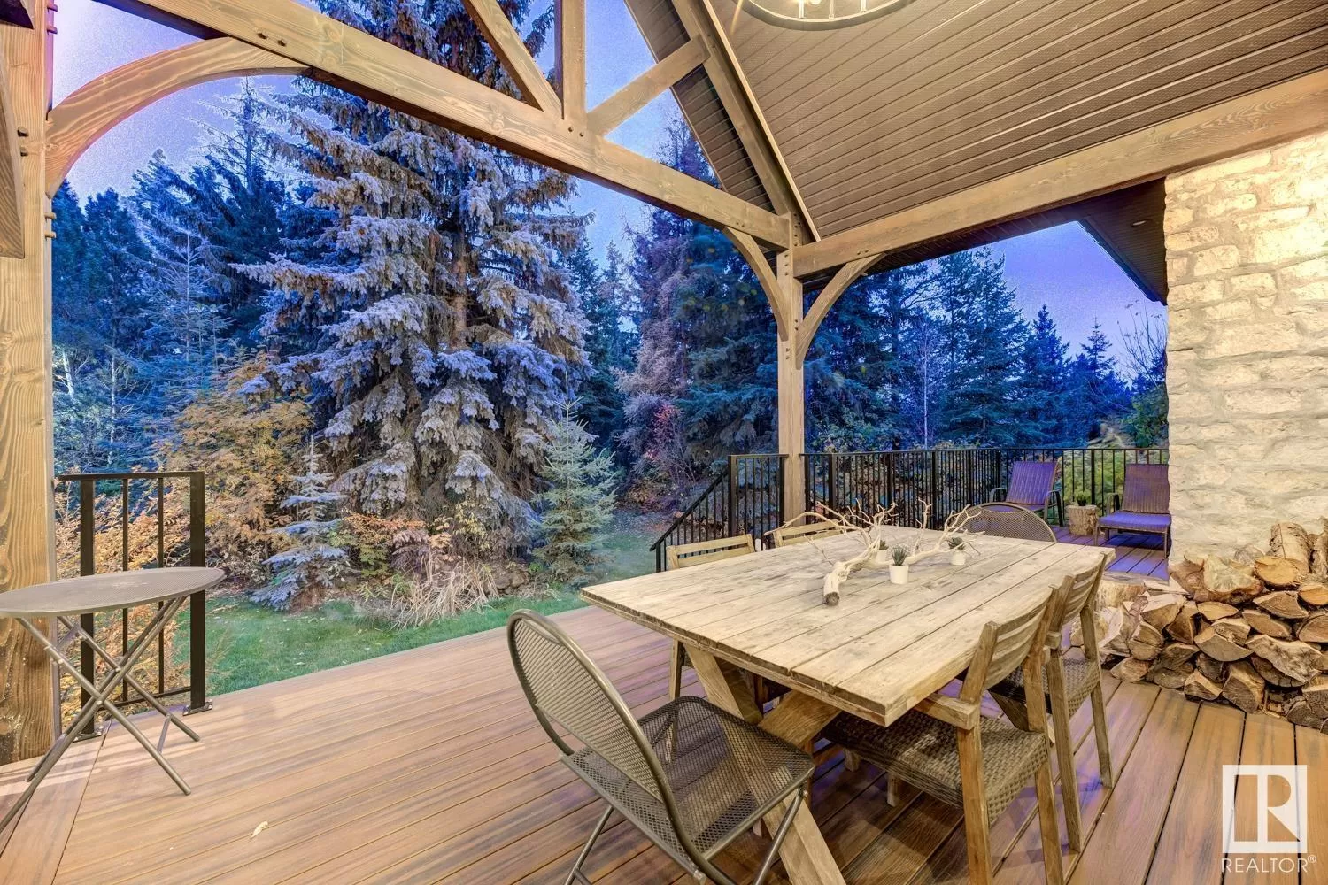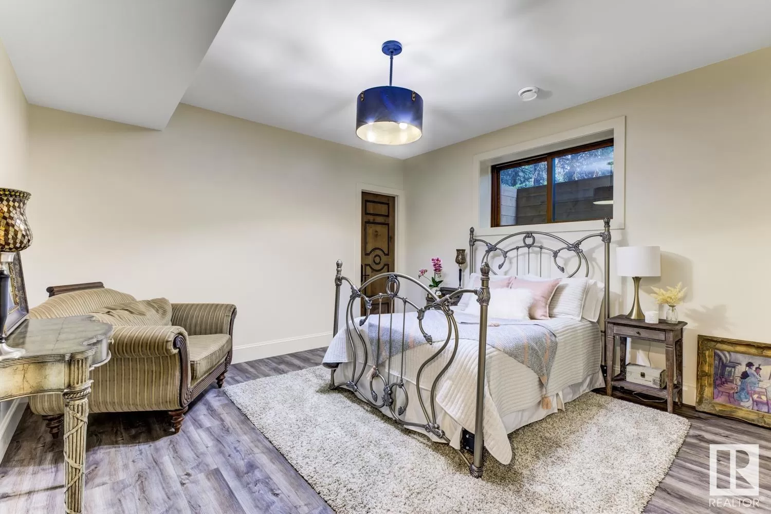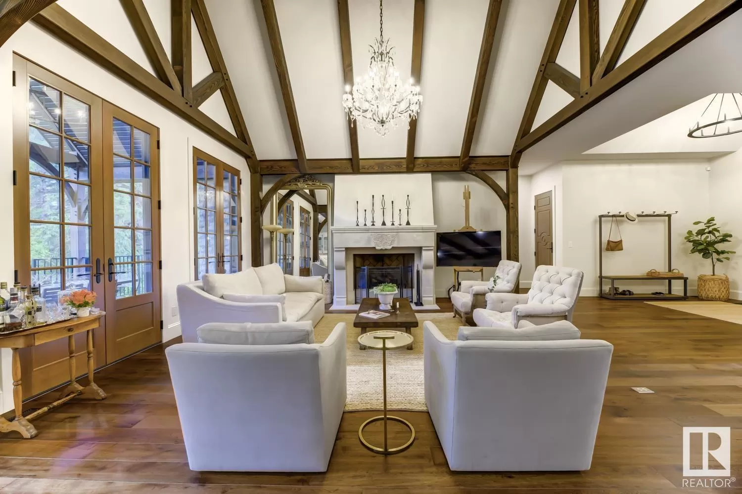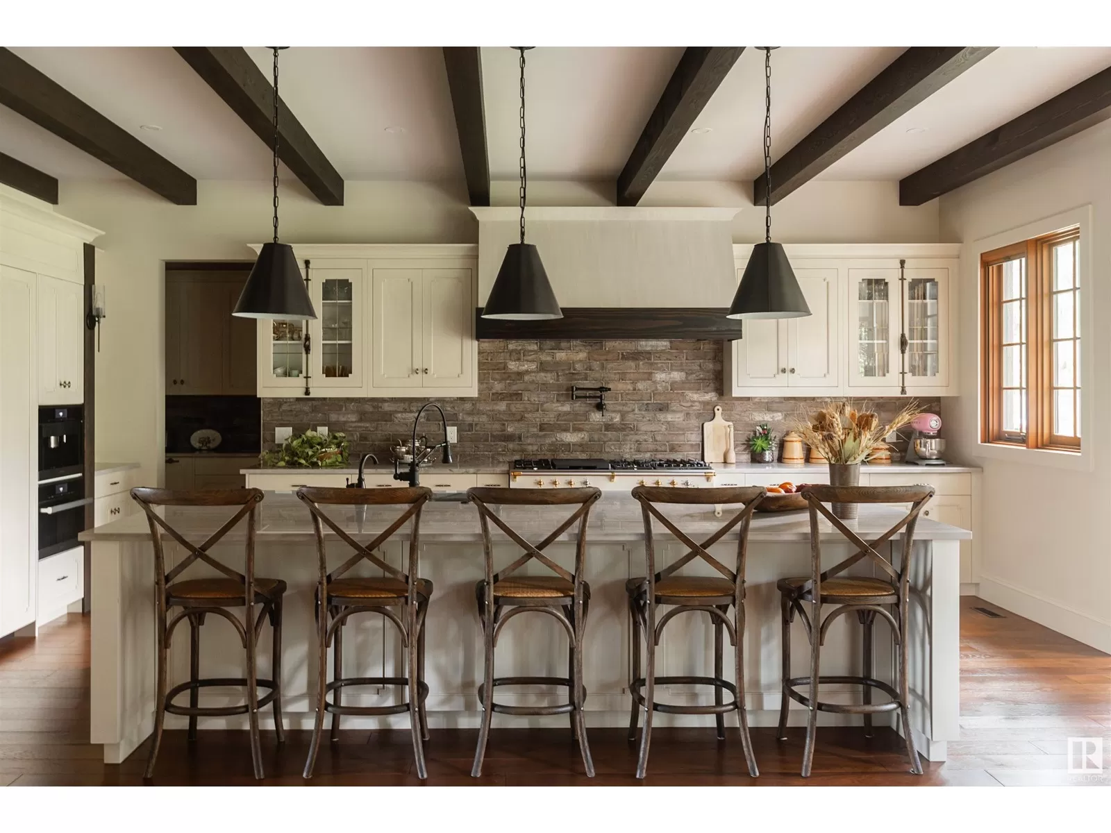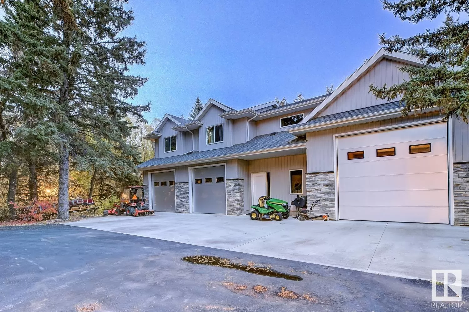 Reminiscent of the stone farmhouses of Burgundy France, experience elegant modern living paired w/ historical charm & exquisite European influence in a private, picturesque setting w/ this one-of-a-kind, executive estate bungalow, nestled on two meticulously landscaped acres in Sturgeon County, mere minutes from both Edmonton & St. Albert. Crafted by Heredity Homes & designed by Nadia Li of Go For Décor, this home blends historical charm w/ modern comfort. Exterior features include natural stone walls & Douglas Fir beams, while inside, smoked white oak floors, wrought iron details, & Belgian linen window treatments create a luxurious ambiance. A centerpiece wood-burning fireplace & vaulted ceilings add grandeur, complemented by a gourmet kitchen w/ Lacanche oven & Miele appliances. The primary suite offers a private deck & spa-like en-suite, while the finished basement feat. 2 bedrooms, sauna, media room, gym, & wet bar. Outside, a carriage house w/ living space & expansive views completes this property. (id:27476)