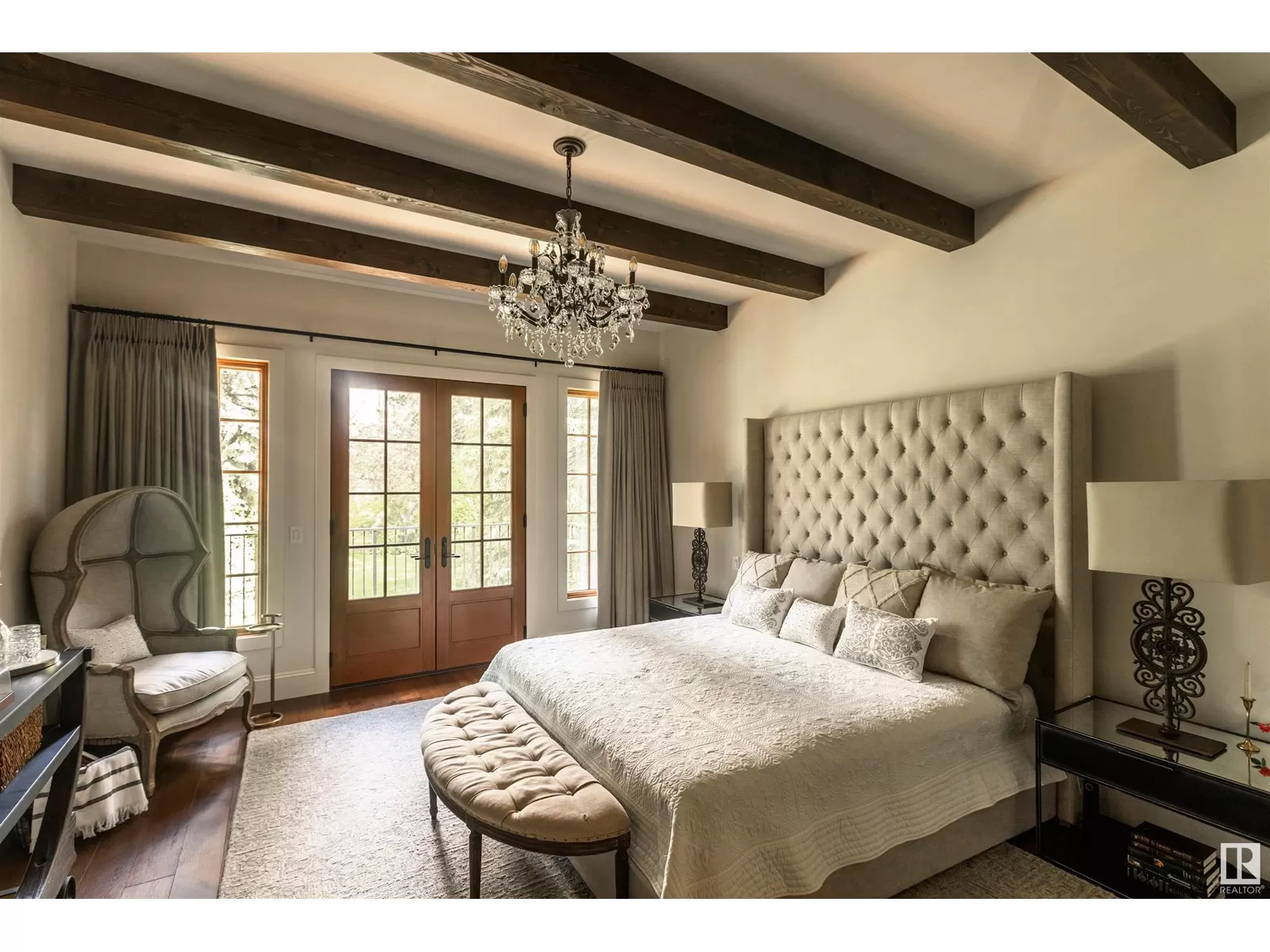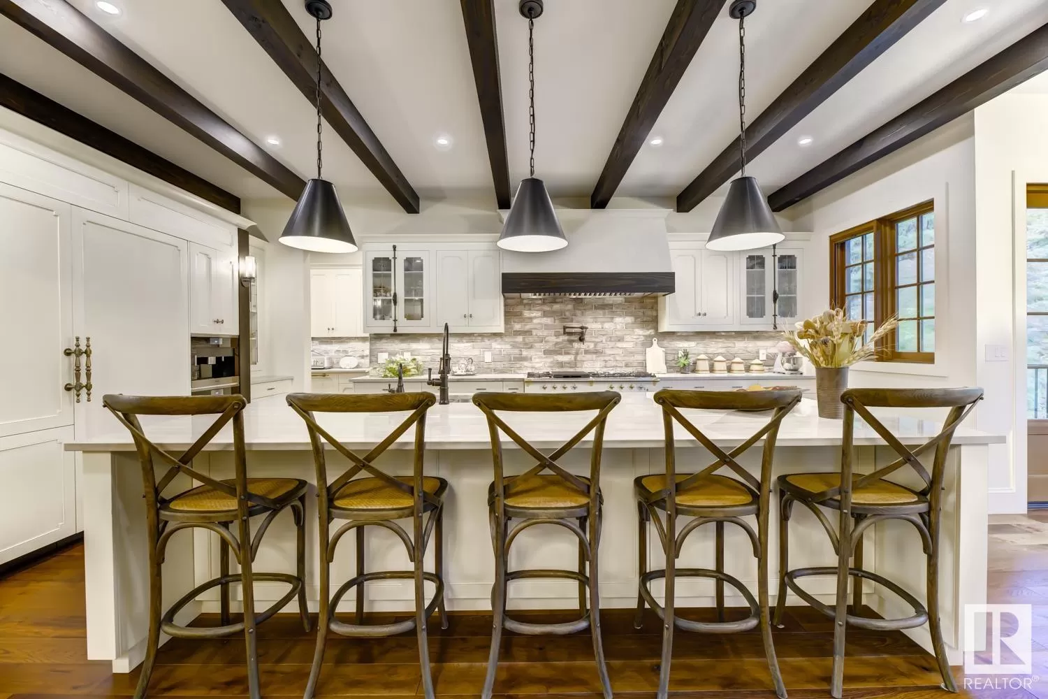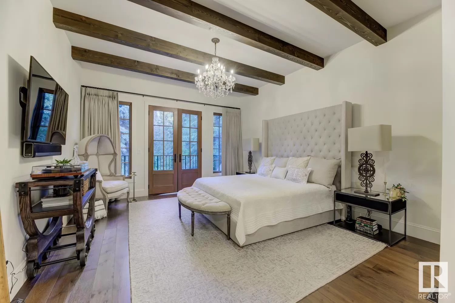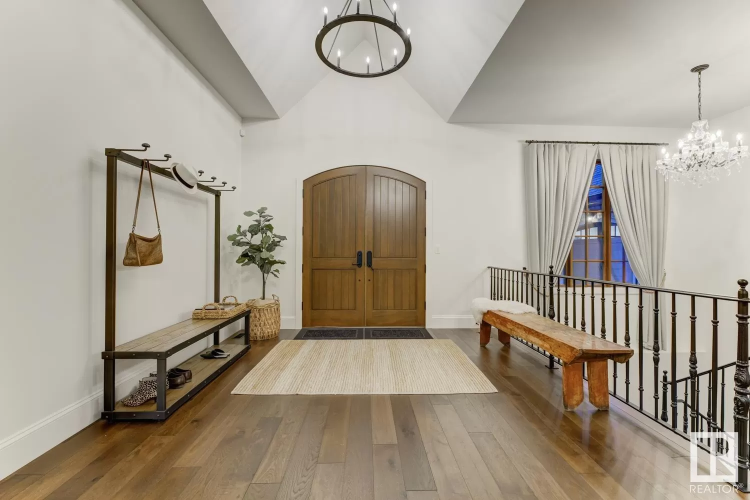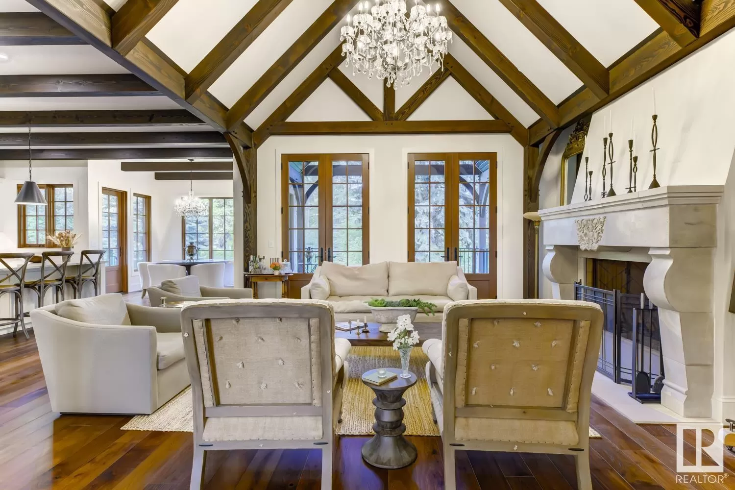 Reminiscent of the stone farmhouses of Burgundy France, experience elegant modern living paired w/ historical charm & exquisite European influence in a private, picturesque setting w/ this one-of-a-kind, executive estate bungalow, nestled on two meticulously landscaped acres in Sturgeon County, mere minutes from both Edmonton & St. Albert. Crafted by Heredity Homes & designed by Nadia Li of Go For Décor, this home blends historical charm w/ modern comfort. Exterior features include natural stone walls & Douglas Fir beams, while inside, smoked white oak floors, wrought iron details, & Belgian linen window treatments create a luxurious ambiance. A centerpiece wood-burning fireplace & vaulted ceilings add grandeur, complemented by a gourmet kitchen w/ Lacanche oven & Miele appliances. The primary suite offers a private deck & spa-like en-suite, while the finished basement feat. 2 bedrooms, sauna, media room, gym, & wet bar. Outside, a carriage house w/ living space & expansive views completes this property. (id:27476)