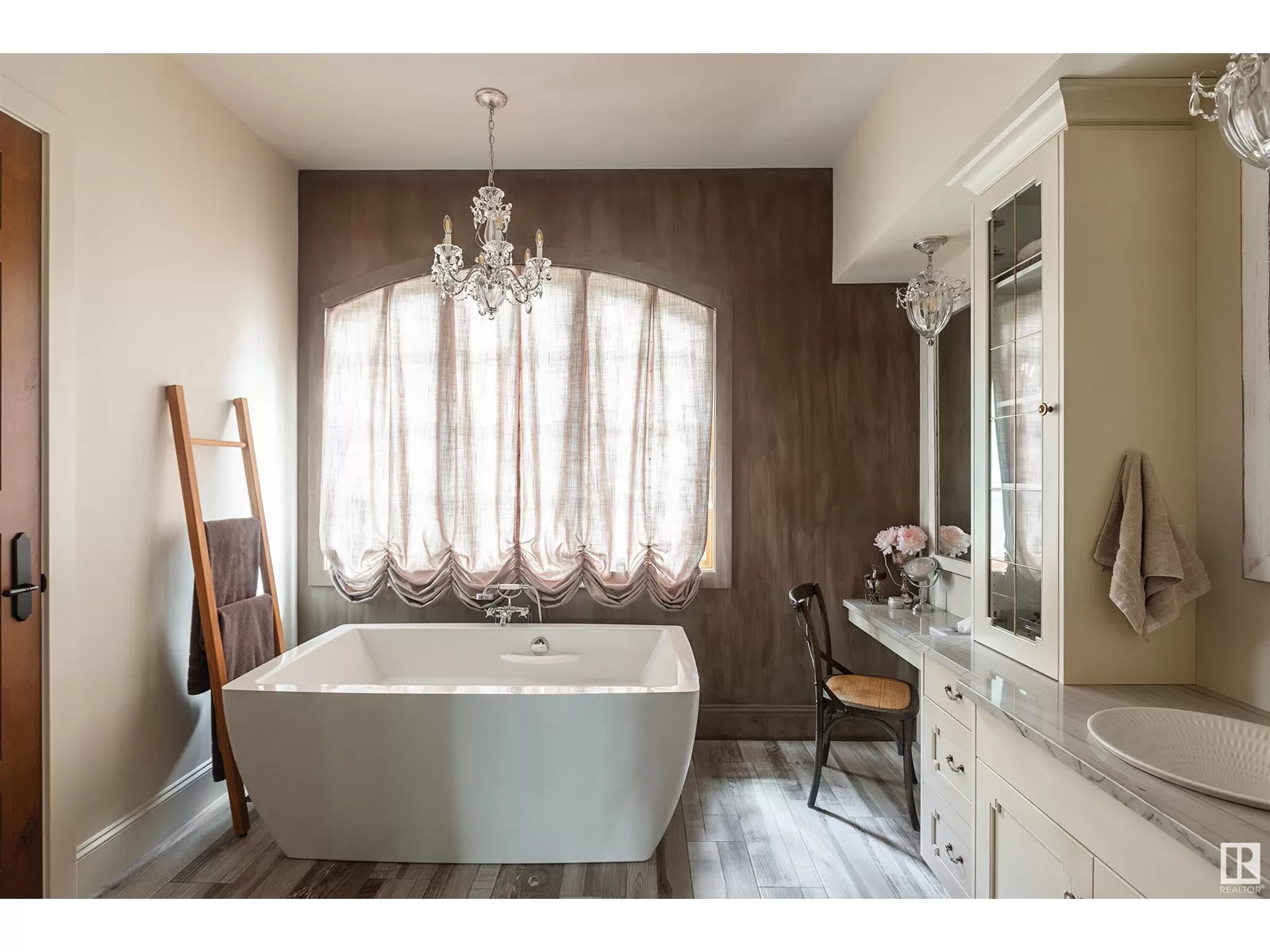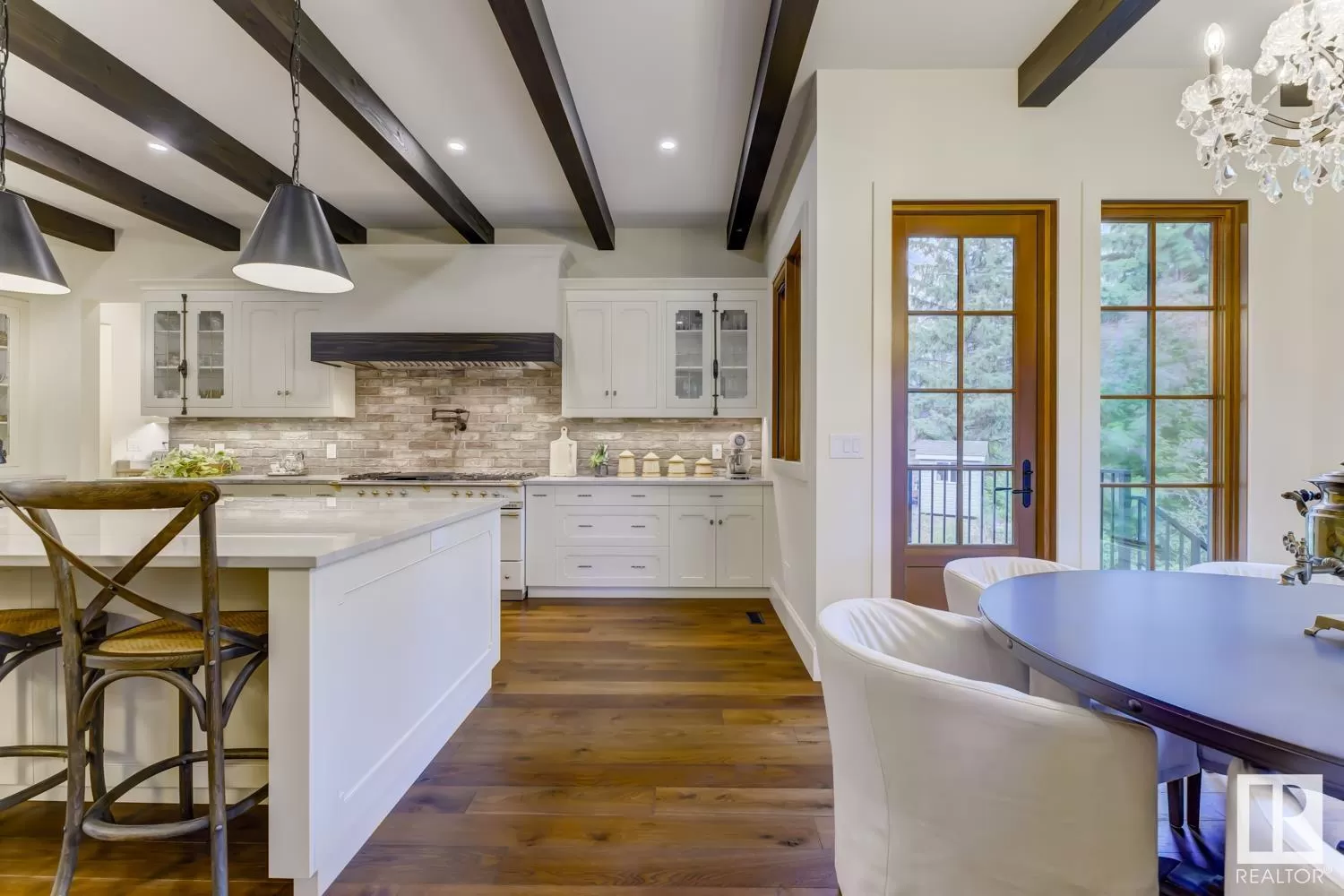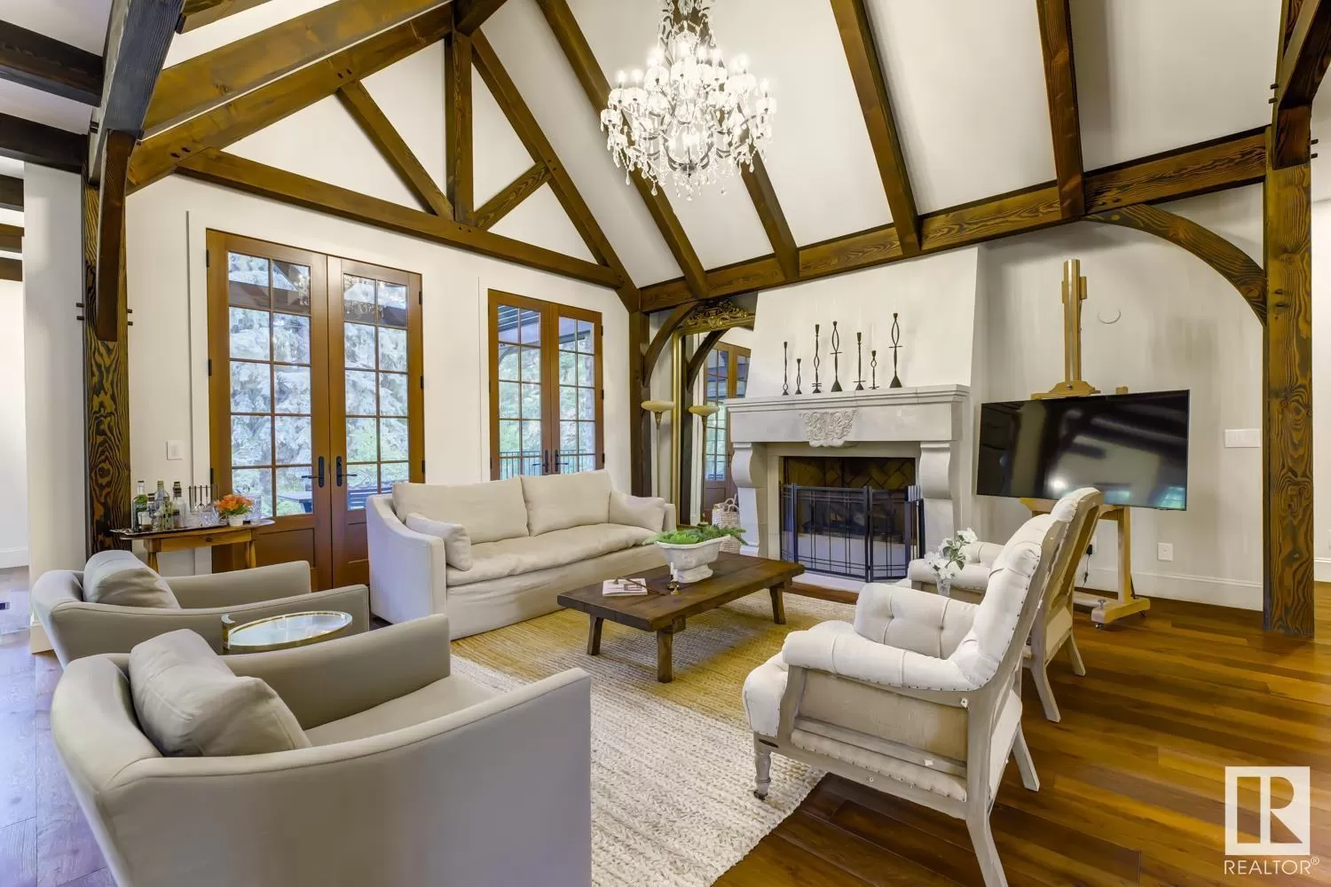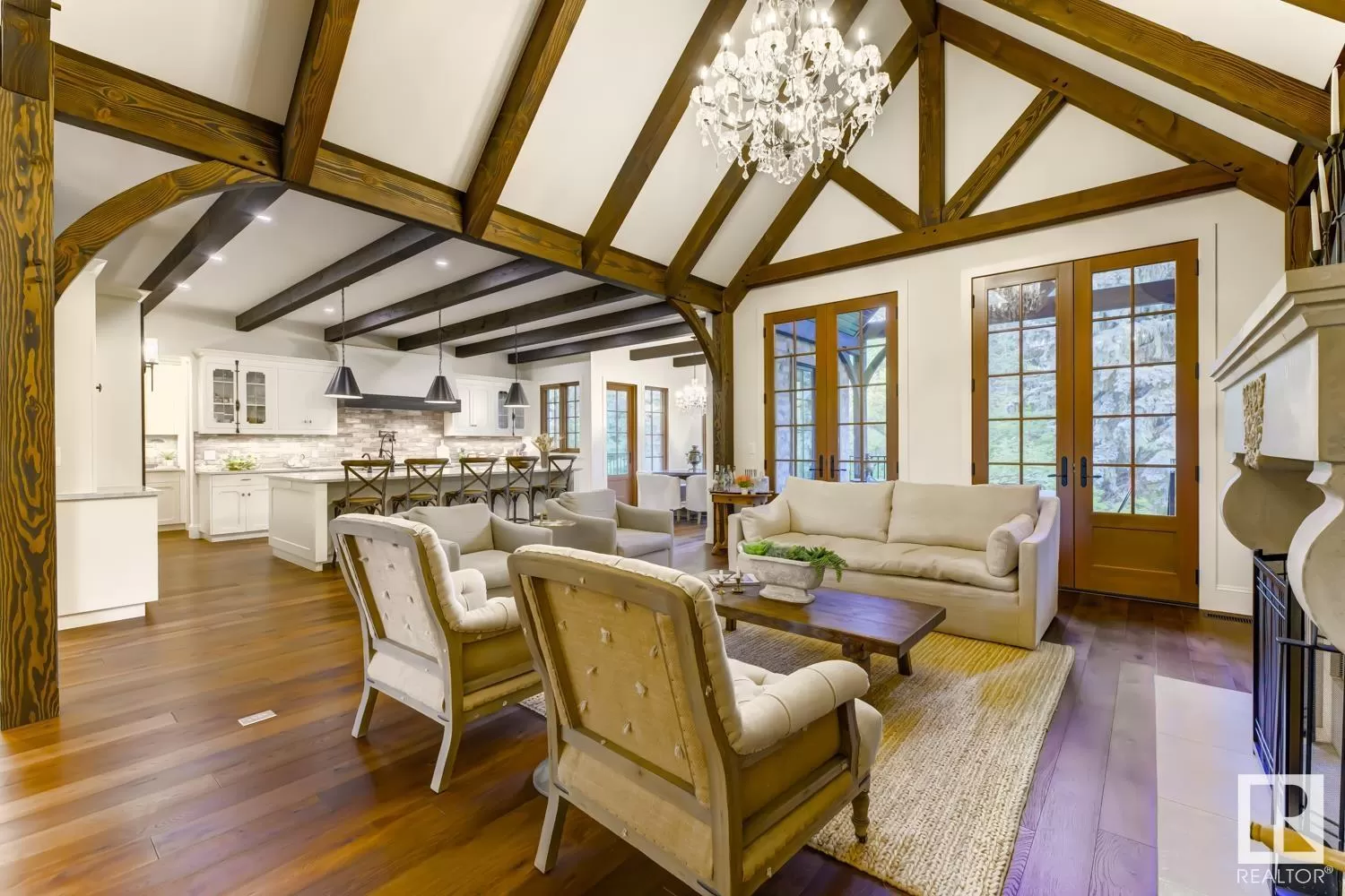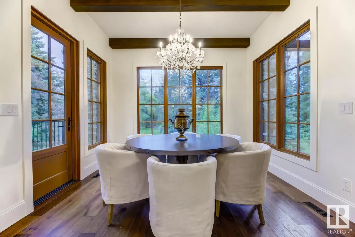 Reminiscent of the stone farmhouses of Burgundy France, experience elegant modern living paired w/ historical charm & exquisite European influence in a private, picturesque setting w/ this one-of-a-kind, executive estate bungalow, nestled on two meticulously landscaped acres in Sturgeon County, mere minutes from both Edmonton & St. Albert. Crafted by Heredity Homes & designed by Nadia Li of Go For Décor, this home blends historical charm w/ modern comfort. Exterior features include natural stone walls & Douglas Fir beams, while inside, smoked white oak floors, wrought iron details, & Belgian linen window treatments create a luxurious ambiance. A centerpiece wood-burning fireplace & vaulted ceilings add grandeur, complemented by a gourmet kitchen w/ Lacanche oven & Miele appliances. The primary suite offers a private deck & spa-like en-suite, while the finished basement feat. 2 bedrooms, sauna, media room, gym, & wet bar. Outside, a carriage house w/ living space & expansive views completes this property. (id:27476)