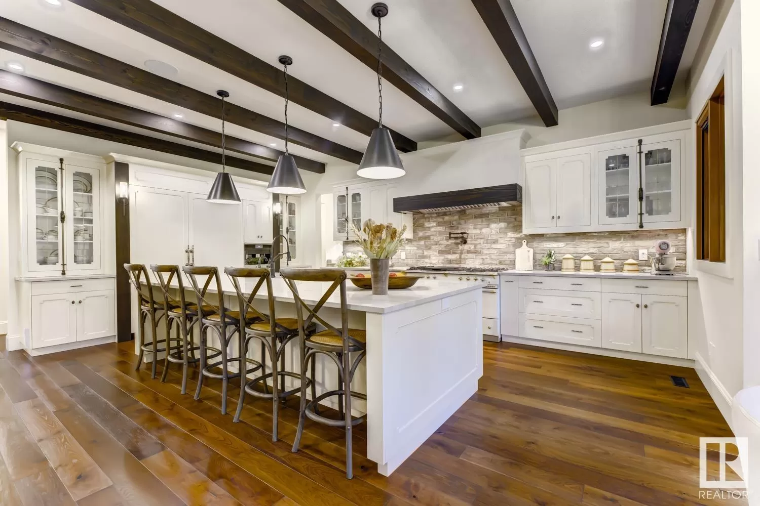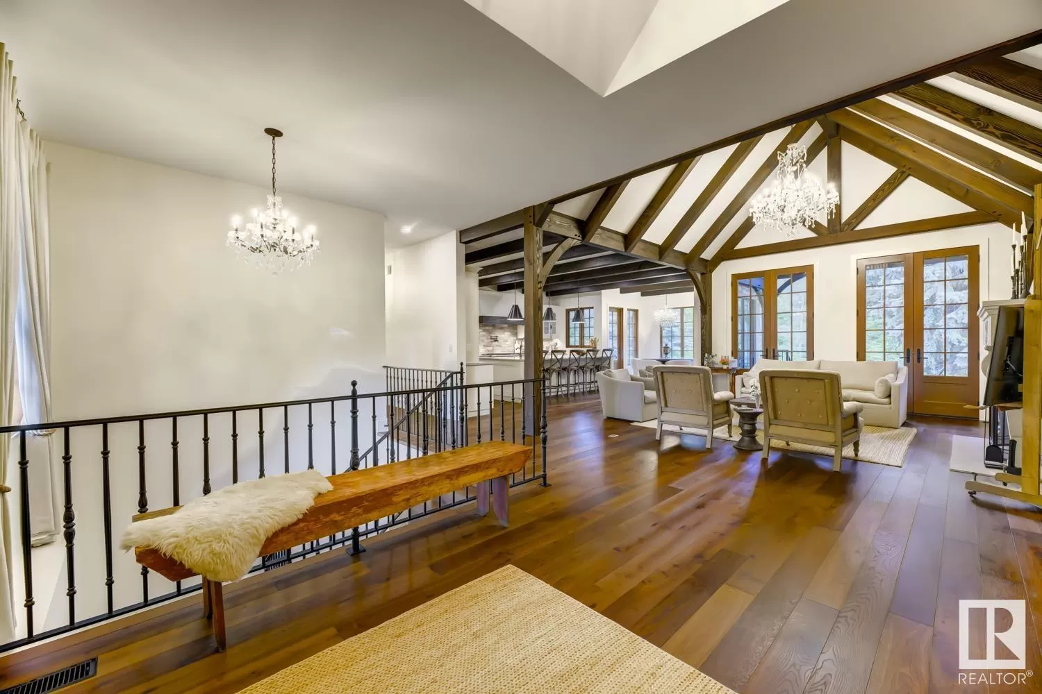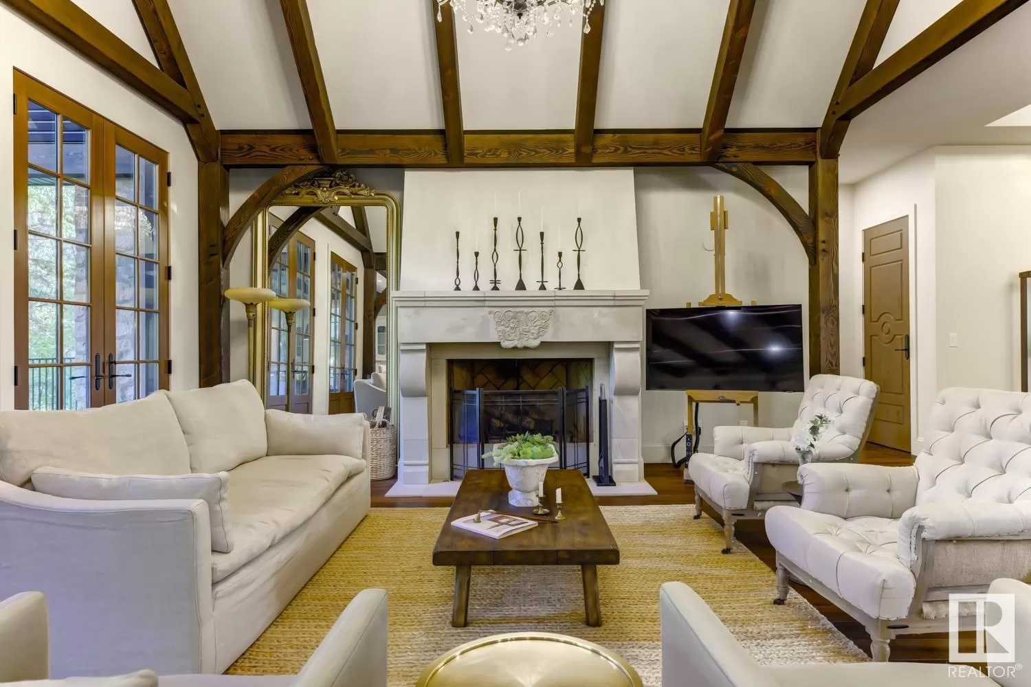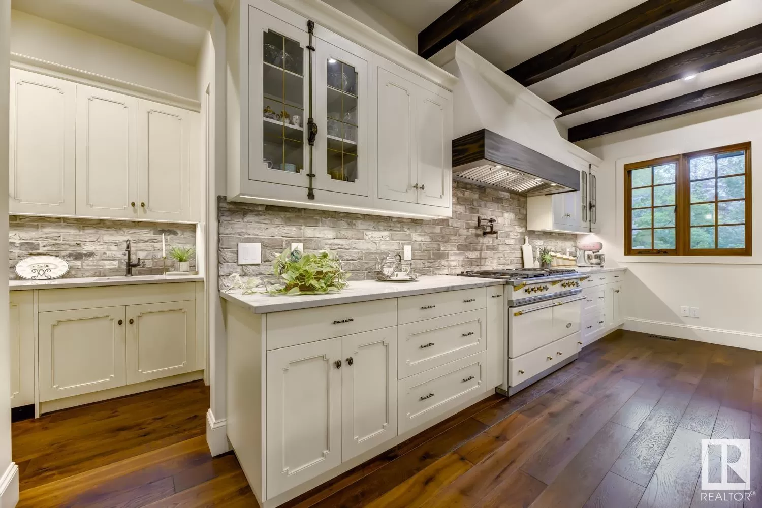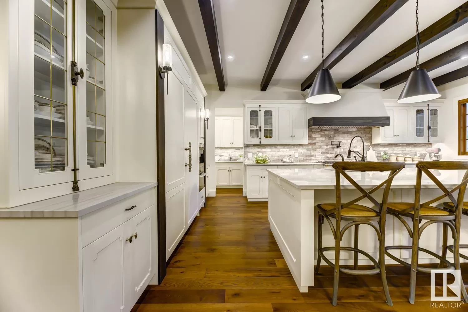 Reminiscent of the stone farmhouses of Burgundy France, experience elegant modern living paired w/ historical charm & exquisite European influence in a private, picturesque setting w/ this one-of-a-kind, executive estate bungalow, nestled on two meticulously landscaped acres in Sturgeon County, mere minutes from both Edmonton & St. Albert. Crafted by Heredity Homes & designed by Nadia Li of Go For Décor, this home blends historical charm w/ modern comfort. Exterior features include natural stone walls & Douglas Fir beams, while inside, smoked white oak floors, wrought iron details, & Belgian linen window treatments create a luxurious ambiance. A centerpiece wood-burning fireplace & vaulted ceilings add grandeur, complemented by a gourmet kitchen w/ Lacanche oven & Miele appliances. The primary suite offers a private deck & spa-like en-suite, while the finished basement feat. 2 bedrooms, sauna, media room, gym, & wet bar. Outside, a carriage house w/ living space & expansive views completes this property. (id:27476)