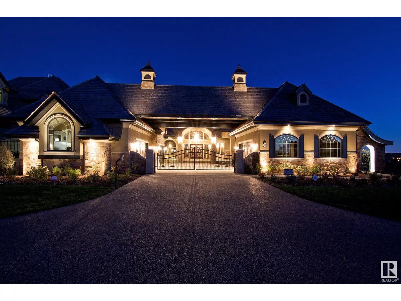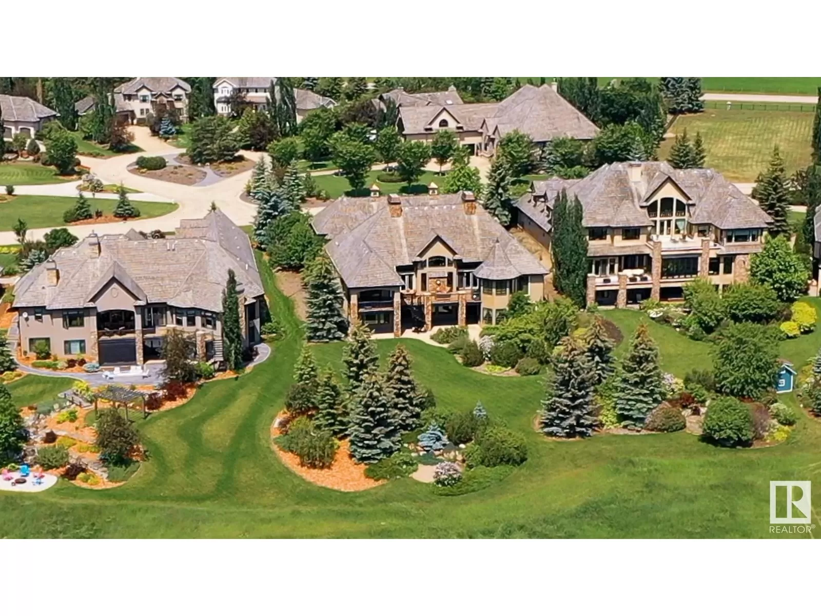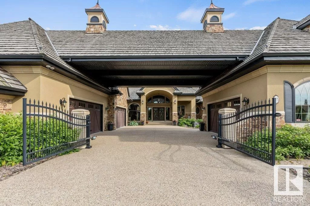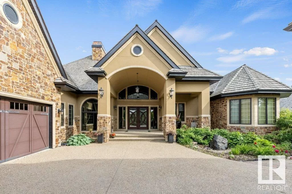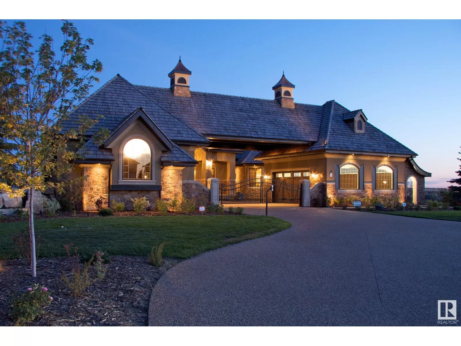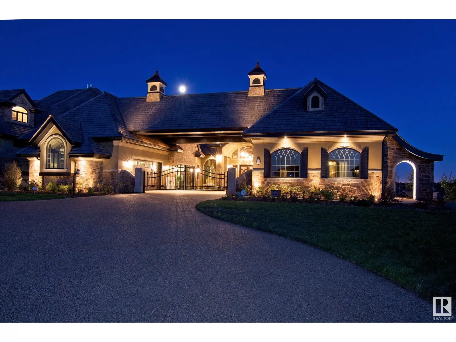 This STUNNING, Audie Benson Estate Homes show home is the grandest of the grand! 7100 sq ft of luxury living on 0.72 acres of gorgeous river valley views in prestigious Riverstone Pointe, minutes out of St. Albert & to the Anthony Henday. The curb appeal is unsurpassed with drive through portico, natural iron stone, copper chimneys & capolas & iron security gate. Step across the threshold into an elegant foyer w/views of the Great Room, boasting 20' open vaulted cherry ceilings, an exquisite formal dining room & music room, wall-to-wall & floor to ceiling library complete with sliding ladder. The den is perfectly situated off the luxurious master suite & library. This magnificent walkout bungalow boasts awards for best kitchen & best ensuite in North America. Main floor access to the south backing upper patio, with views of double waterfalls, bridges & rose gardens. The lower level includes a gathering room, games room, theatre, old world wine cellar, fitness room w/massage area, and SO MUCH MORE! (id:27476)