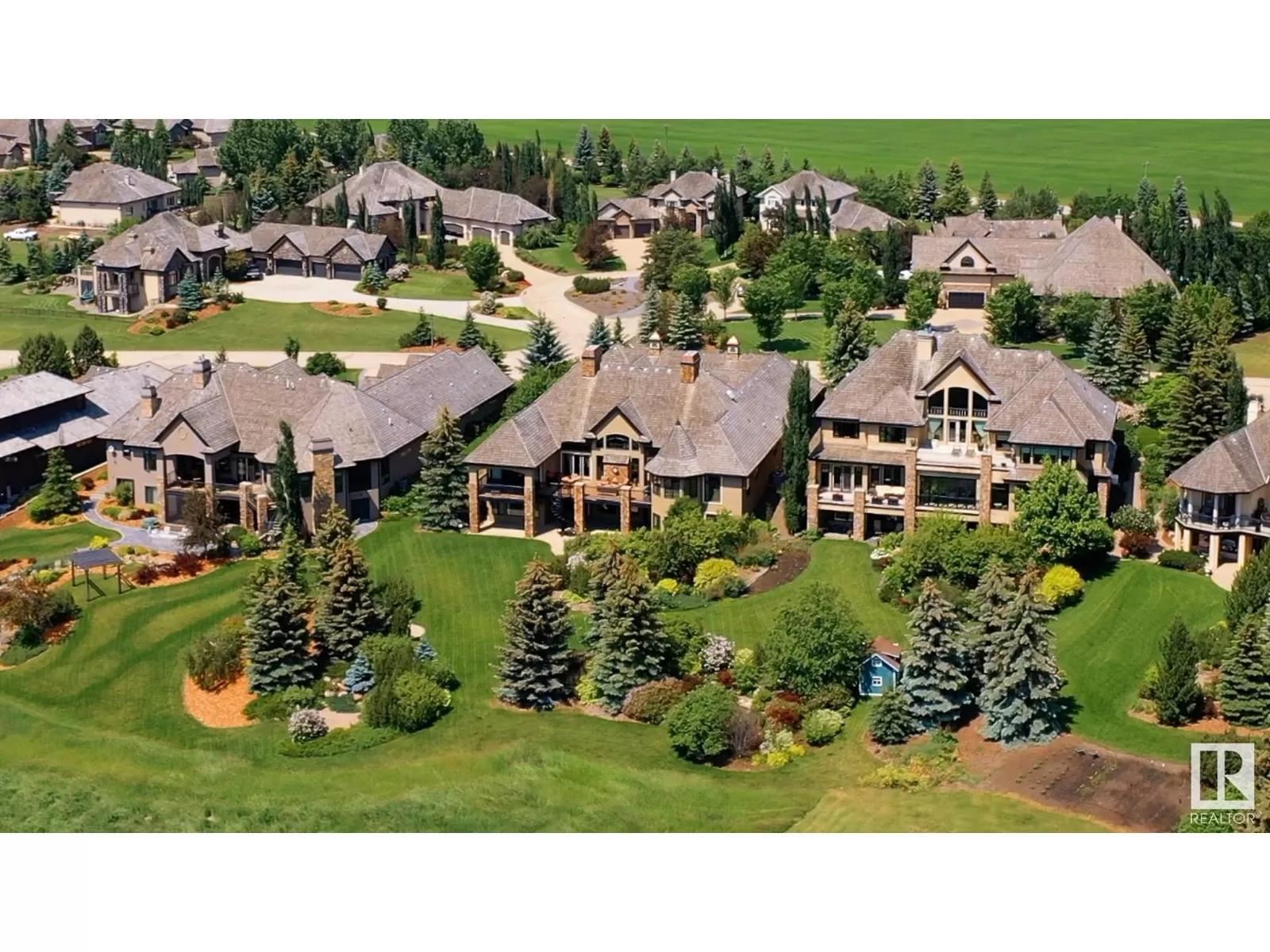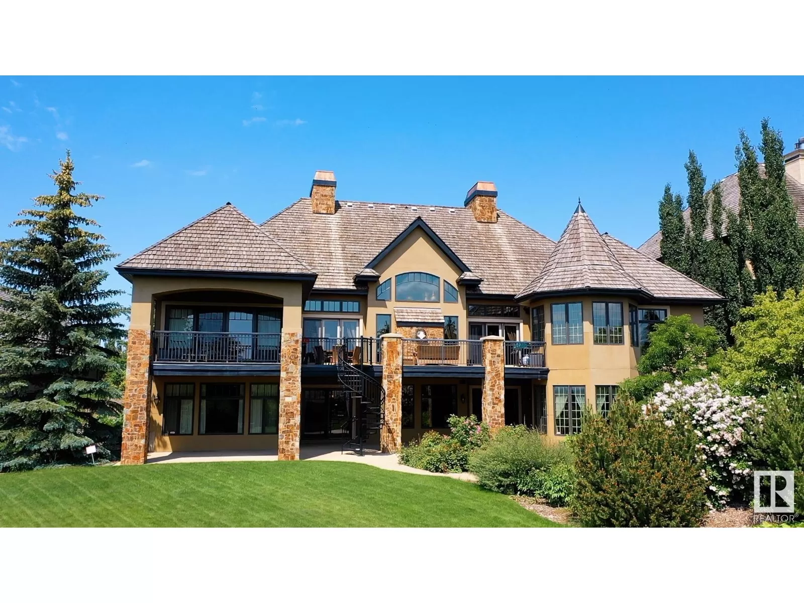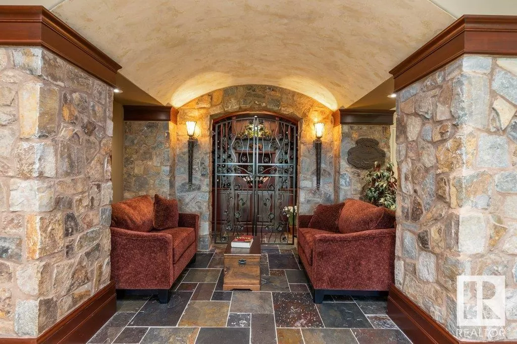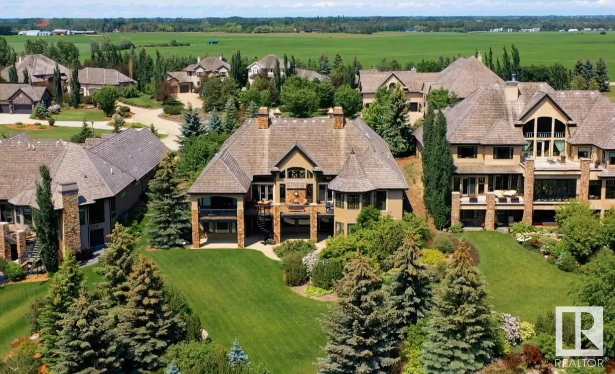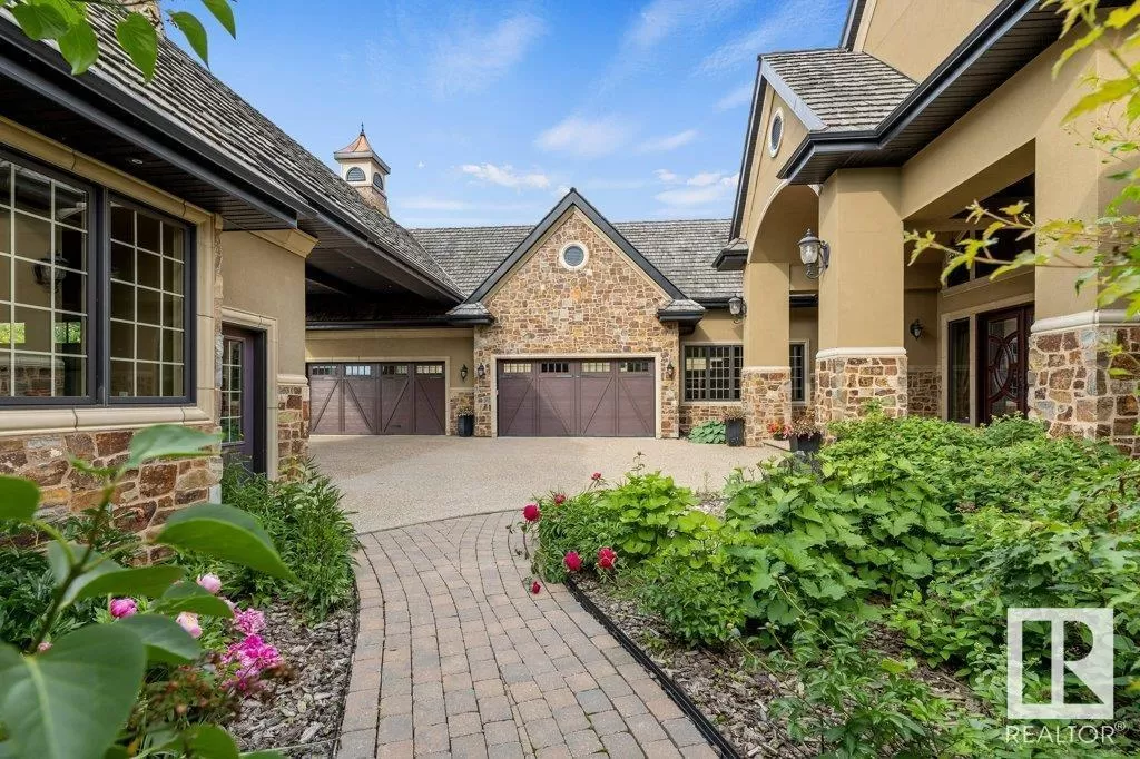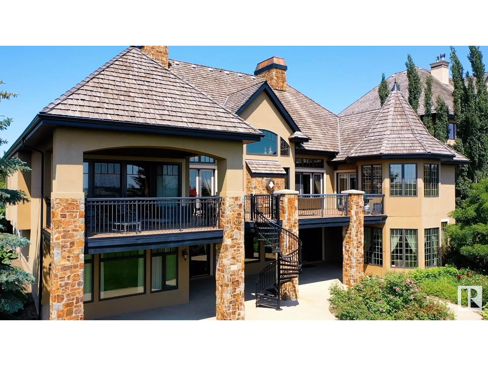 This STUNNING, Audie Benson Estate Homes show home is the grandest of the grand! 7100 sq ft of luxury living on 0.72 acres of gorgeous river valley views in prestigious Riverstone Pointe, minutes out of St. Albert & to the Anthony Henday. The curb appeal is unsurpassed with drive through portico, natural iron stone, copper chimneys & capolas & iron security gate. Step across the threshold into an elegant foyer w/views of the Great Room, boasting 20' open vaulted cherry ceilings, an exquisite formal dining room & music room, wall-to-wall & floor to ceiling library complete with sliding ladder. The den is perfectly situated off the luxurious master suite & library. This magnificent walkout bungalow boasts awards for best kitchen & best ensuite in North America. Main floor access to the south backing upper patio, with views of double waterfalls, bridges & rose gardens. The lower level includes a gathering room, games room, theatre, old world wine cellar, fitness room w/massage area, and SO MUCH MORE! (id:27476)