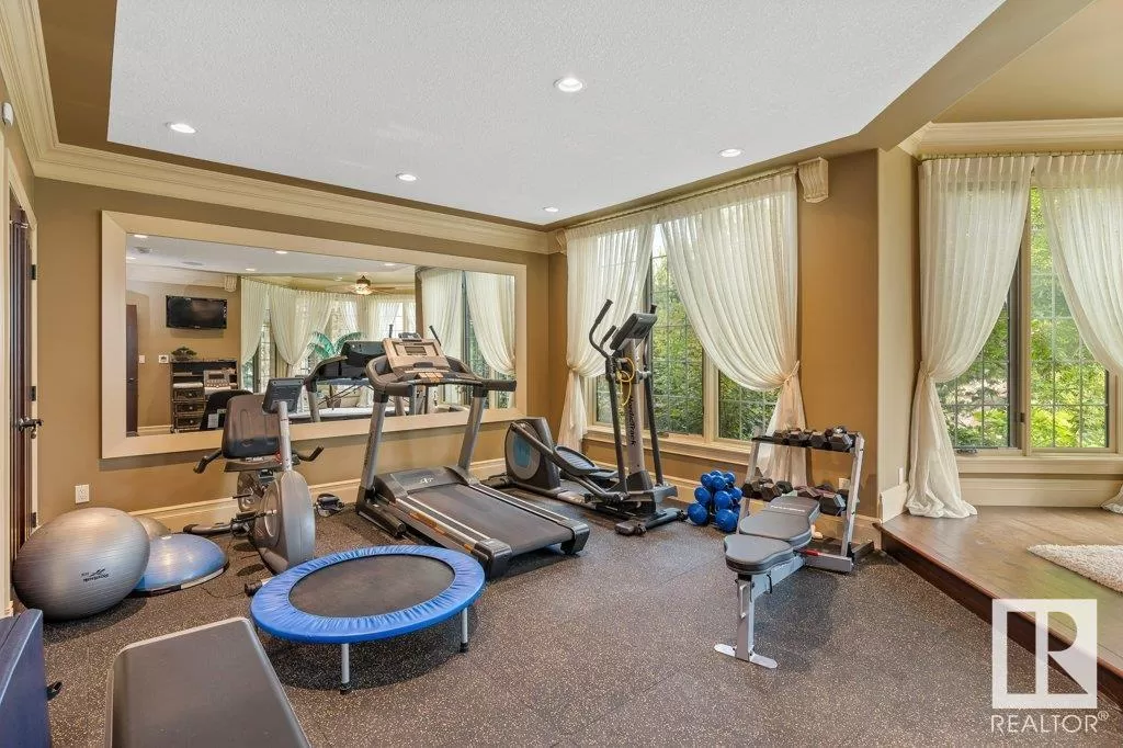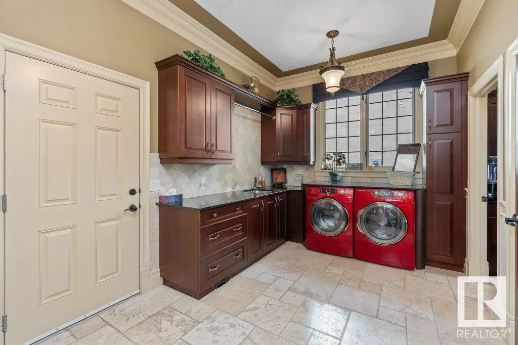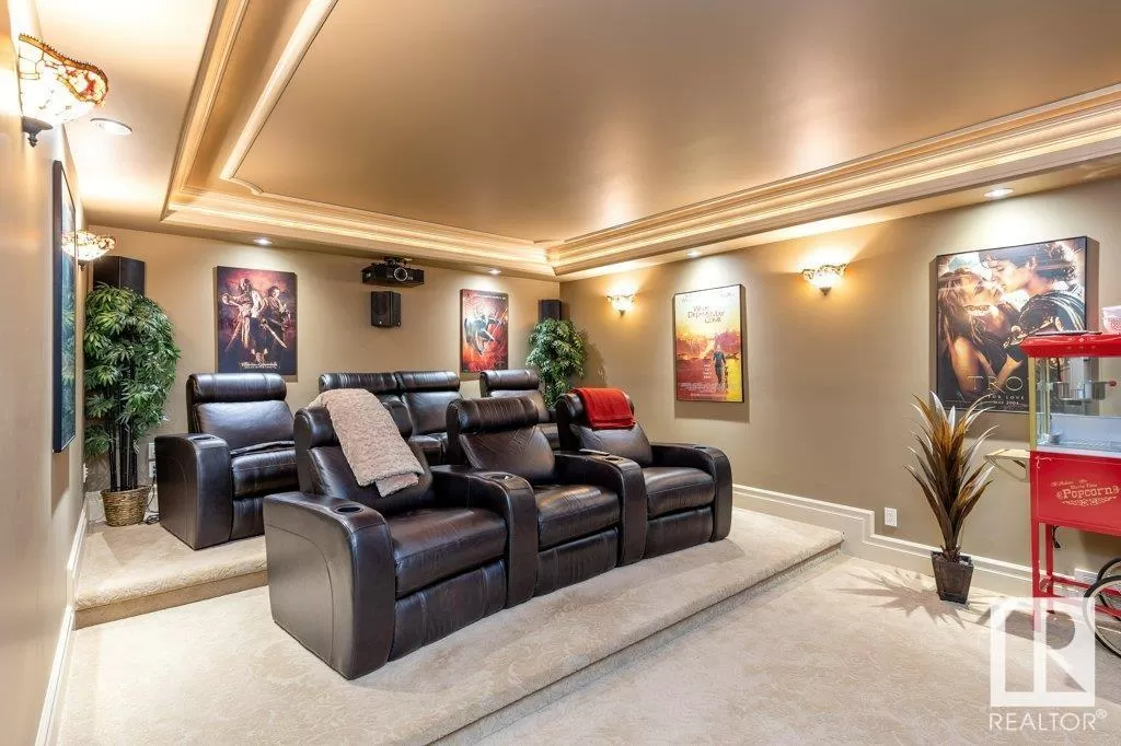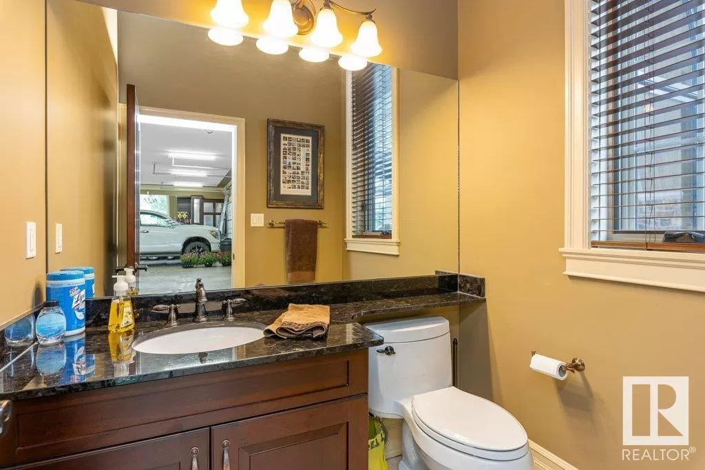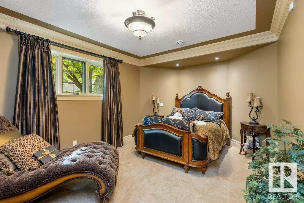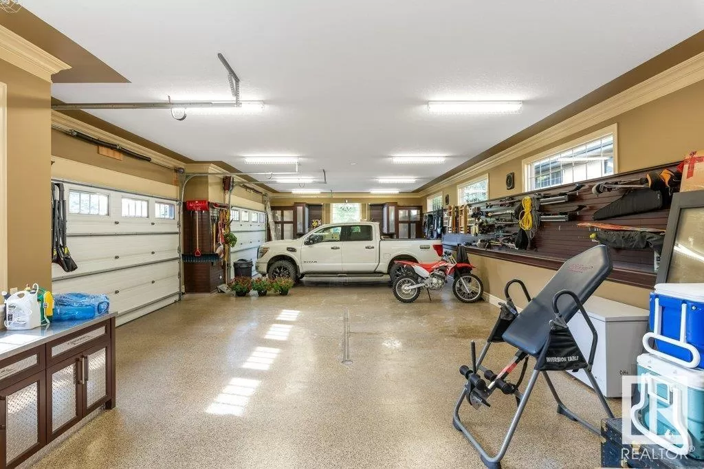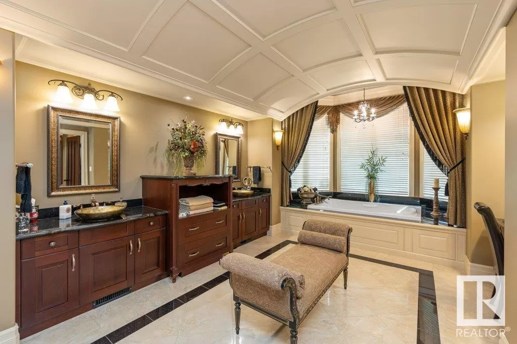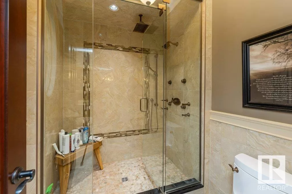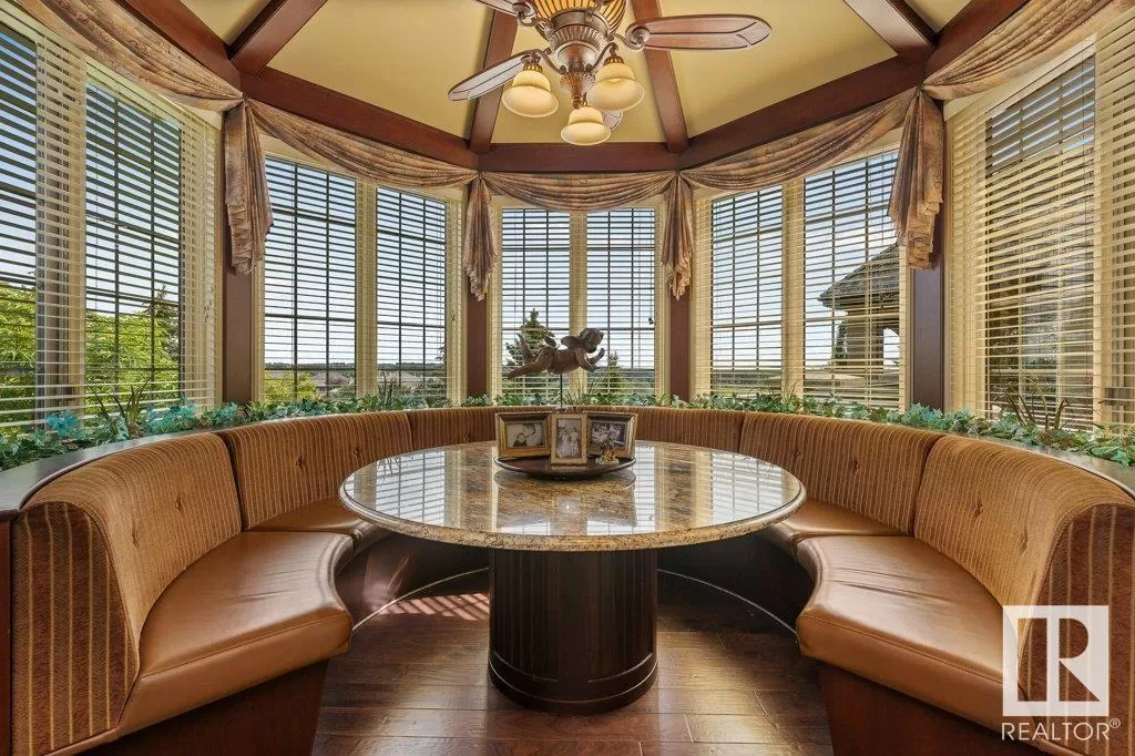 This STUNNING, Audie Benson Estate Homes show home is the grandest of the grand! 7100 sq ft of luxury living on 0.72 acres of gorgeous river valley views in prestigious Riverstone Pointe, minutes out of St. Albert & to the Anthony Henday. The curb appeal is unsurpassed with drive through portico, natural iron stone, copper chimneys & capolas & iron security gate. Step across the threshold into an elegant foyer w/views of the Great Room, boasting 20' open vaulted cherry ceilings, an exquisite formal dining room & music room, wall-to-wall & floor to ceiling library complete with sliding ladder. The den is perfectly situated off the luxurious master suite & library. This magnificent walkout bungalow boasts awards for best kitchen & best ensuite in North America. Main floor access to the south backing upper patio, with views of double waterfalls, bridges & rose gardens. The lower level includes a gathering room, games room, theatre, old world wine cellar, fitness room w/massage area, and SO MUCH MORE! (id:27476)