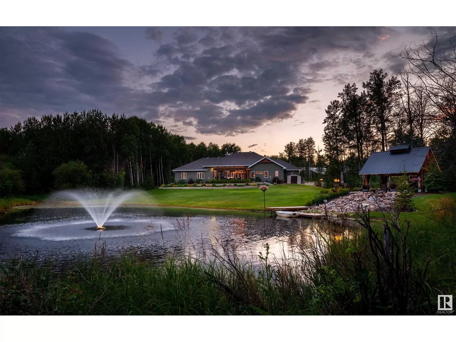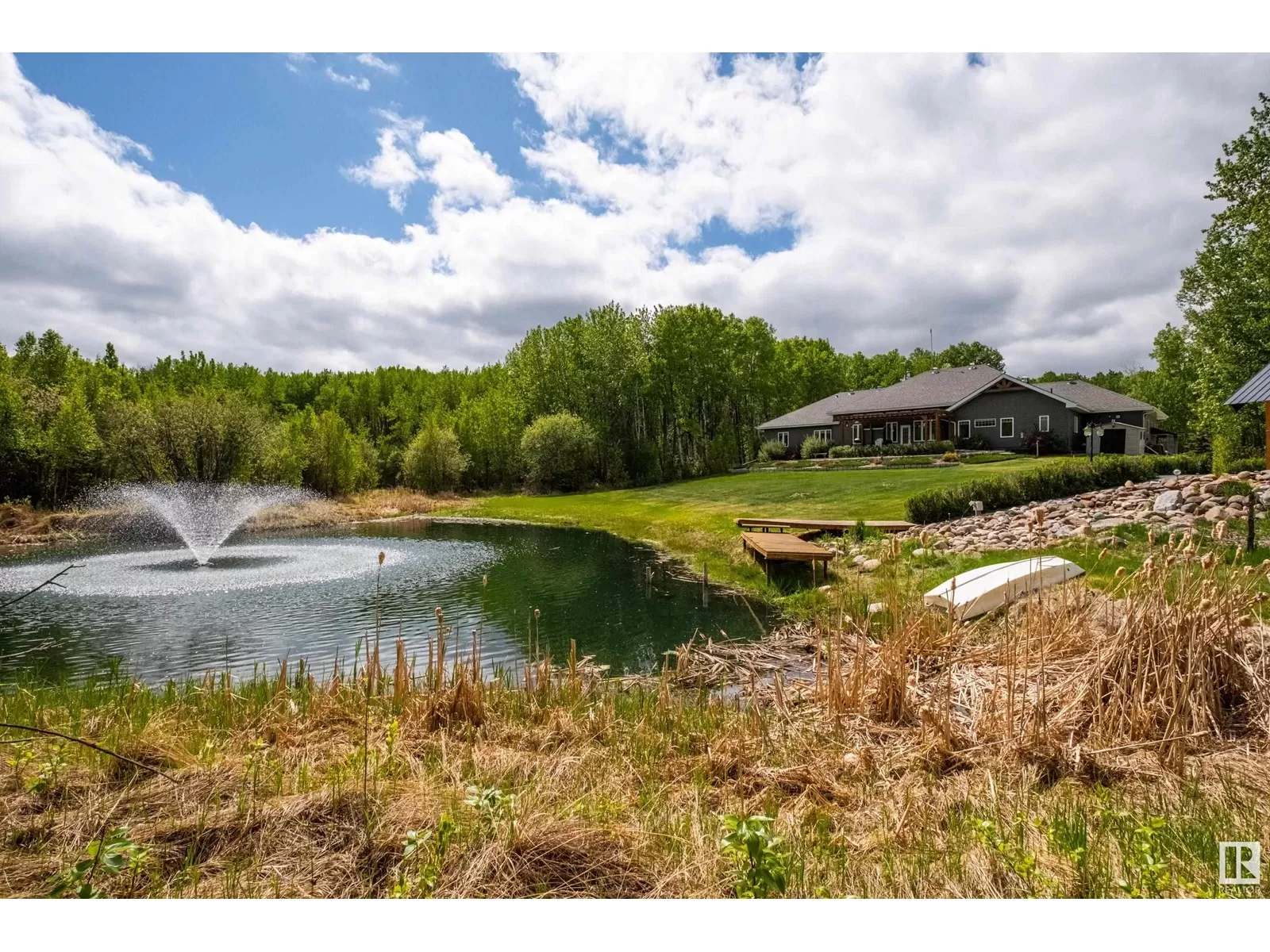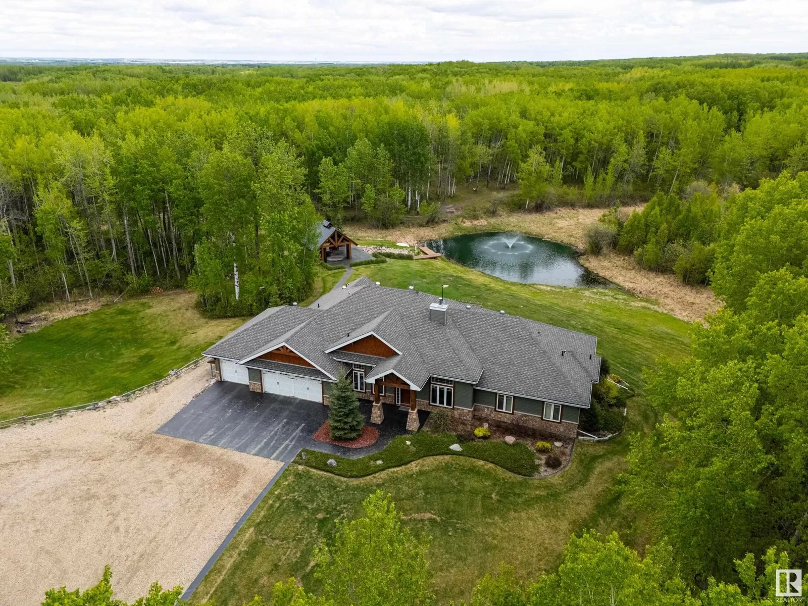 Once in a lifetime a home like this presents itself to the market. A truly stunning & detailed estate awaits for you to experience and is sitting on a picturesque & private 39 acres in Sturgeon County. With over 2,900 sqft of living space, this ranch style bungalow exudes class, sophistication & charm with numerous entertaining areas. Some of the numerous upgrades include in floor heat in the home, newer boiler - washer/dryer & dishwasher, the o/s triple garage w/ oversized doors & the guest house, fireplace heating throughout the duct work in the main home, tankless hot water heater, 9 & 12ft ceilings which allow TONS of natural light, insulated interior walls, granite counters & high end appliances. The 30x30 guest home can easily be turned back into a garage & also features a 3pce bath, kitchen & its own septic tank. The 1,900sqft shop is meticulous & is the perfect set up for a business. All of this & so much more awaits you and your family. (id:27476)