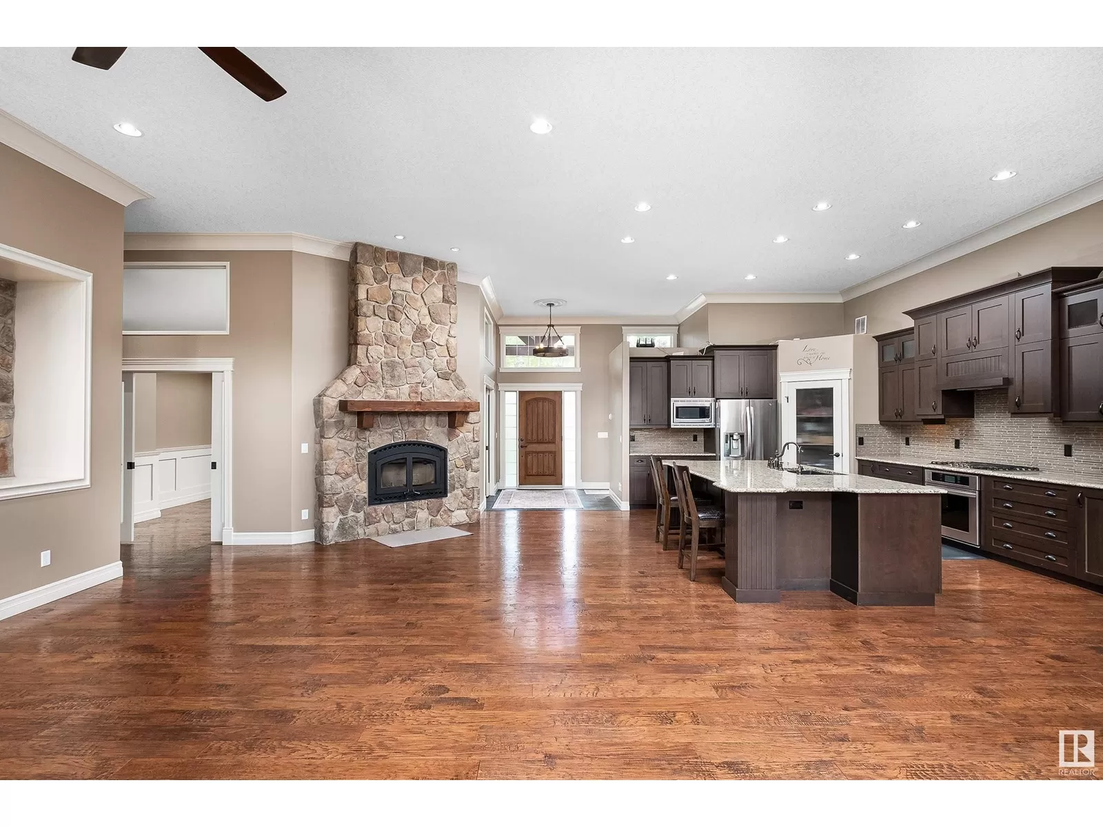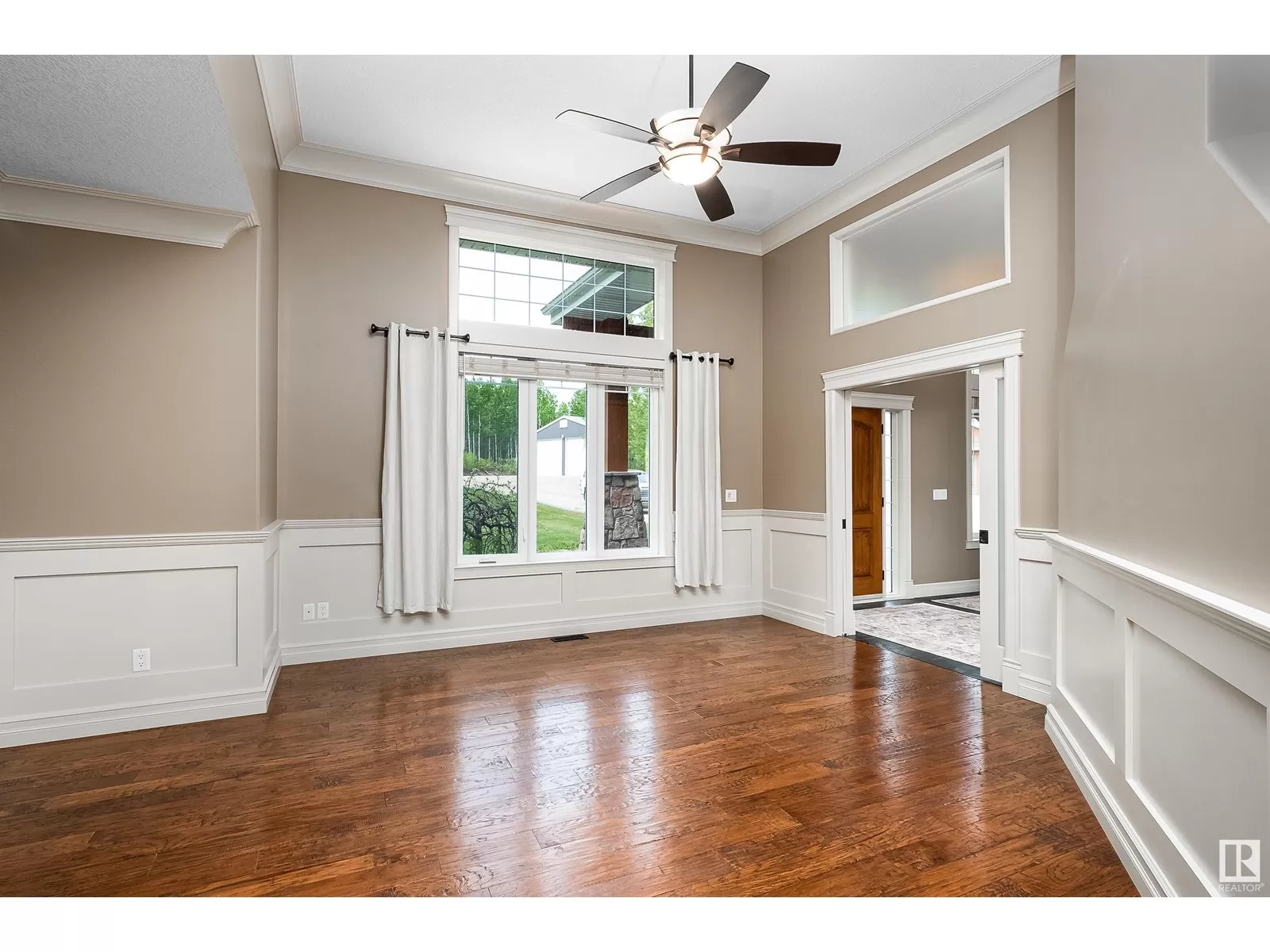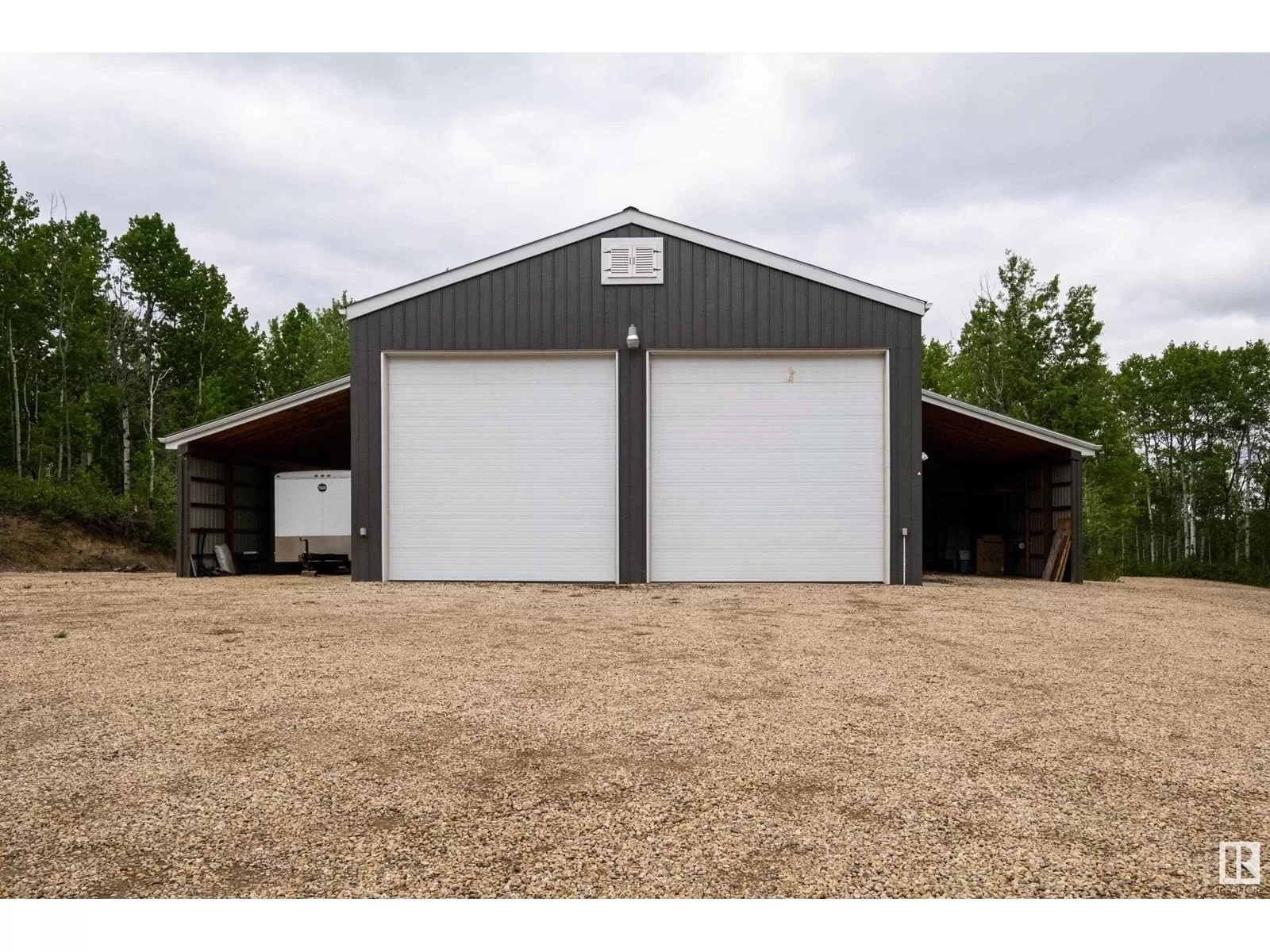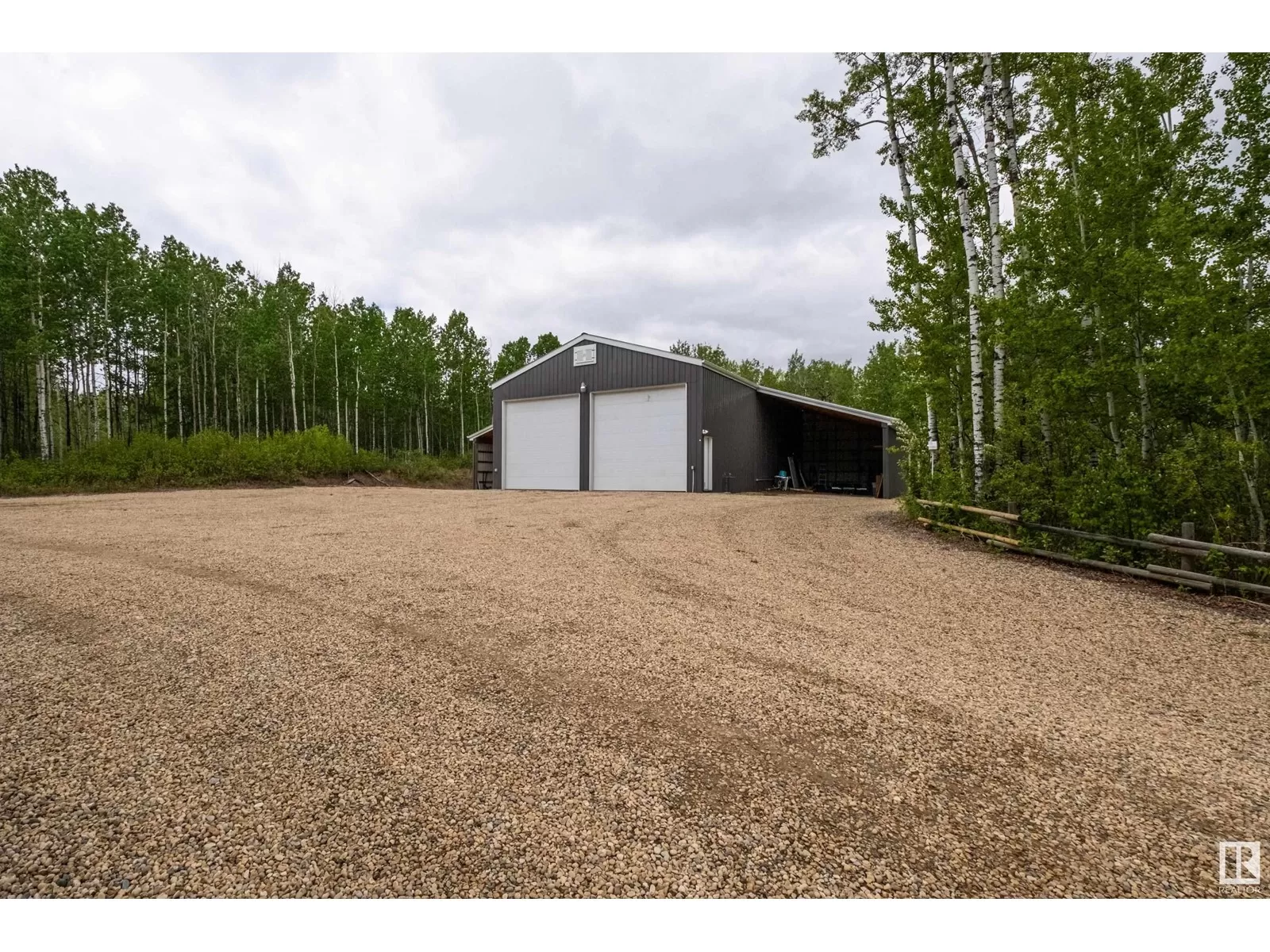 Once in a lifetime a home like this presents itself to the market. A truly stunning & detailed estate awaits for you to experience and is sitting on a picturesque & private 39 acres in Sturgeon County. With over 2,900 sqft of living space, this ranch style bungalow exudes class, sophistication & charm with numerous entertaining areas. Some of the numerous upgrades include in floor heat in the home, newer boiler - washer/dryer & dishwasher, the o/s triple garage w/ oversized doors & the guest house, fireplace heating throughout the duct work in the main home, tankless hot water heater, 9 & 12ft ceilings which allow TONS of natural light, insulated interior walls, granite counters & high end appliances. The 30x30 guest home can easily be turned back into a garage & also features a 3pce bath, kitchen & its own septic tank. The 1,900sqft shop is meticulous & is the perfect set up for a business. All of this & so much more awaits you and your family. (id:27476)