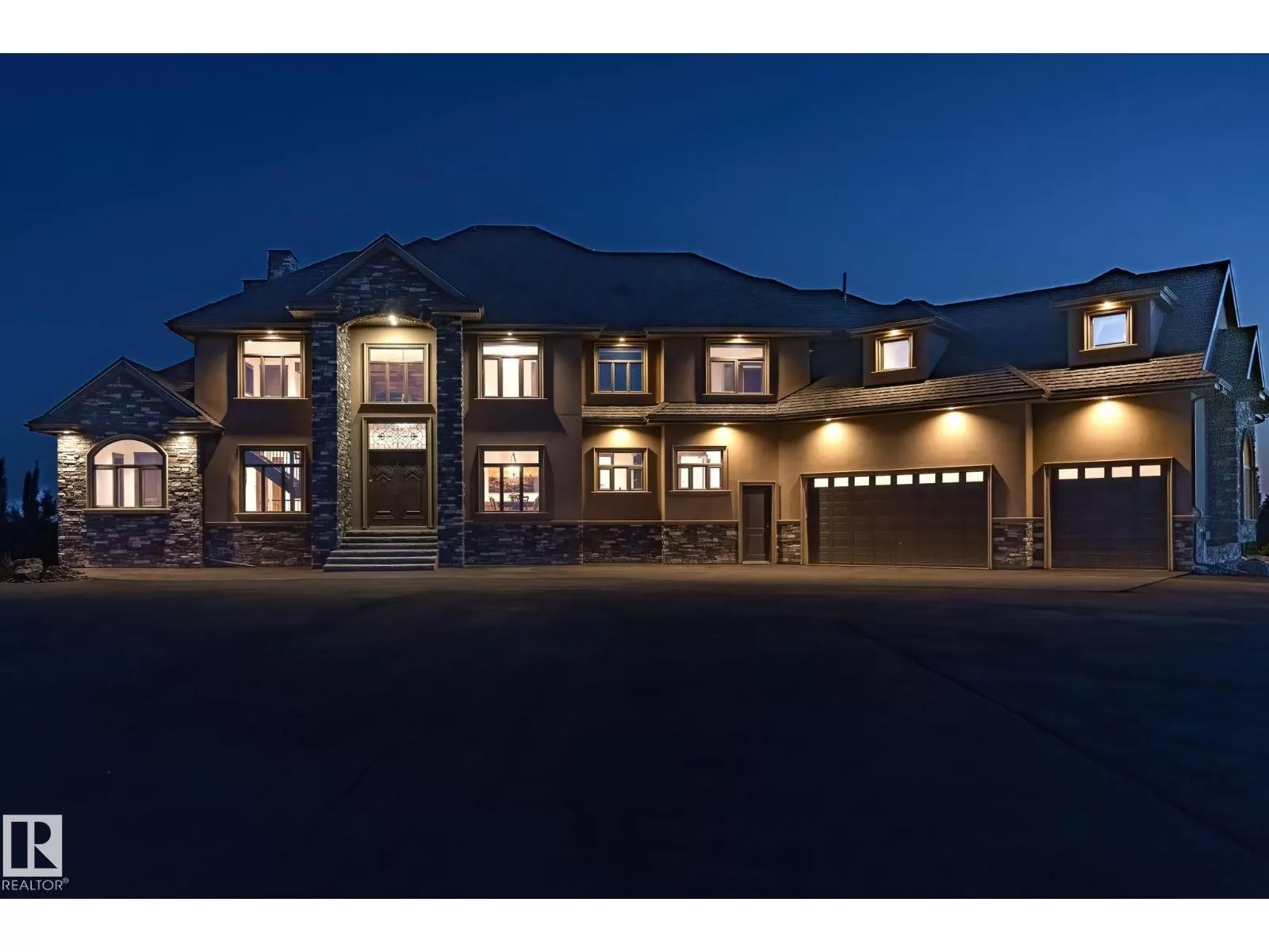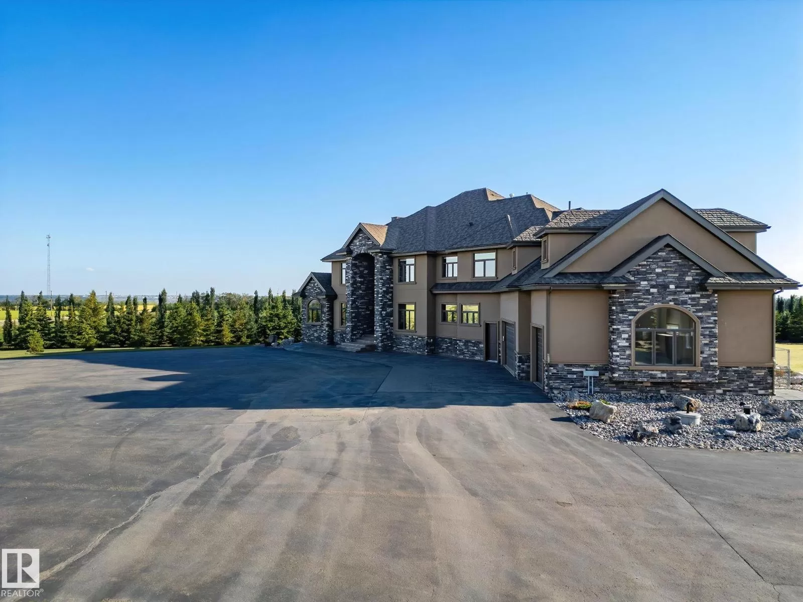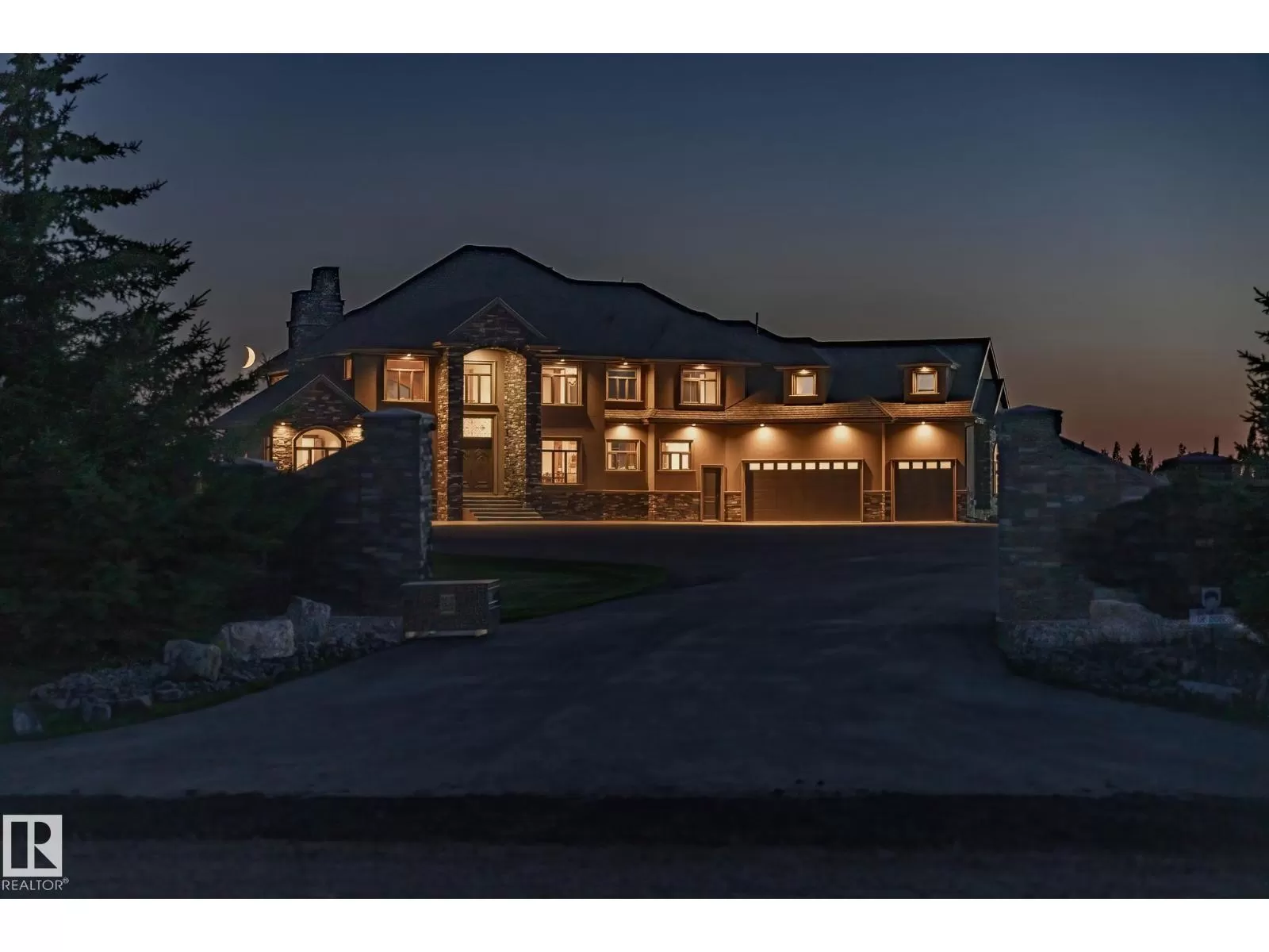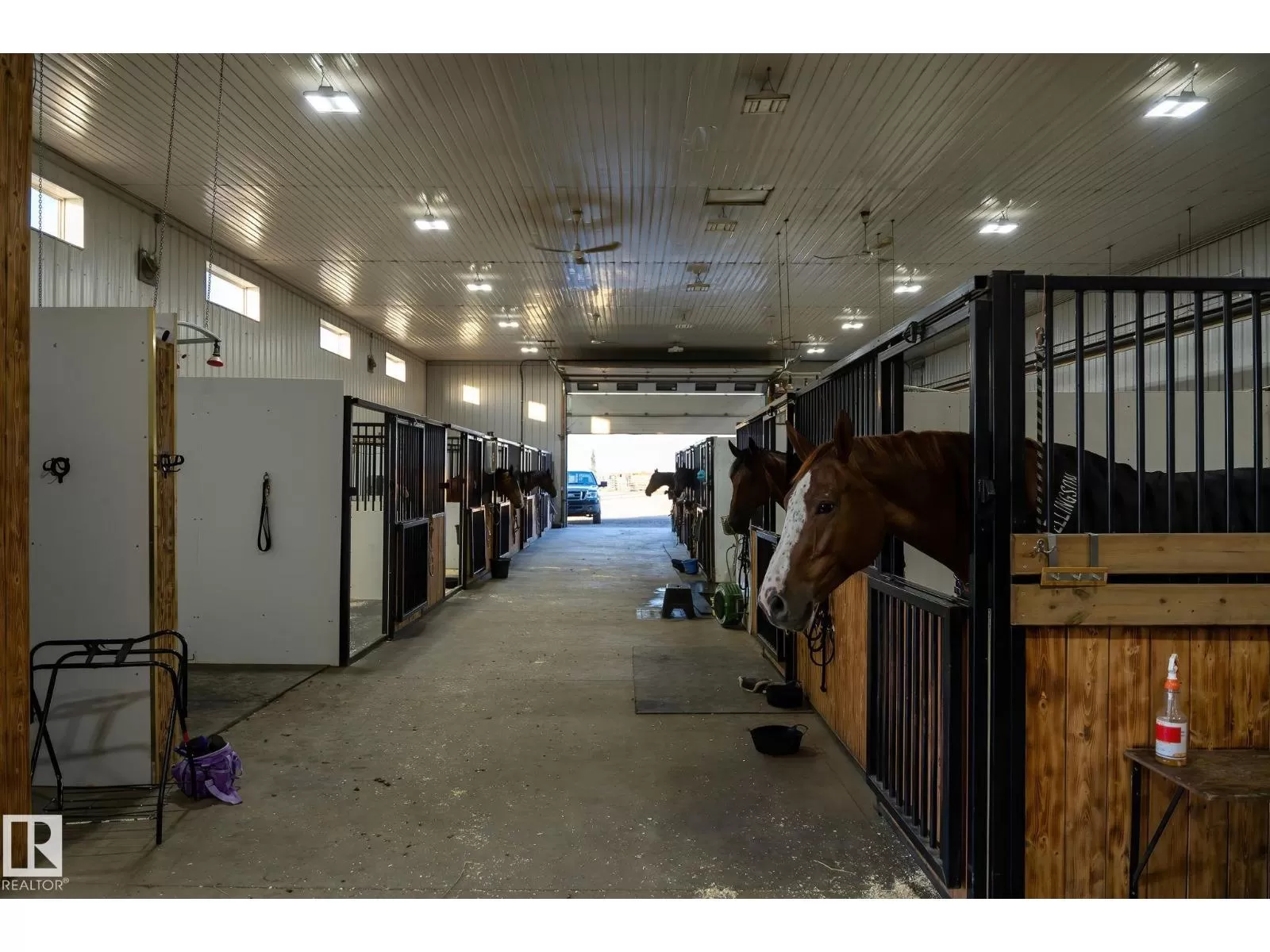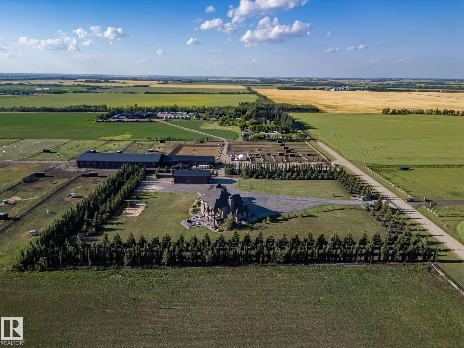 This is a rare opportunity to own a property that truly has it all. Situated on 146 beautifully rolling acres, this estate blends luxury living with premier equestrian amenities, just minutes from St. Albert and Edmonton. The custom-built 5680 sqft home wows you from the second you drive up. Soaring ceilings, expansive windows and breathtaking views from every angle. The gourmet kitchen, grand living areas and multiple fireplaces create an inviting atmosphere for both everyday living as well as entertainment. The walkout basement offers additional living space, a games room and direct access to your stunning yard. Equestrian enthusiasts will be impressed with the world-famous Golden Oaks horse barn, indoor riding arena, and multiple corrals. Whether you're training, boarding, or simply enjoying your passion for horses, it doesn't get better than this. The land features a blend of pasture, treed areas, and open spaces, offering endless possibilities for recreation, agriculture, or future development. (id:27476)
