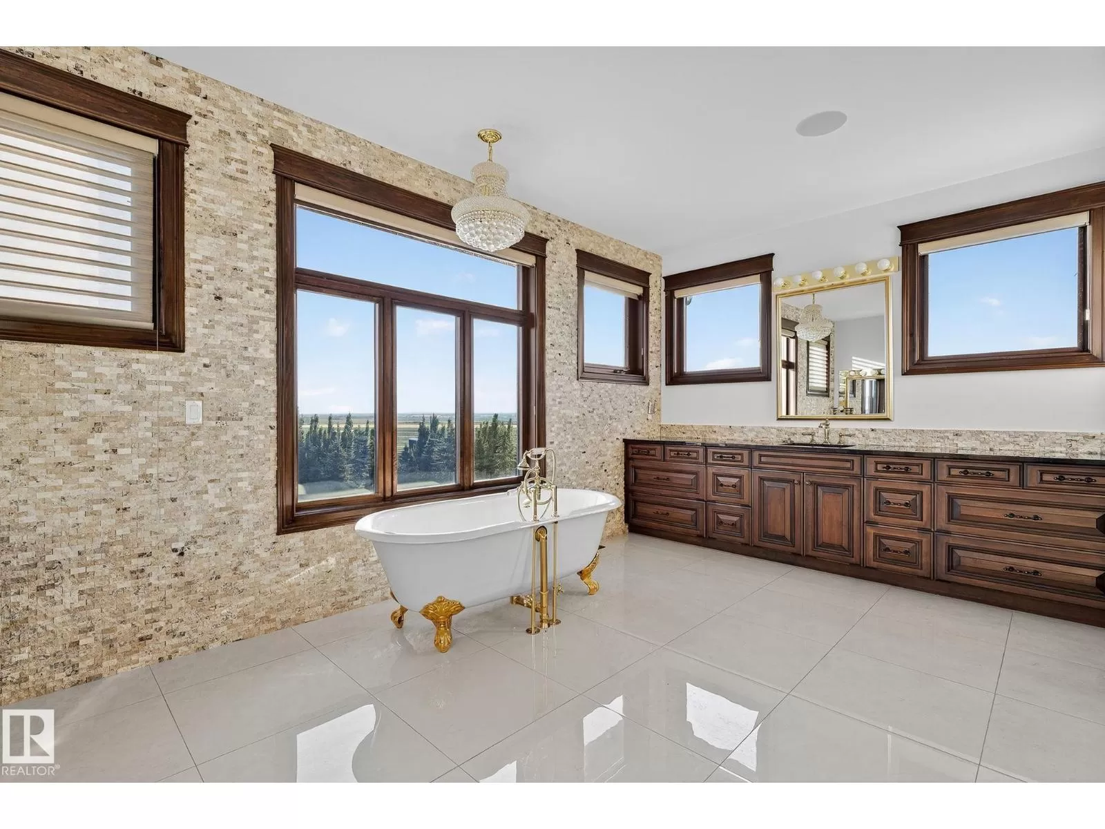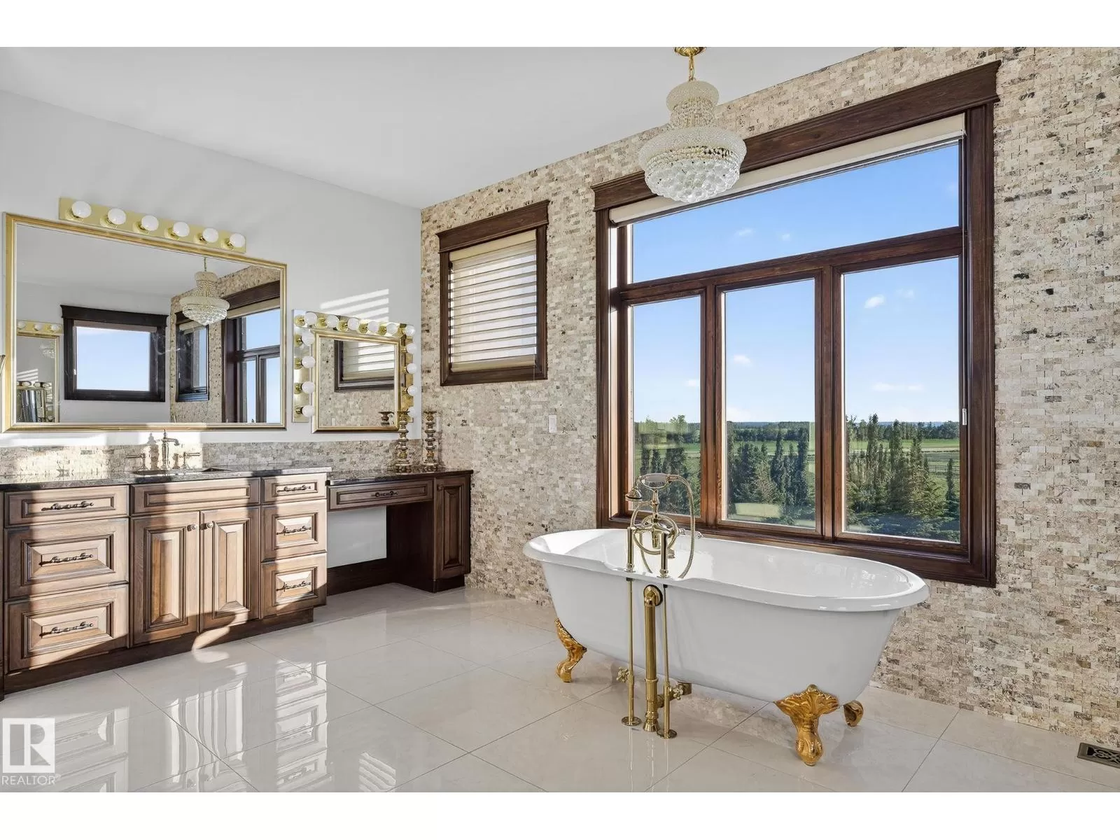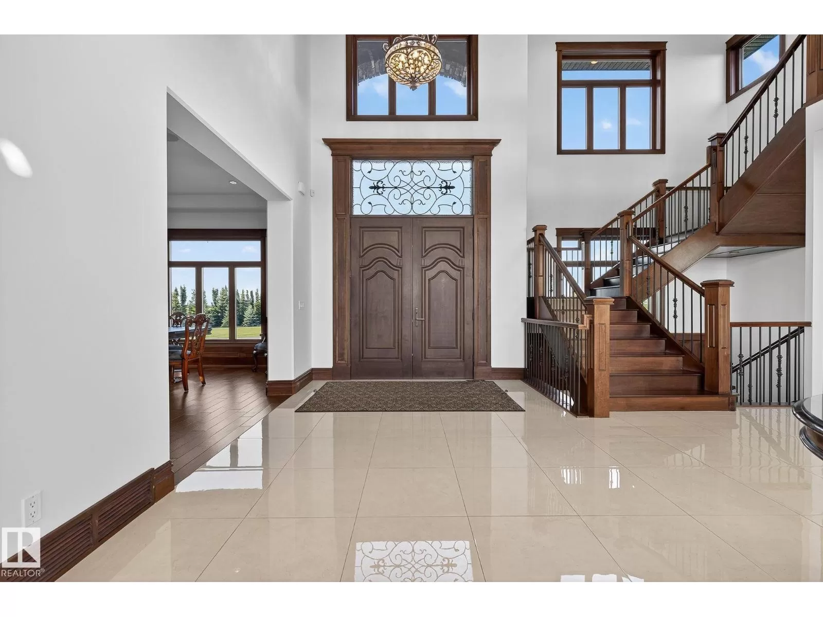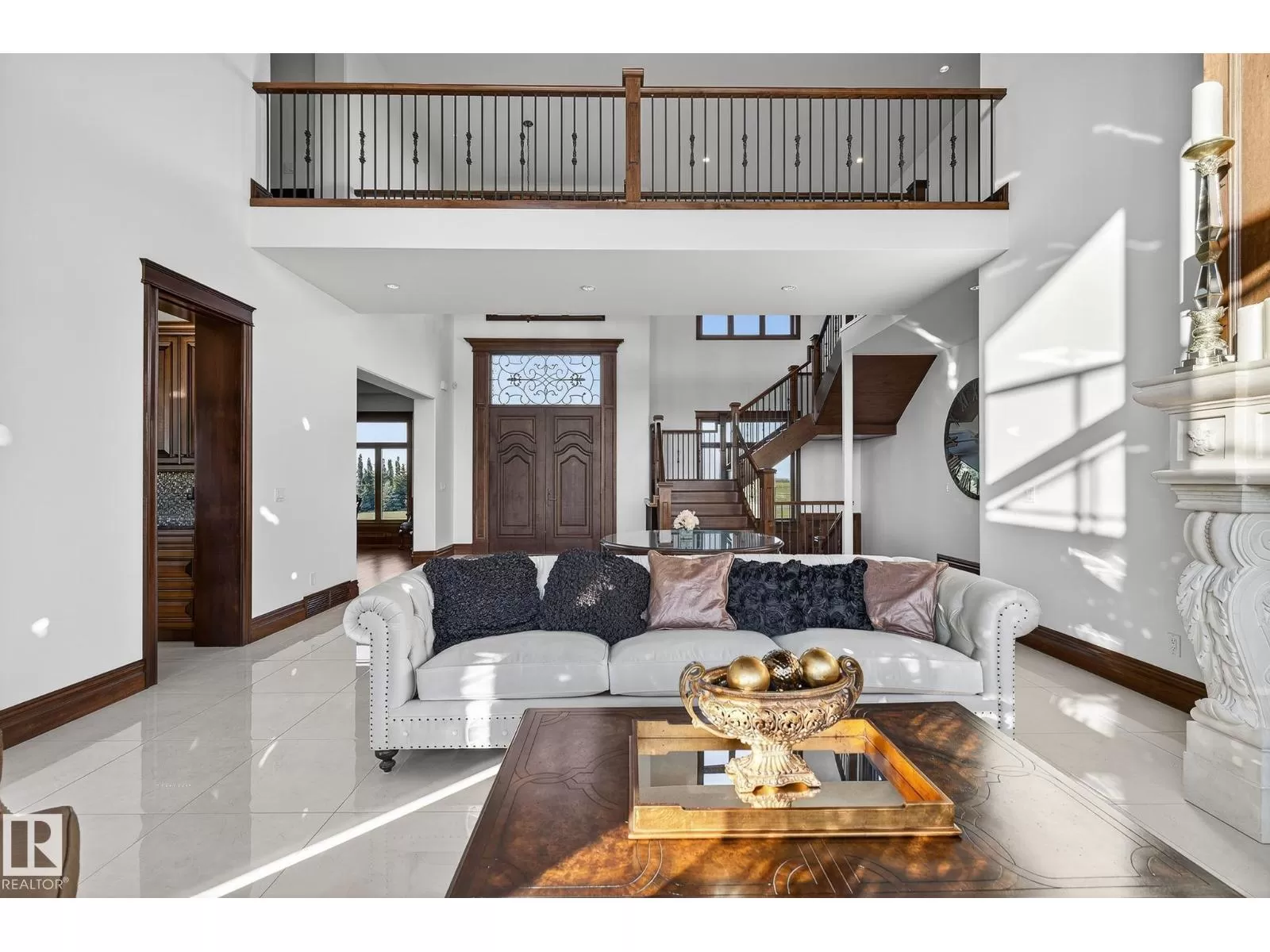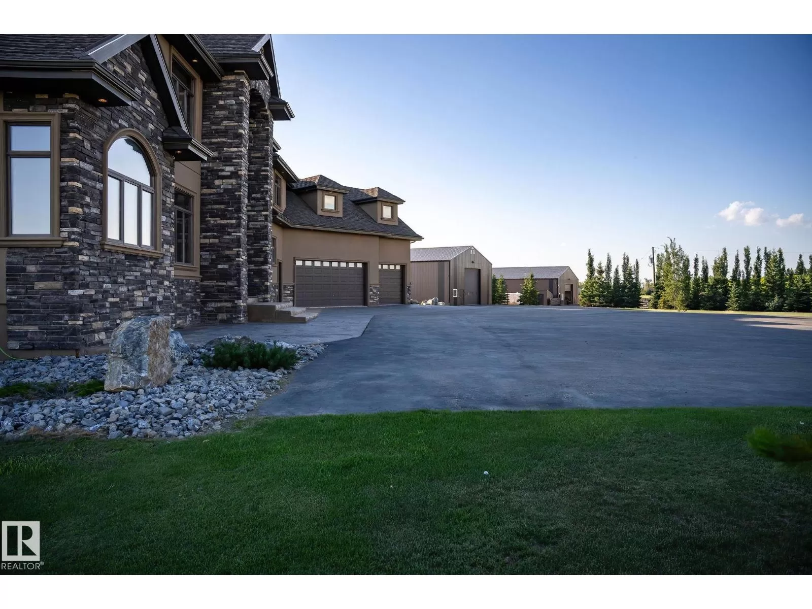 This is a rare opportunity to own a property that truly has it all. Situated on 146 beautifully rolling acres, this estate blends luxury living with premier equestrian amenities, just minutes from St. Albert and Edmonton. The custom-built 5680 sqft home wows you from the second you drive up. Soaring ceilings, expansive windows and breathtaking views from every angle. The gourmet kitchen, grand living areas and multiple fireplaces create an inviting atmosphere for both everyday living as well as entertainment. The walkout basement offers additional living space, a games room and direct access to your stunning yard. Equestrian enthusiasts will be impressed with the world-famous Golden Oaks horse barn, indoor riding arena, and multiple corrals. Whether you're training, boarding, or simply enjoying your passion for horses, it doesn't get better than this. The land features a blend of pasture, treed areas, and open spaces, offering endless possibilities for recreation, agriculture, or future development. (id:27476)