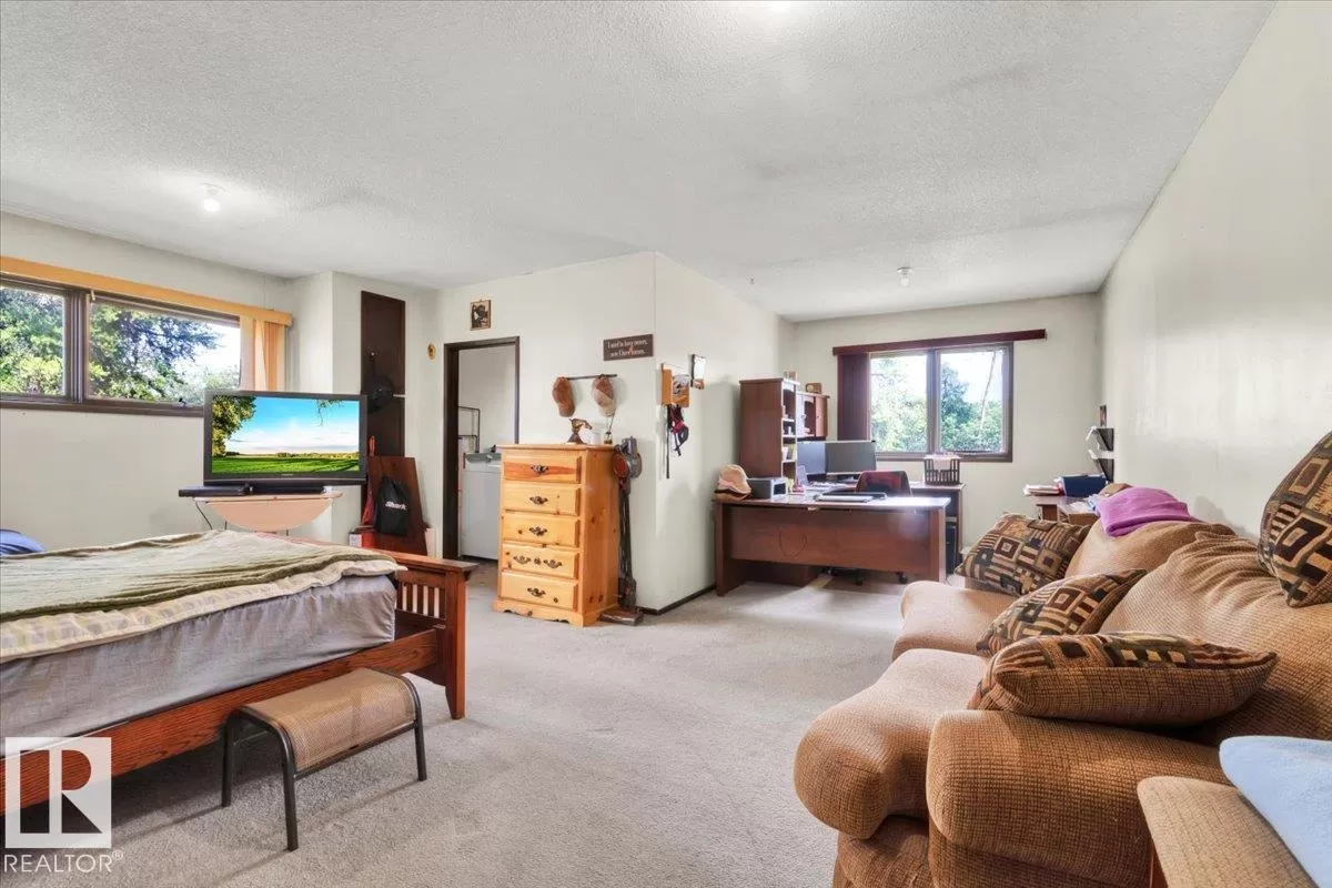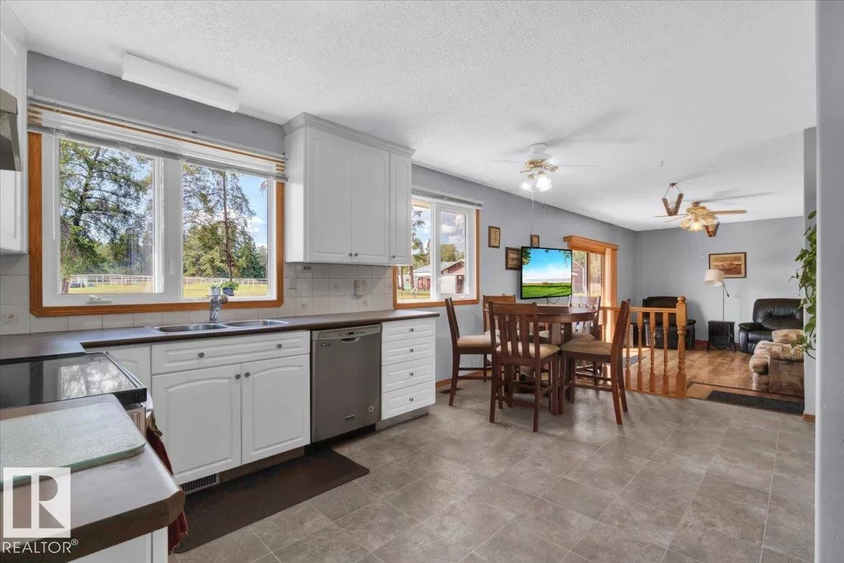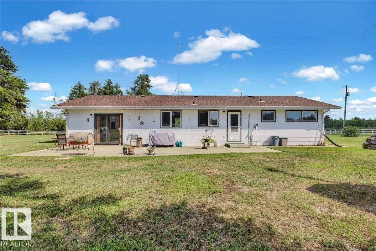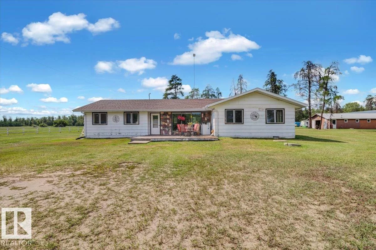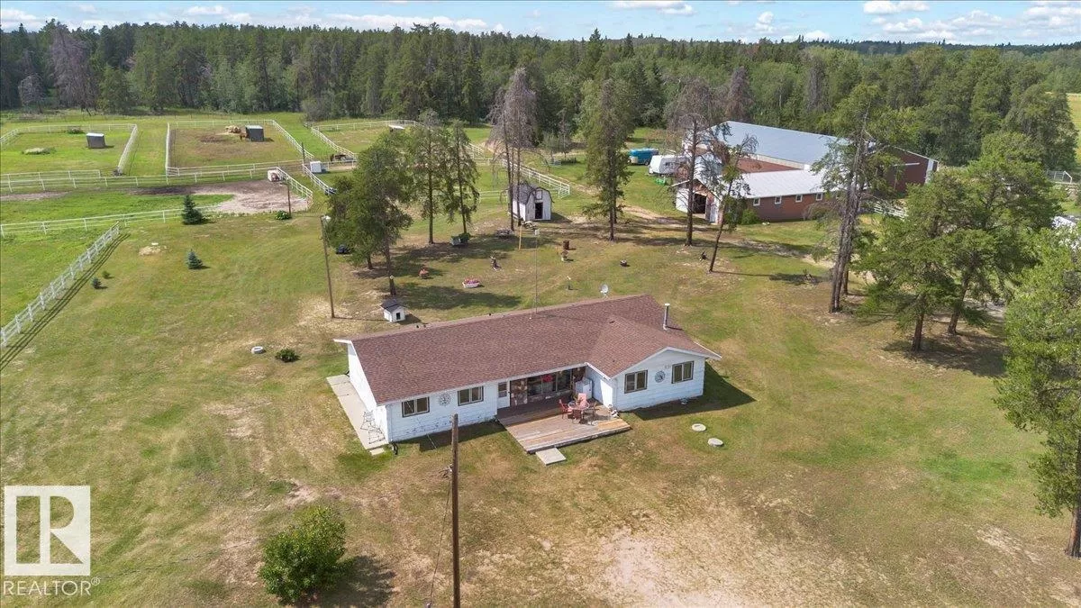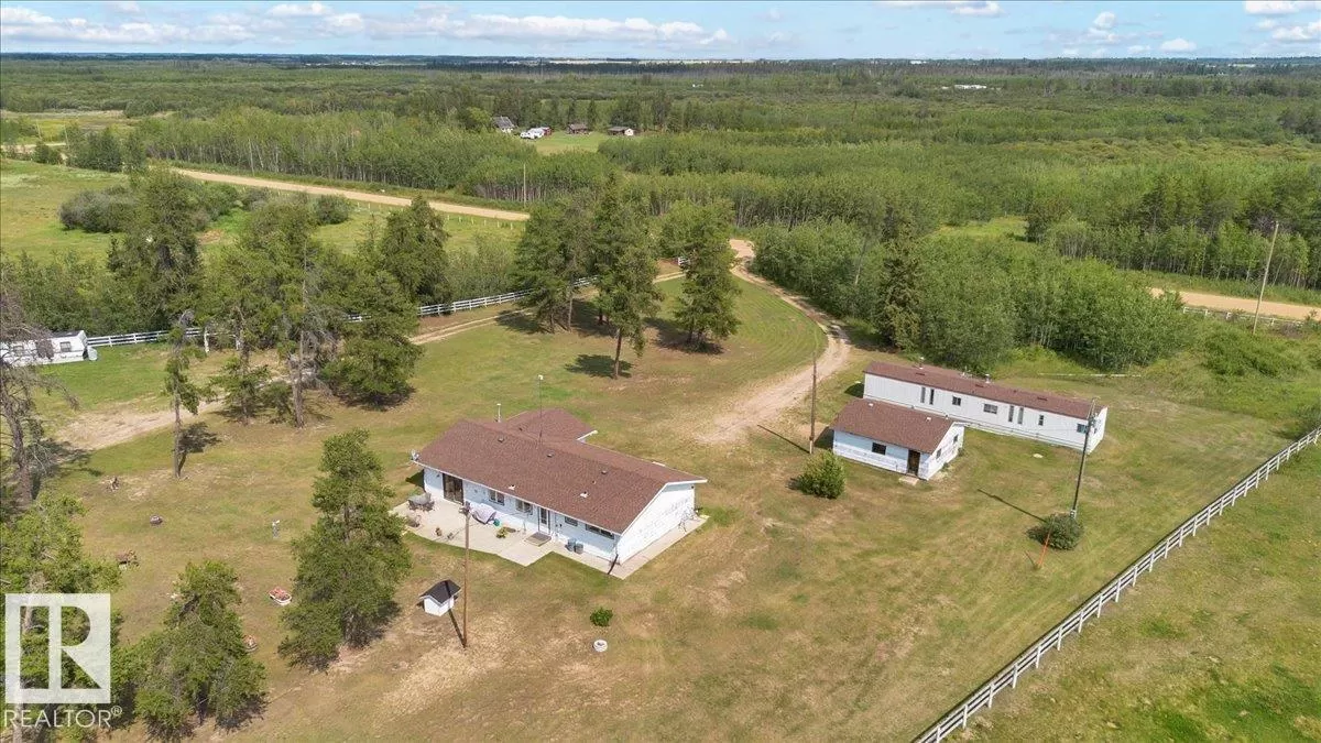 Saddle up for the lifestyle youâve been dreaming of! This 61-acre equestrian paradise offers an indoor riding arena, 10-stall barn (with potential for 11), heated barn & tack room, 5 corrals with horse shelters, 3 grain bins, 2 fuel tanks, and secure metal fencing. One bored well services the house and mobile, while the second feeds the barn and corrals (no auto waterers). Peacefully tucked away on a quiet road, the 1,900 sq ft slab-on-grade home features 3 bedrooms, 1.5 baths, 2 living rooms, plus a versatile rec roomâperfect as a 4th bedroom, office, or future master with ensuite. A second dwelling awaits plumbing upgrades for full use. With a double-detached garage, serene views, and room to make it your own, this property is ready for its new owners to make it truly shine! (id:27476)
