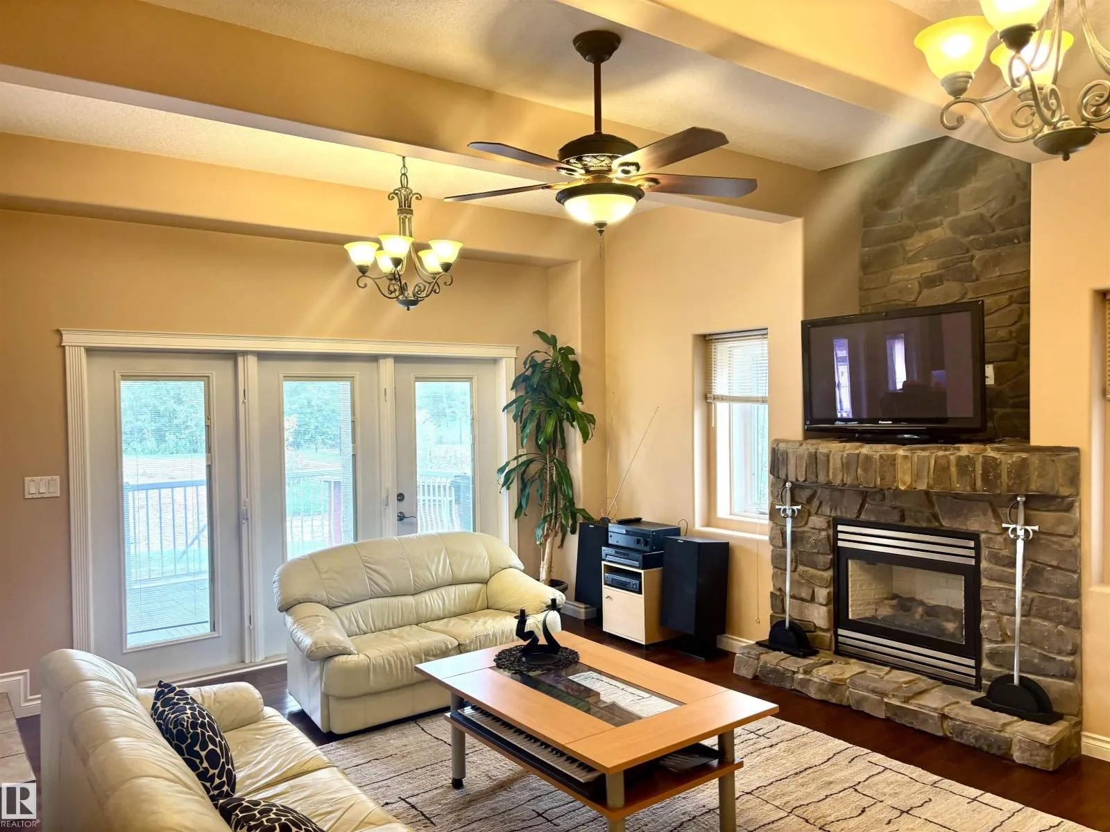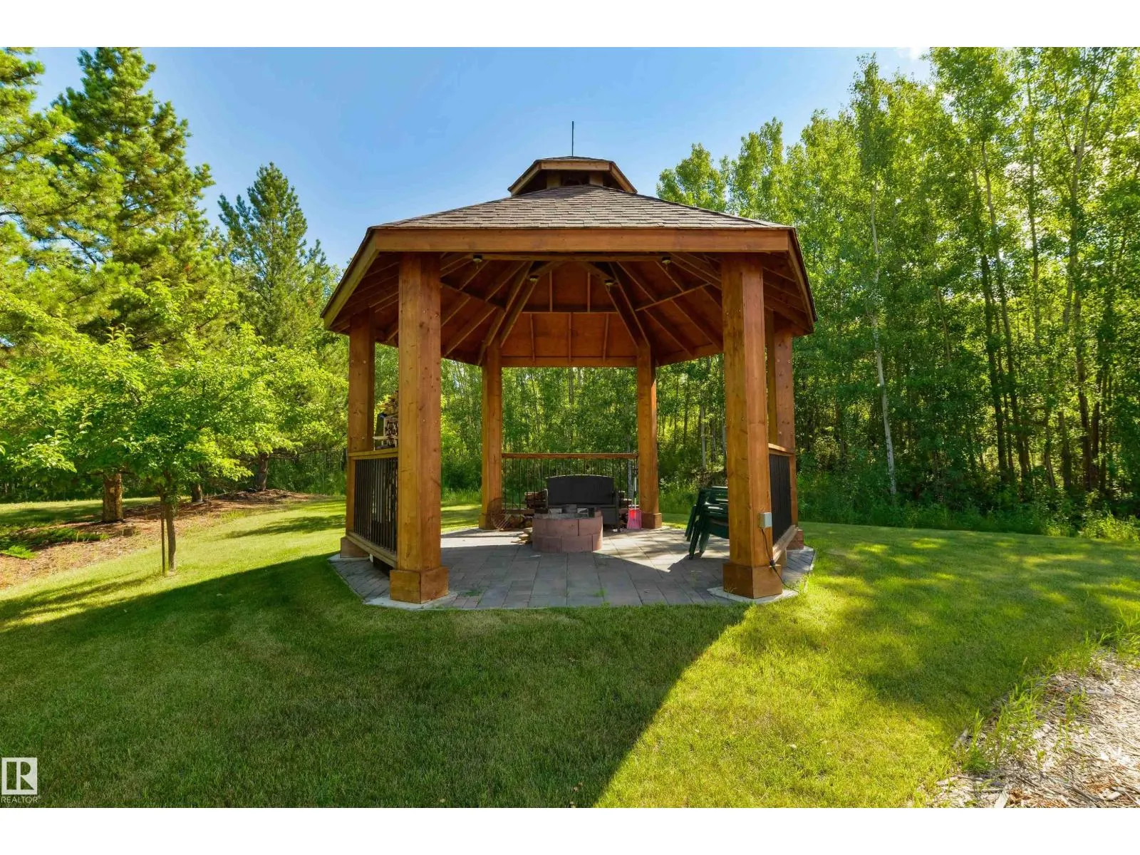 Welcome to the Crossing at the River's Edge subdivision. Located just 10 minutes from St. Albert and 10 minutes from Edmonton, this property is tucked away for privacy. The 0.5-acre lot is serviced with municipal/city water. This immaculate 2 Storey home features a walkout basement at both the front & back of the house, offering a total living area of 3,944.3 sqft [including the basement]. It includes a total of 6 bedrooms & 4 baths, with plenty of windows that allow natural light to fill the space. The main floor boasts a large living room, a kitchen with ample cabinetry & cozy family room complete with a gas fireplace. Upstairs, you will find 4 bedrooms, including the primary suite. The walkout basement comes with a kitchen equipped with all appliances, breakfast island, 2 bedrooms, a full bath & stacked washer/dryer. The backyard has 2 gazebos & fire pit is perfect for gatherings with family & friends. There is access to a balcony from the primary bedroom and the second bedroom. Seller wants it SOLD! (id:27476)