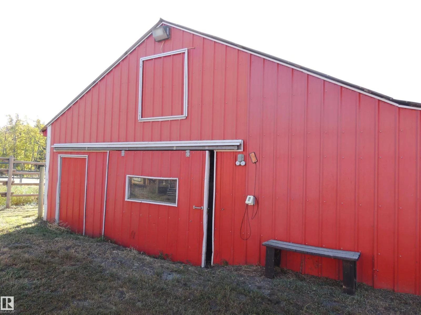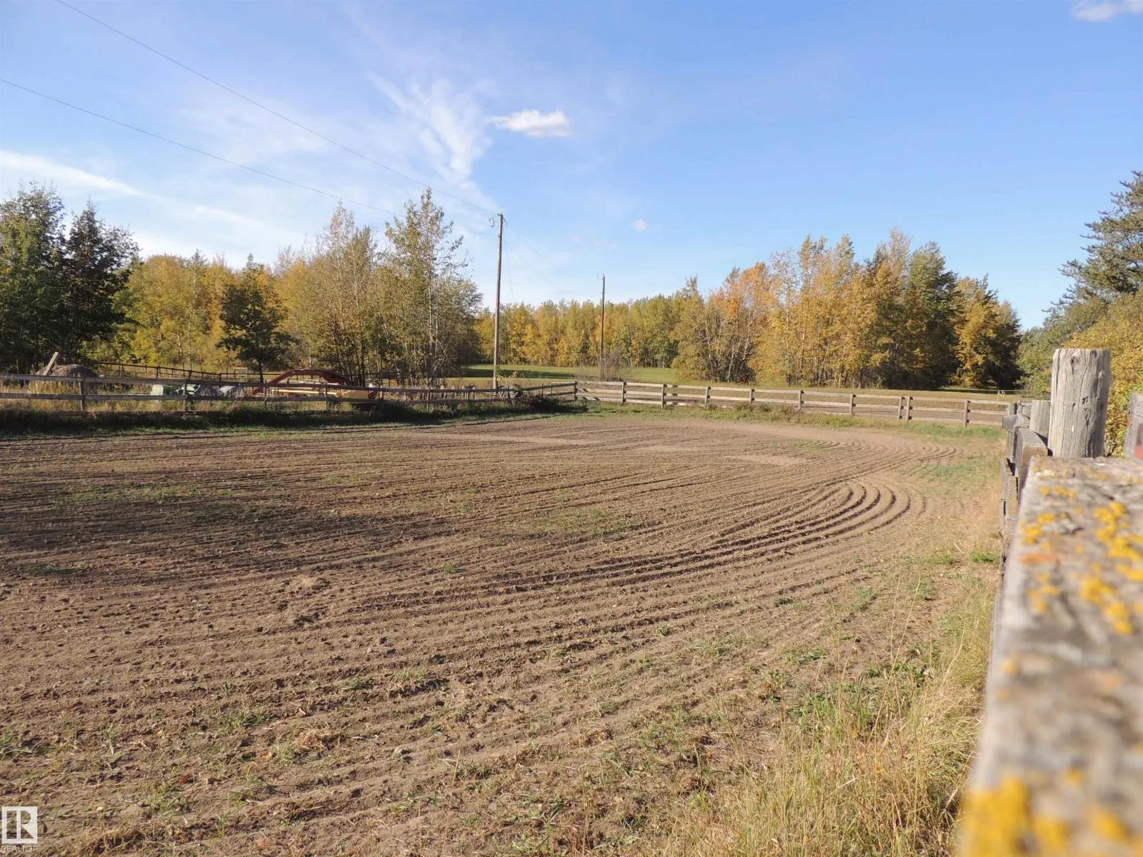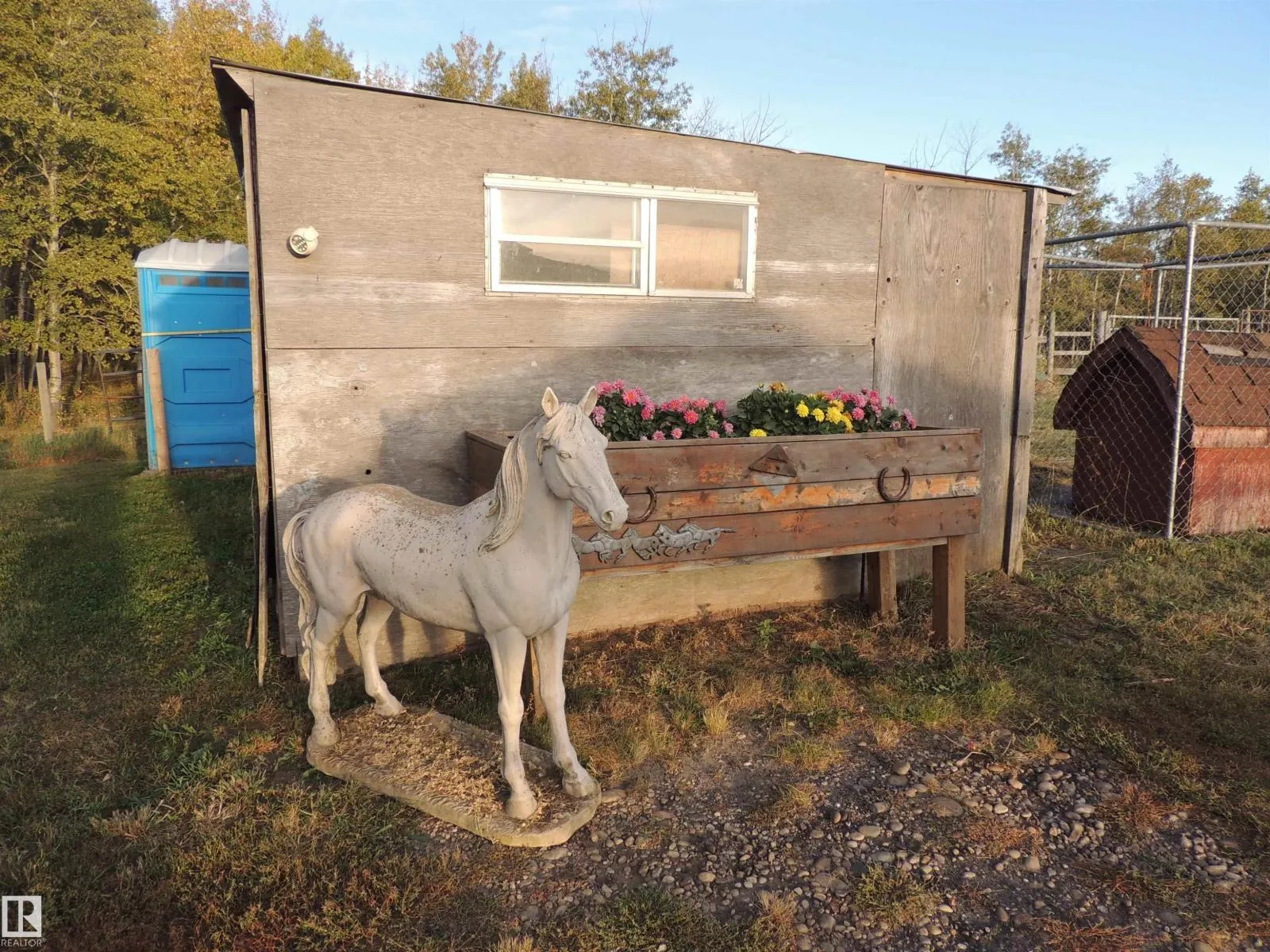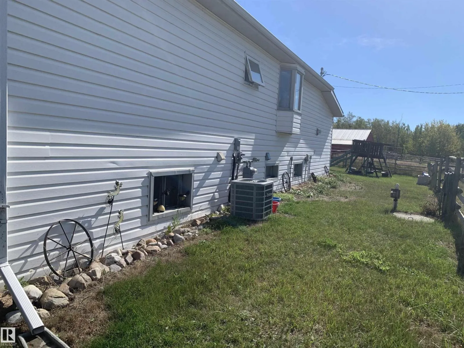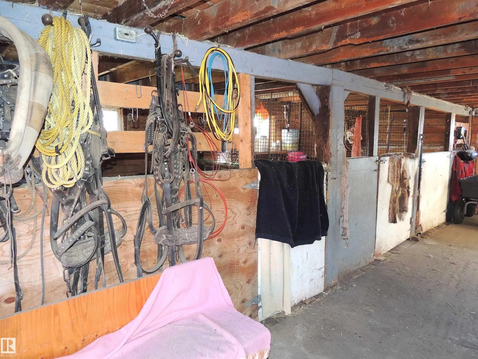 Get your horses ready for their new home on 10.2 acres in Austin Acres. Located just 12 km north of Gibbons, this property is set up with cross fencing, outdoor riding arena, red barn with metal roof/siding, 4 stalls, tack room and loft for hay, new water hydrant and watering bowl. Enter this 1200+sq ft country home and find a freshly painted mud room. A couple steps up is the kitchen with white cabinets, stainless appliances, corian counters and a cozy eating area. A french door leads into the living room, accented with original hardwood floors and electric fireplace. Primary bedroom holds a king size suite with electric fireplace. Enjoy the updated 4 piece bath and two more bedrooms on this level. Downstairs has a newly finished 3 piece bath, 2 more bedrooms, large laundry room and a cozy family entertainment area. Also included - chicken coop, metal workshop with wood heater and tool shed. (id:27476)