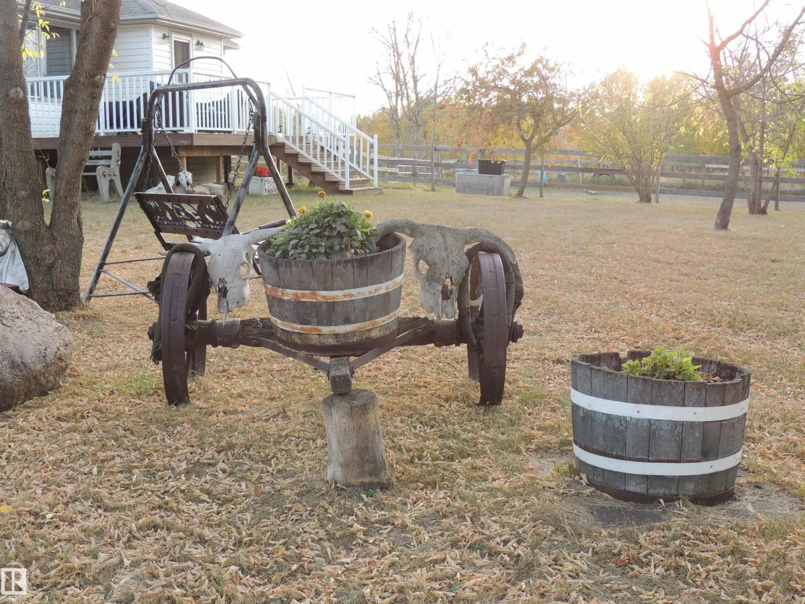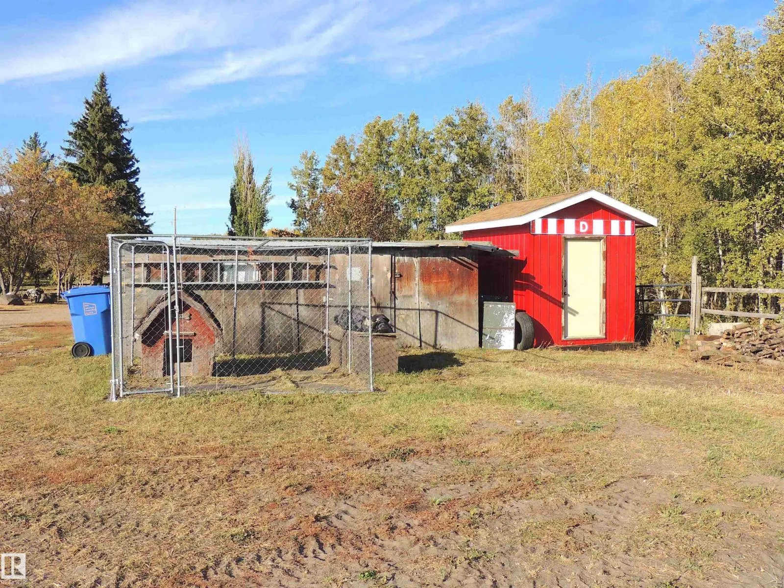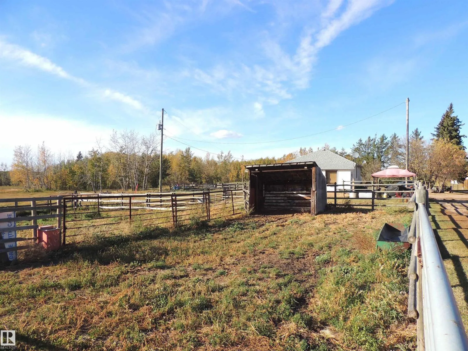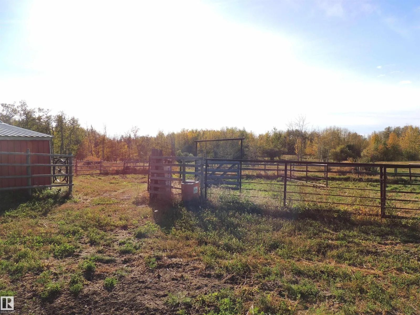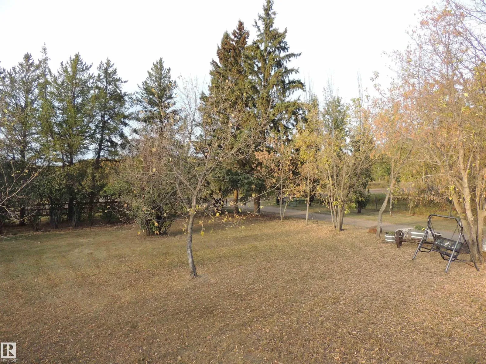 Get your horses ready for their new home on 10.2 acres in Austin Acres. Located just 12 km north of Gibbons, this property is set up with cross fencing, outdoor riding arena, red barn with metal roof/siding, 4 stalls, tack room and loft for hay, new water hydrant and watering bowl. Enter this 1200+sq ft country home and find a freshly painted mud room. A couple steps up is the kitchen with white cabinets, stainless appliances, corian counters and a cozy eating area. A french door leads into the living room, accented with original hardwood floors and electric fireplace. Primary bedroom holds a king size suite with electric fireplace. Enjoy the updated 4 piece bath and two more bedrooms on this level. Downstairs has a newly finished 3 piece bath, 2 more bedrooms, large laundry room and a cozy family entertainment area. Also included - chicken coop, metal workshop with wood heater and tool shed. (id:27476)