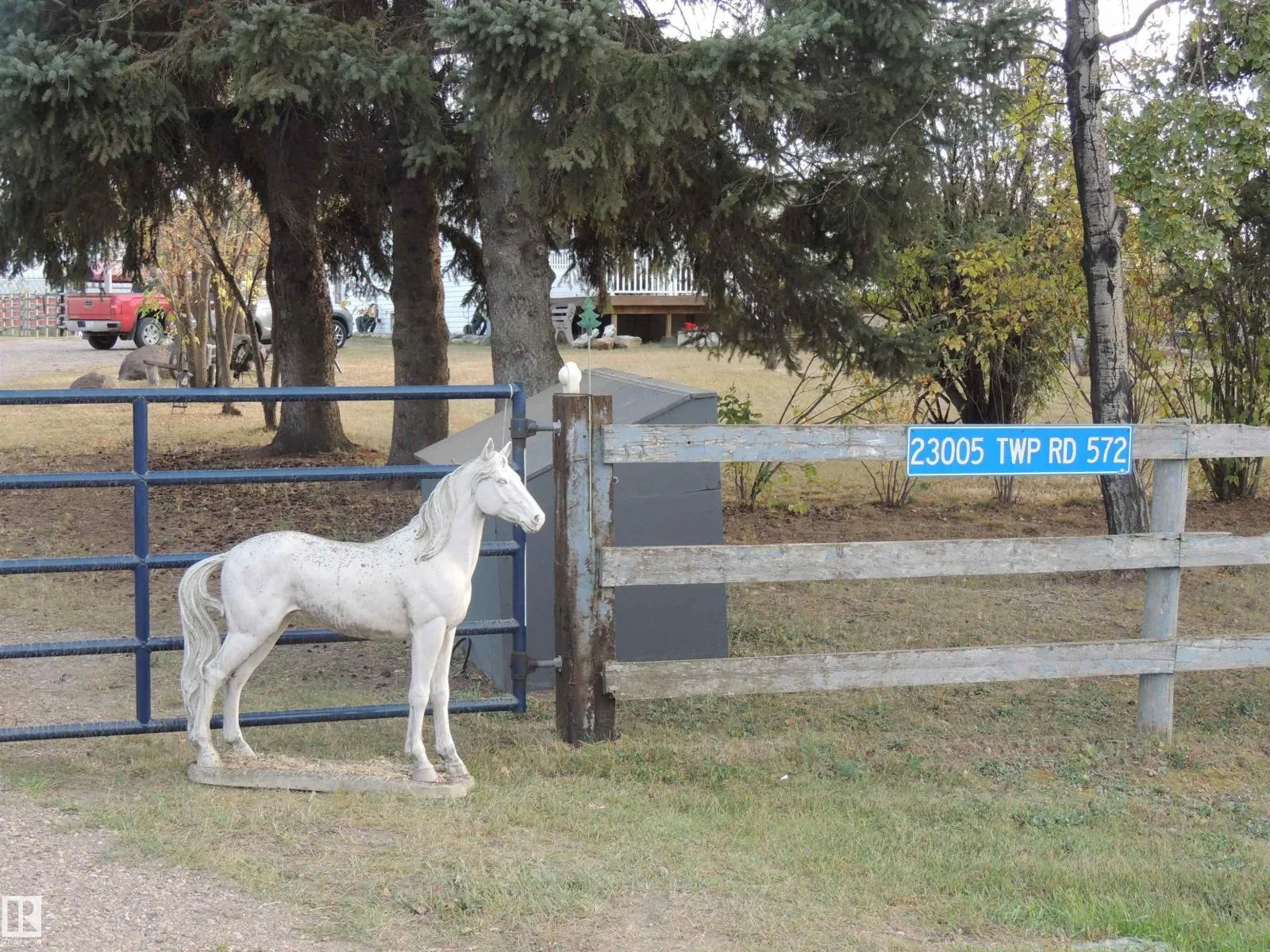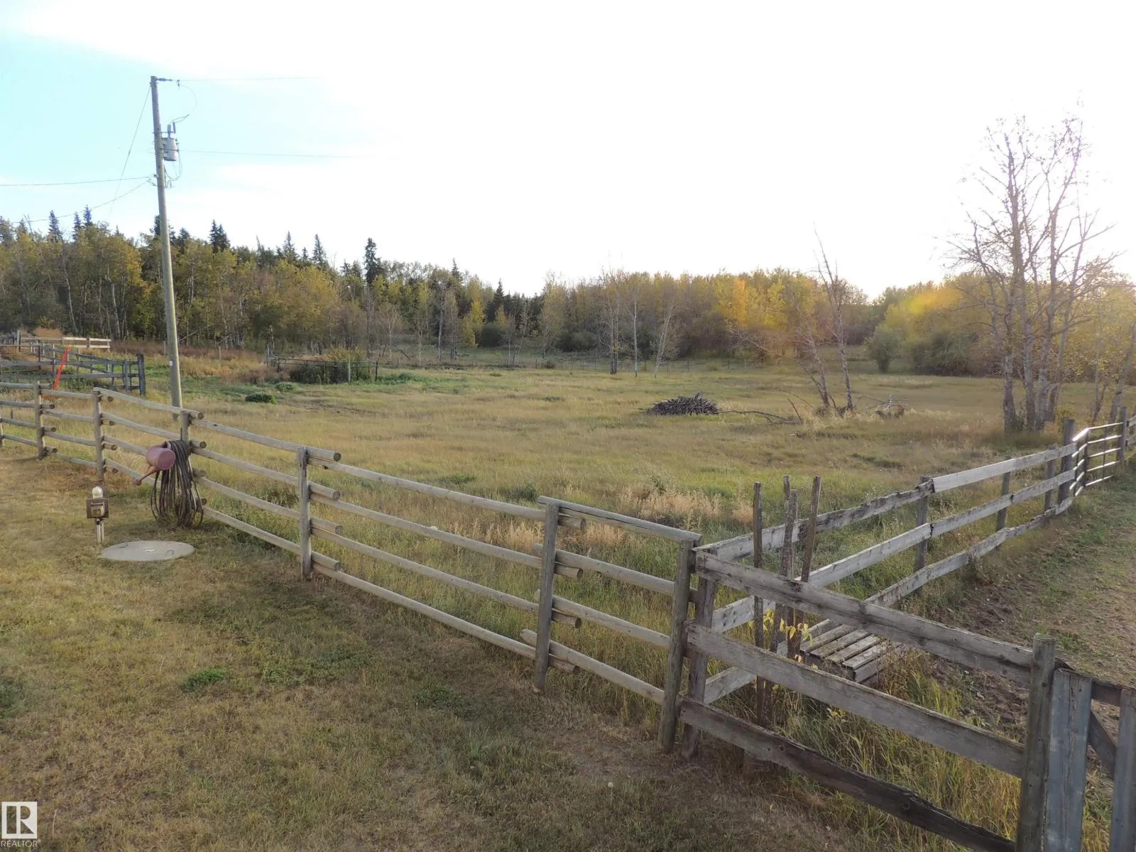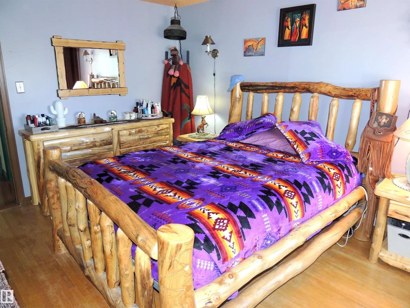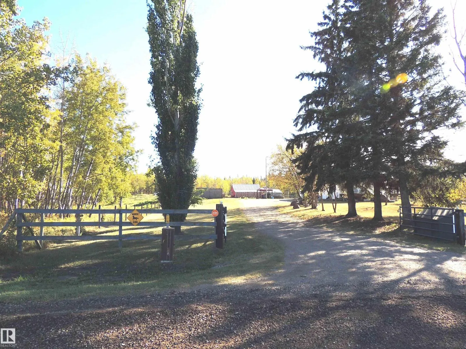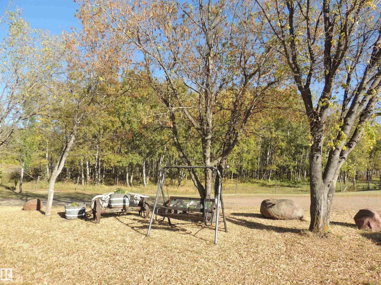 Get your horses ready for their new home on 10.2 acres in Austin Acres. Located just 12 km north of Gibbons, this property is set up with cross fencing, outdoor riding arena, red barn with metal roof/siding, 4 stalls, tack room and loft for hay, new water hydrant and watering bowl. Enter this 1200+sq ft country home and find a freshly painted mud room. A couple steps up is the kitchen with white cabinets, stainless appliances, corian counters and a cozy eating area. A french door leads into the living room, accented with original hardwood floors and electric fireplace. Primary bedroom holds a king size suite with electric fireplace. Enjoy the updated 4 piece bath and two more bedrooms on this level. Downstairs has a newly finished 3 piece bath, 2 more bedrooms, large laundry room and a cozy family entertainment area. Also included - chicken coop, metal workshop with wood heater and tool shed. (id:27476)