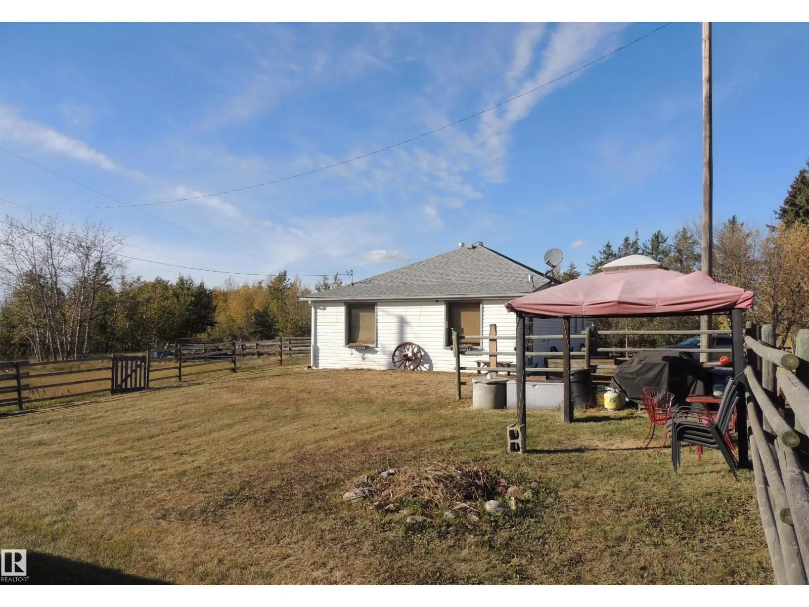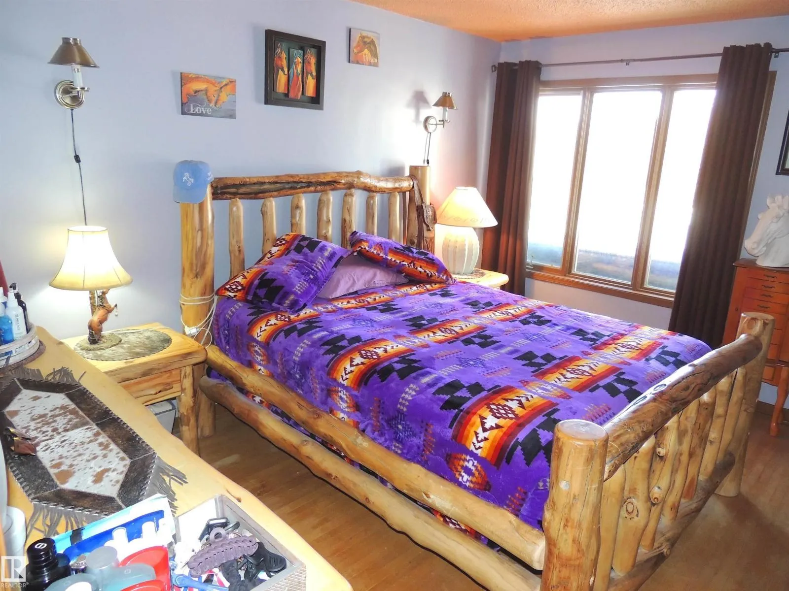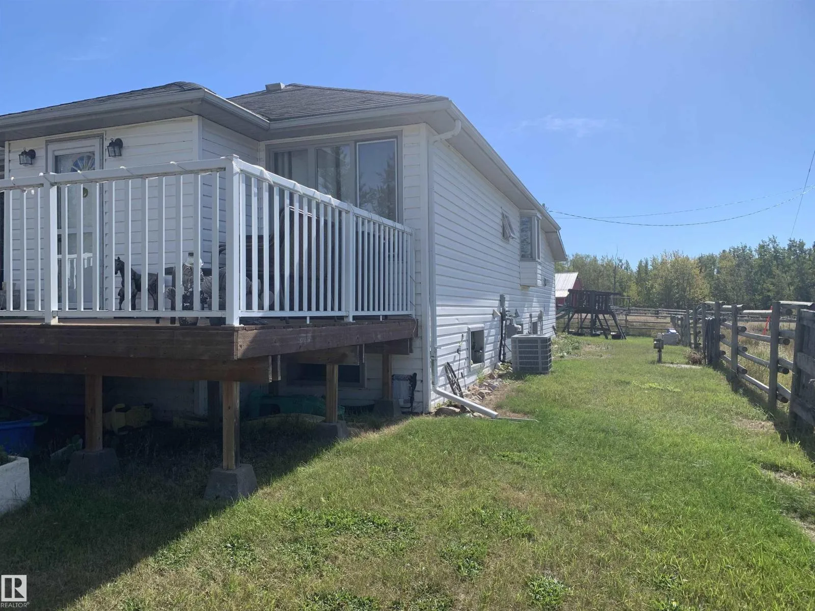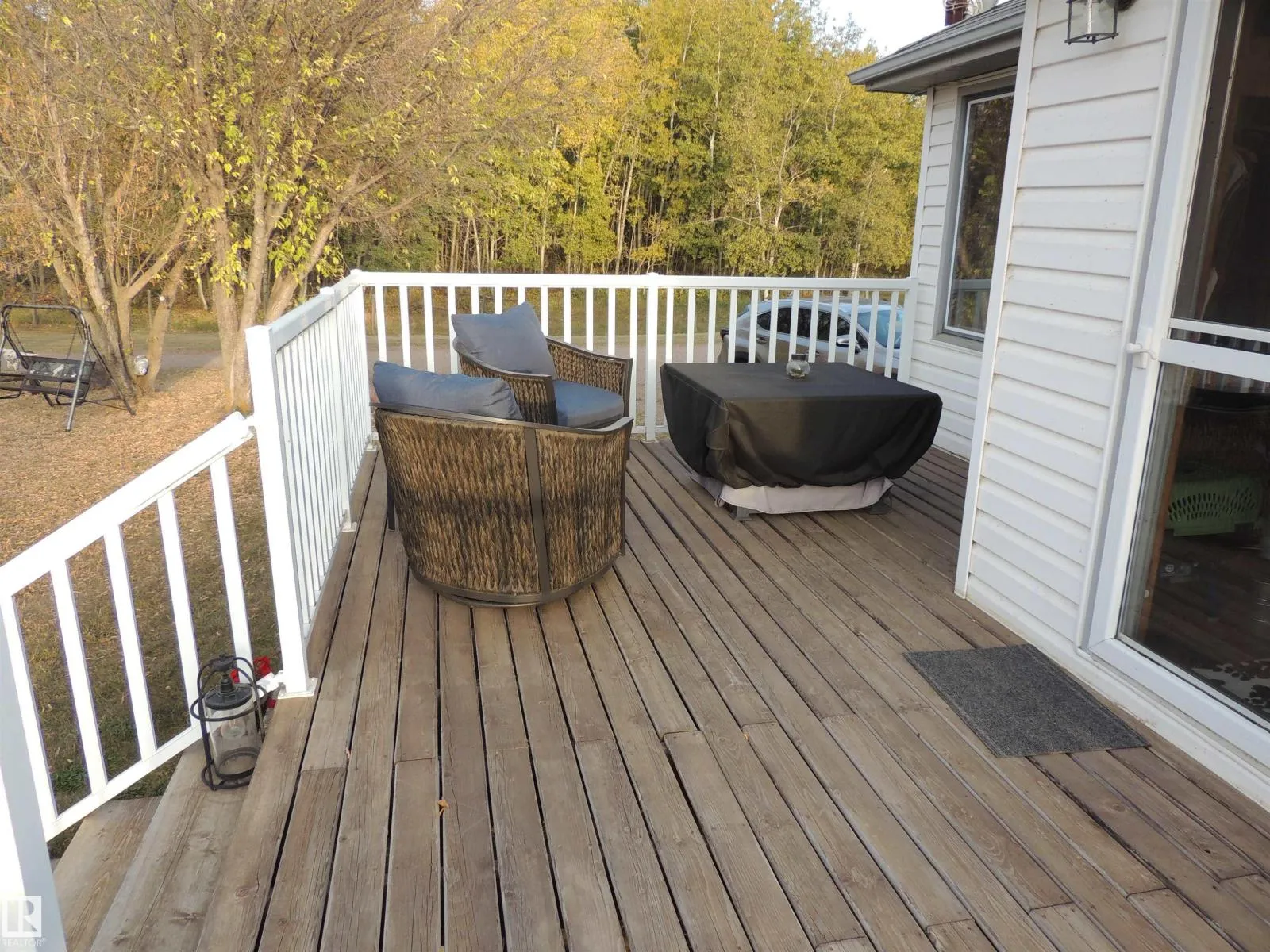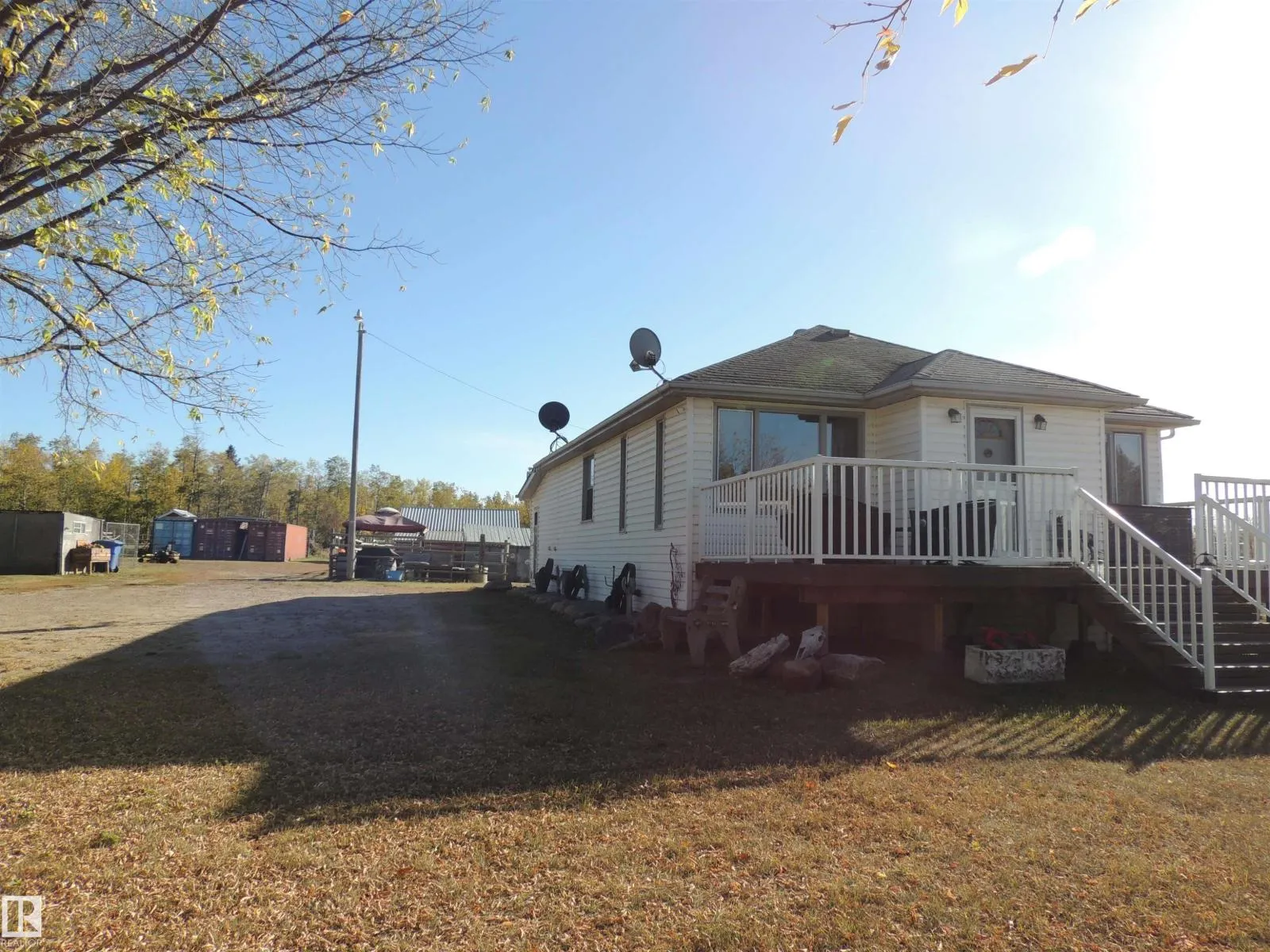 Get your horses ready for their new home on 10.2 acres in Austin Acres. Located just 12 km north of Gibbons, this property is set up with cross fencing, outdoor riding arena, red barn with metal roof/siding, 4 stalls, tack room and loft for hay, new water hydrant and watering bowl. Enter this 1200+sq ft country home and find a freshly painted mud room. A couple steps up is the kitchen with white cabinets, stainless appliances, corian counters and a cozy eating area. A french door leads into the living room, accented with original hardwood floors and electric fireplace. Primary bedroom holds a king size suite with electric fireplace. Enjoy the updated 4 piece bath and two more bedrooms on this level. Downstairs has a newly finished 3 piece bath, 2 more bedrooms, large laundry room and a cozy family entertainment area. Also included - chicken coop, metal workshop with wood heater and tool shed. (id:27476)