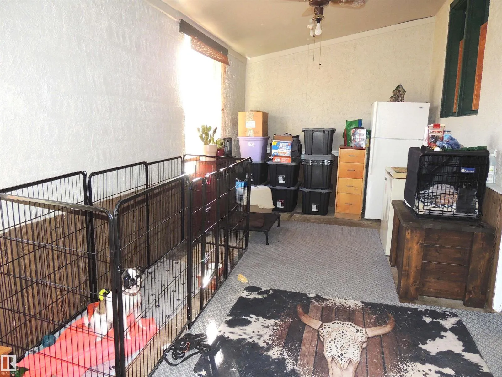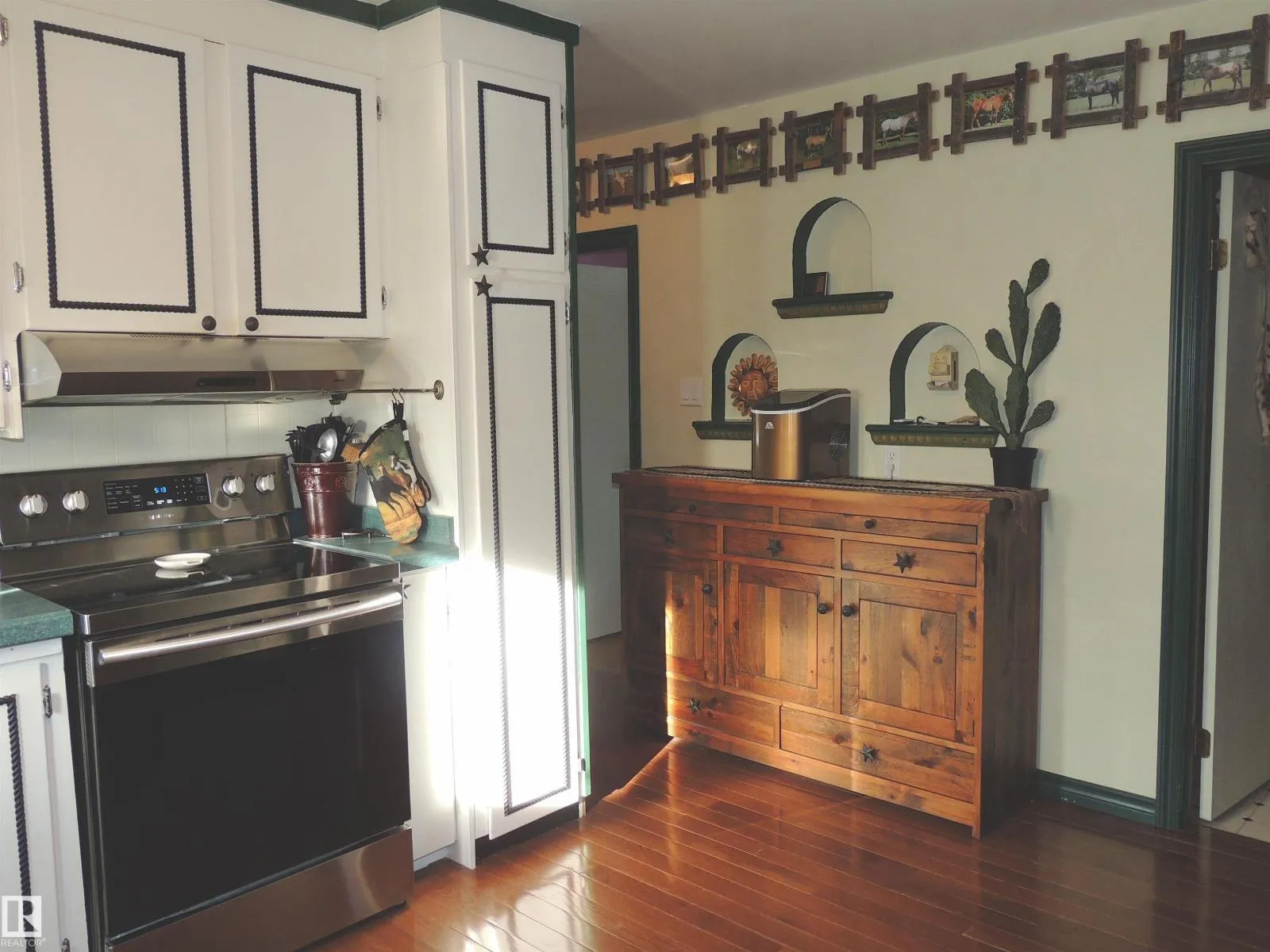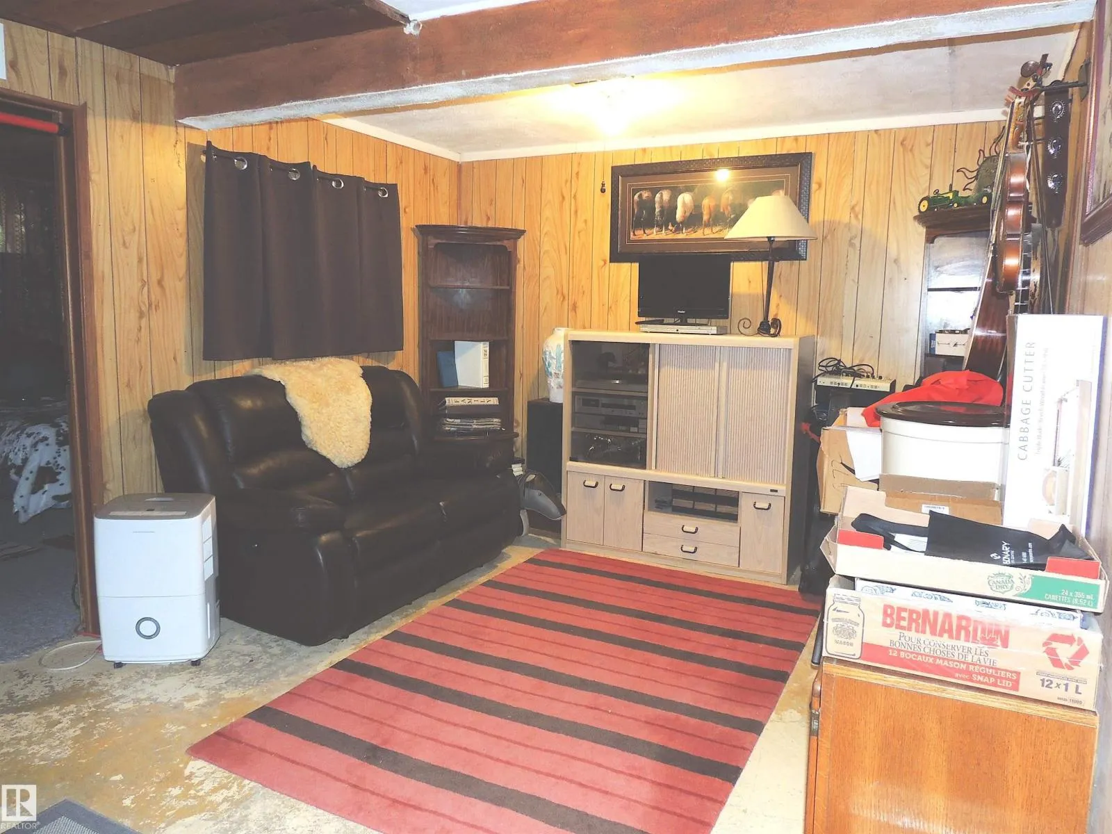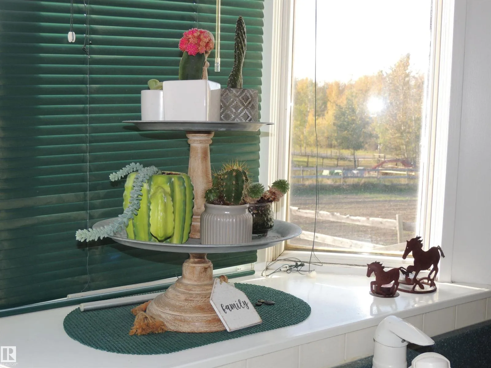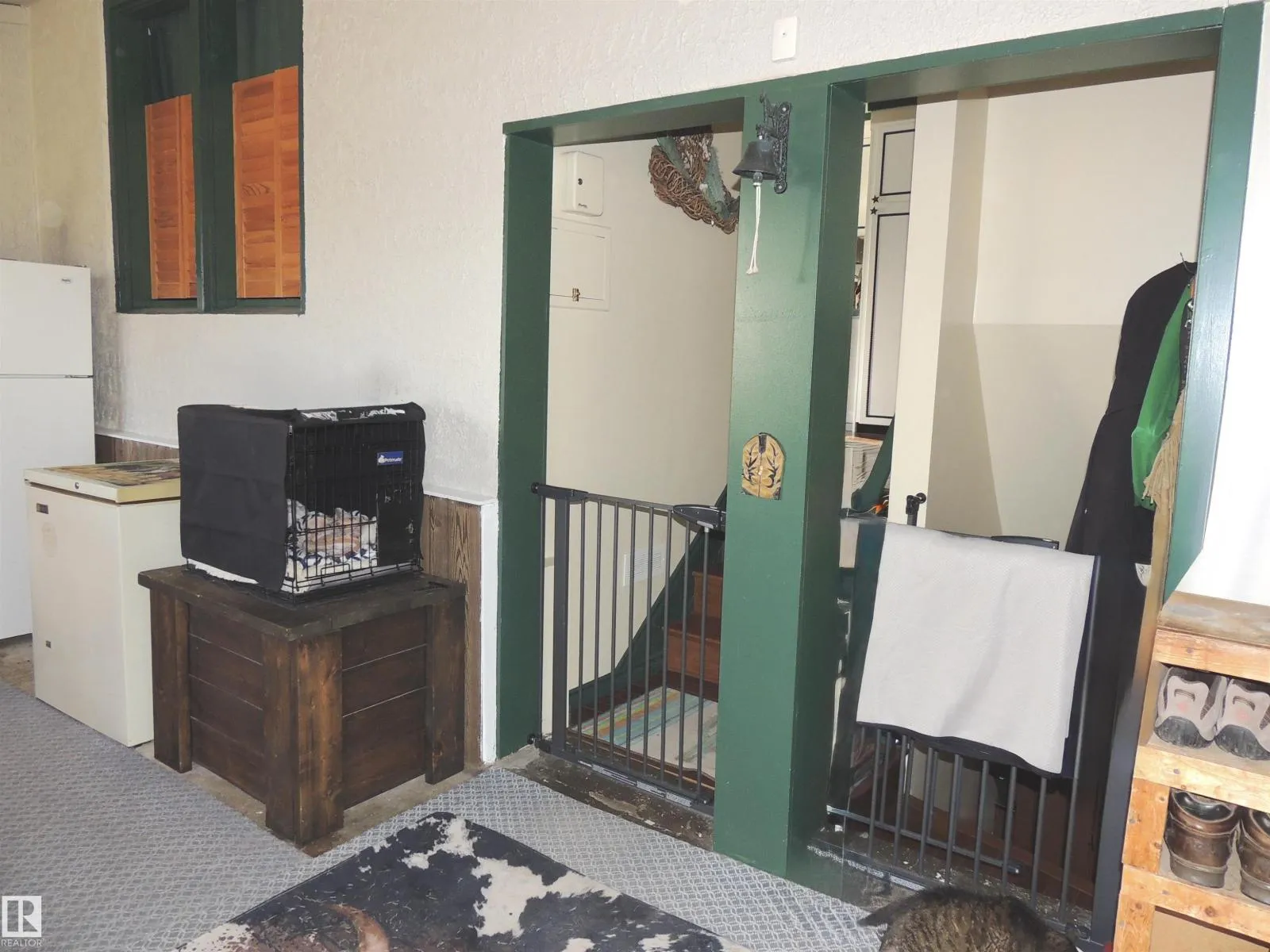 Get your horses ready for their new home on 10.2 acres in Austin Acres. Located just 12 km north of Gibbons, this property is set up with cross fencing, outdoor riding arena, red barn with metal roof/siding, 4 stalls, tack room and loft for hay, new water hydrant and watering bowl. Enter this 1200+sq ft country home and find a freshly painted mud room. A couple steps up is the kitchen with white cabinets, stainless appliances, corian counters and a cozy eating area. A french door leads into the living room, accented with original hardwood floors and electric fireplace. Primary bedroom holds a king size suite with electric fireplace. Enjoy the updated 4 piece bath and two more bedrooms on this level. Downstairs has a newly finished 3 piece bath, 2 more bedrooms, large laundry room and a cozy family entertainment area. Also included - chicken coop, metal workshop with wood heater and tool shed. (id:27476)