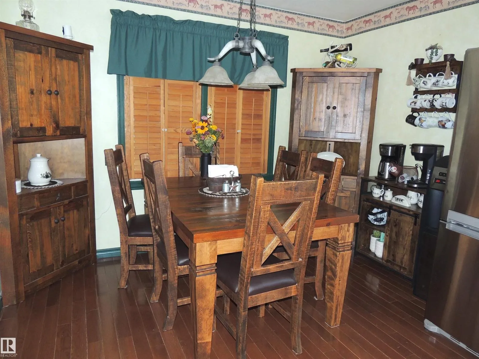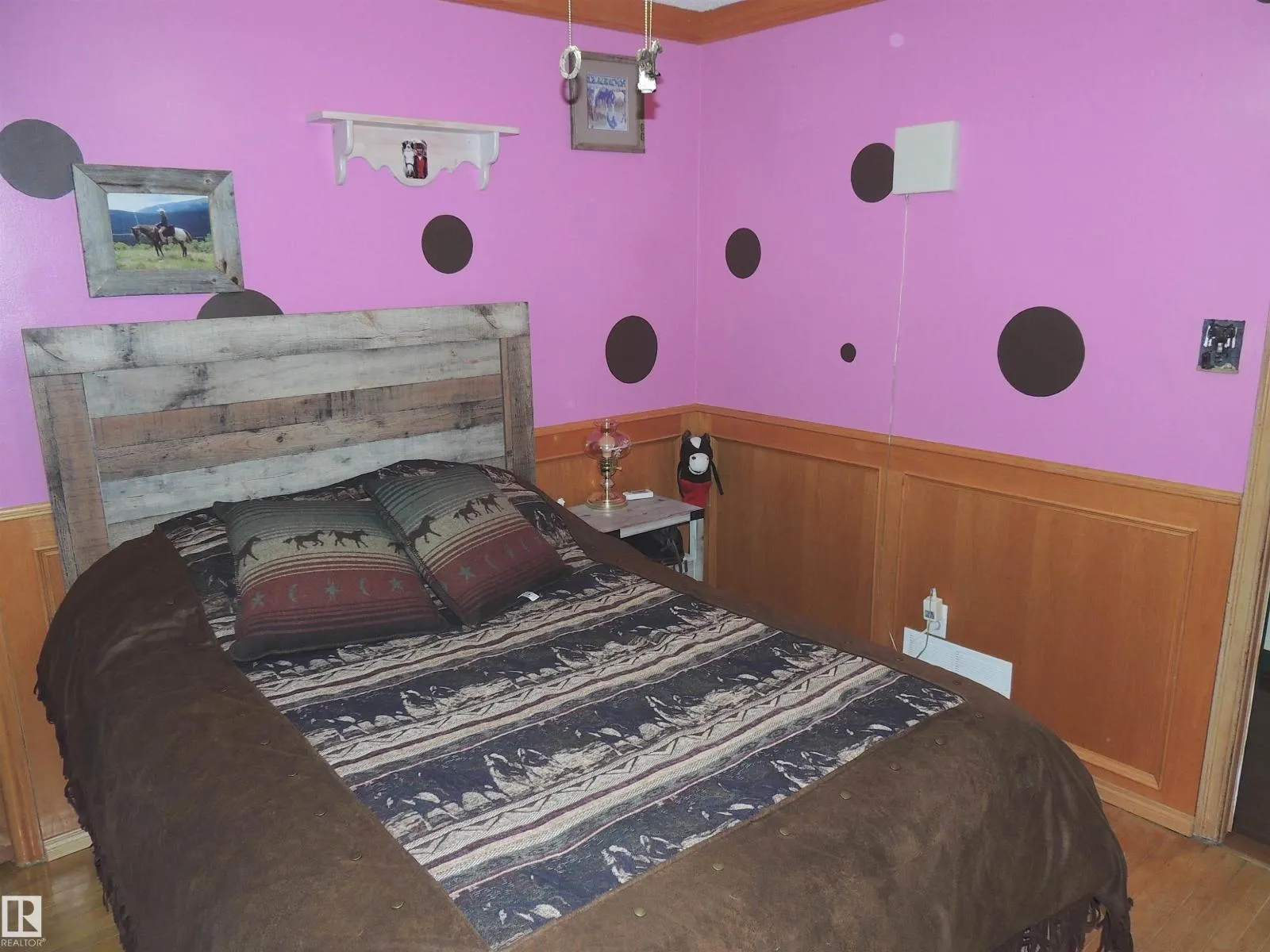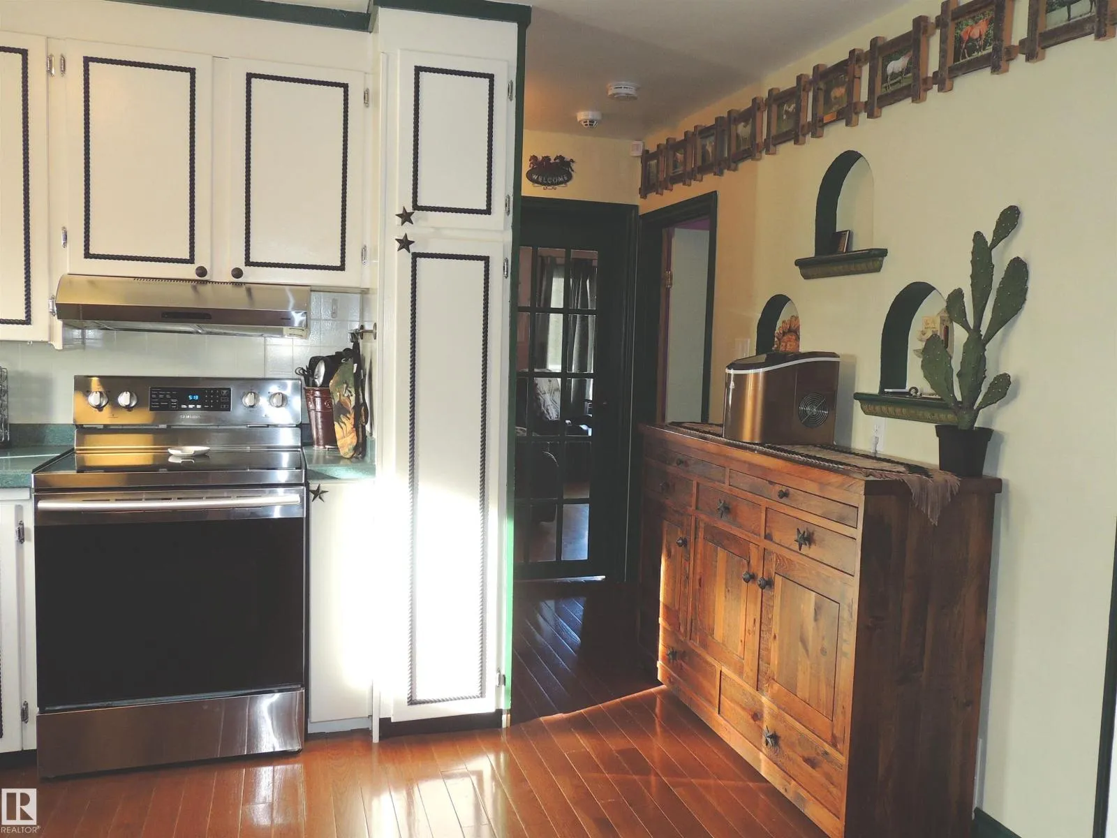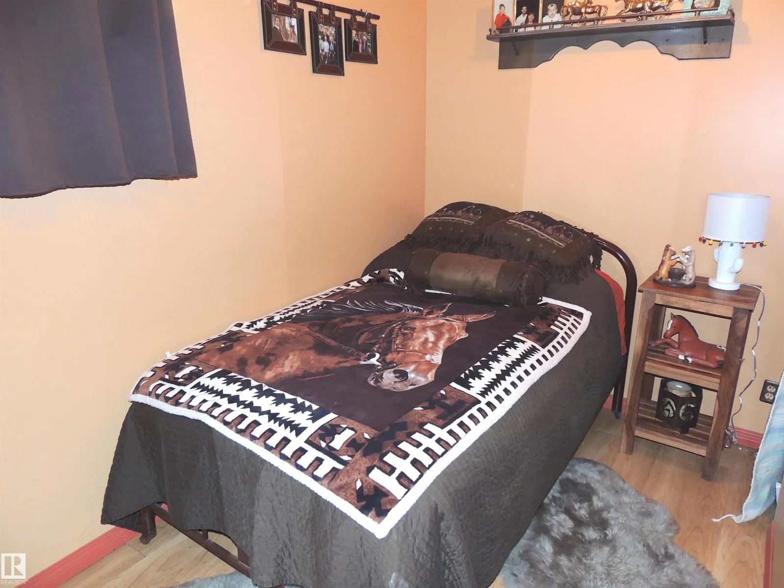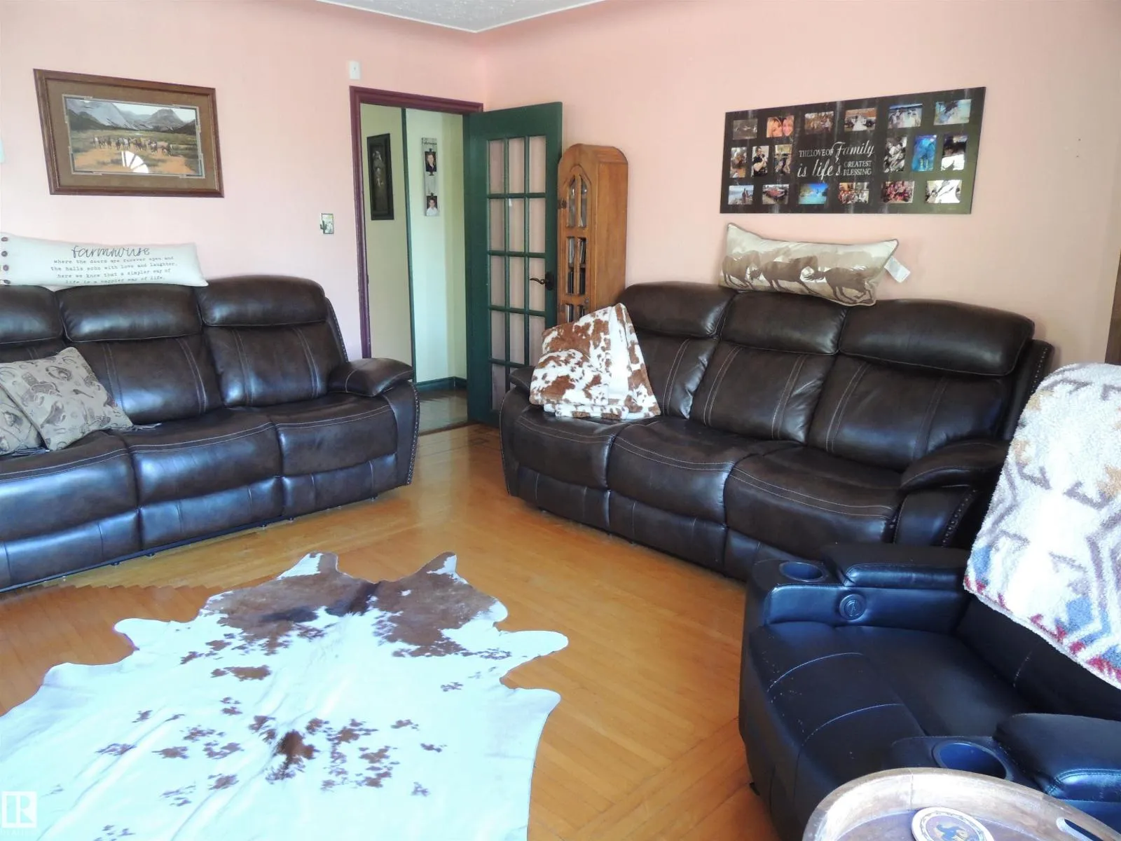 Get your horses ready for their new home on 10.2 acres in Austin Acres. Located just 12 km north of Gibbons, this property is set up with cross fencing, outdoor riding arena, red barn with metal roof/siding, 4 stalls, tack room and loft for hay, new water hydrant and watering bowl. Enter this 1200+sq ft country home and find a freshly painted mud room. A couple steps up is the kitchen with white cabinets, stainless appliances, corian counters and a cozy eating area. A french door leads into the living room, accented with original hardwood floors and electric fireplace. Primary bedroom holds a king size suite with electric fireplace. Enjoy the updated 4 piece bath and two more bedrooms on this level. Downstairs has a newly finished 3 piece bath, 2 more bedrooms, large laundry room and a cozy family entertainment area. Also included - chicken coop, metal workshop with wood heater and tool shed. (id:27476)
